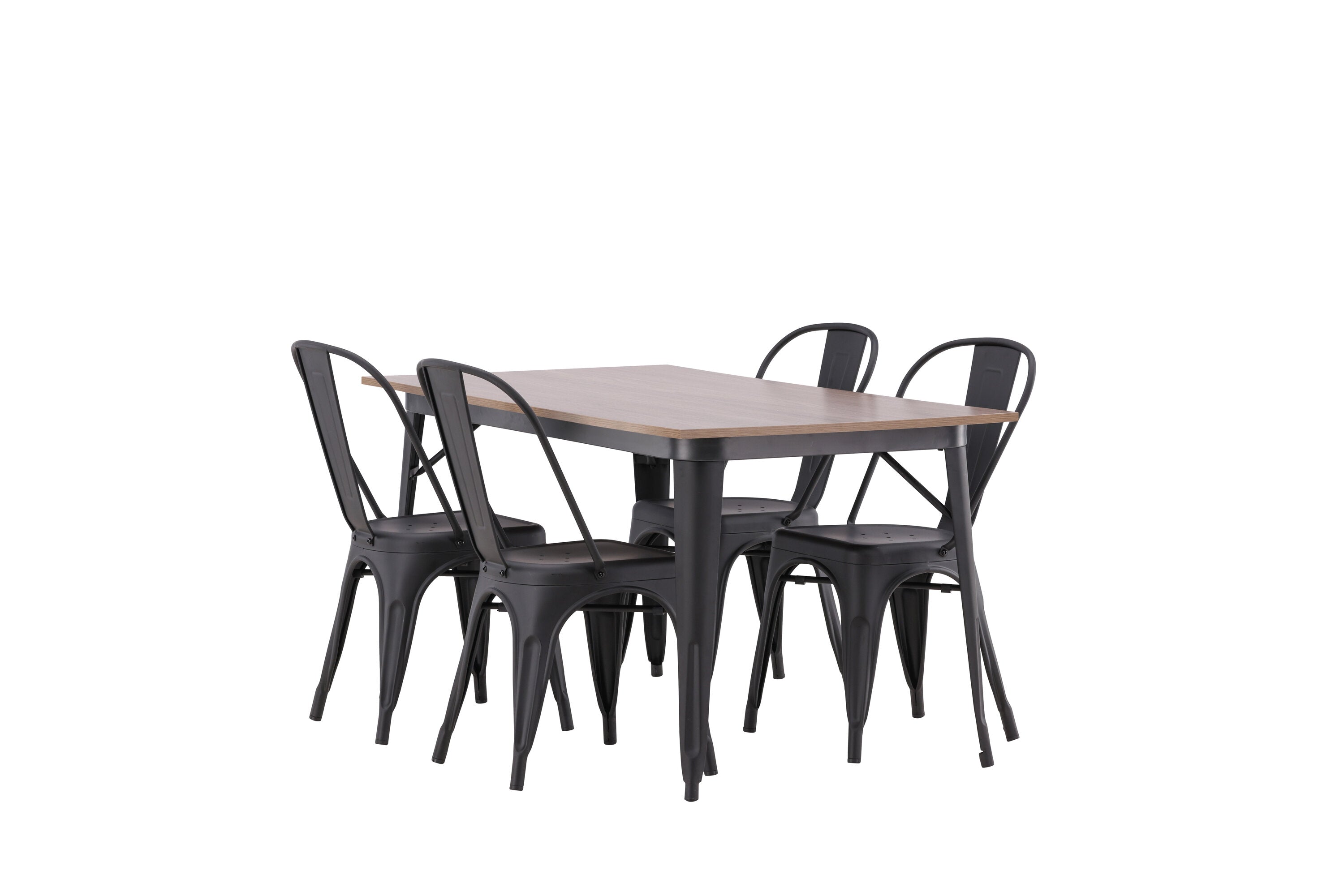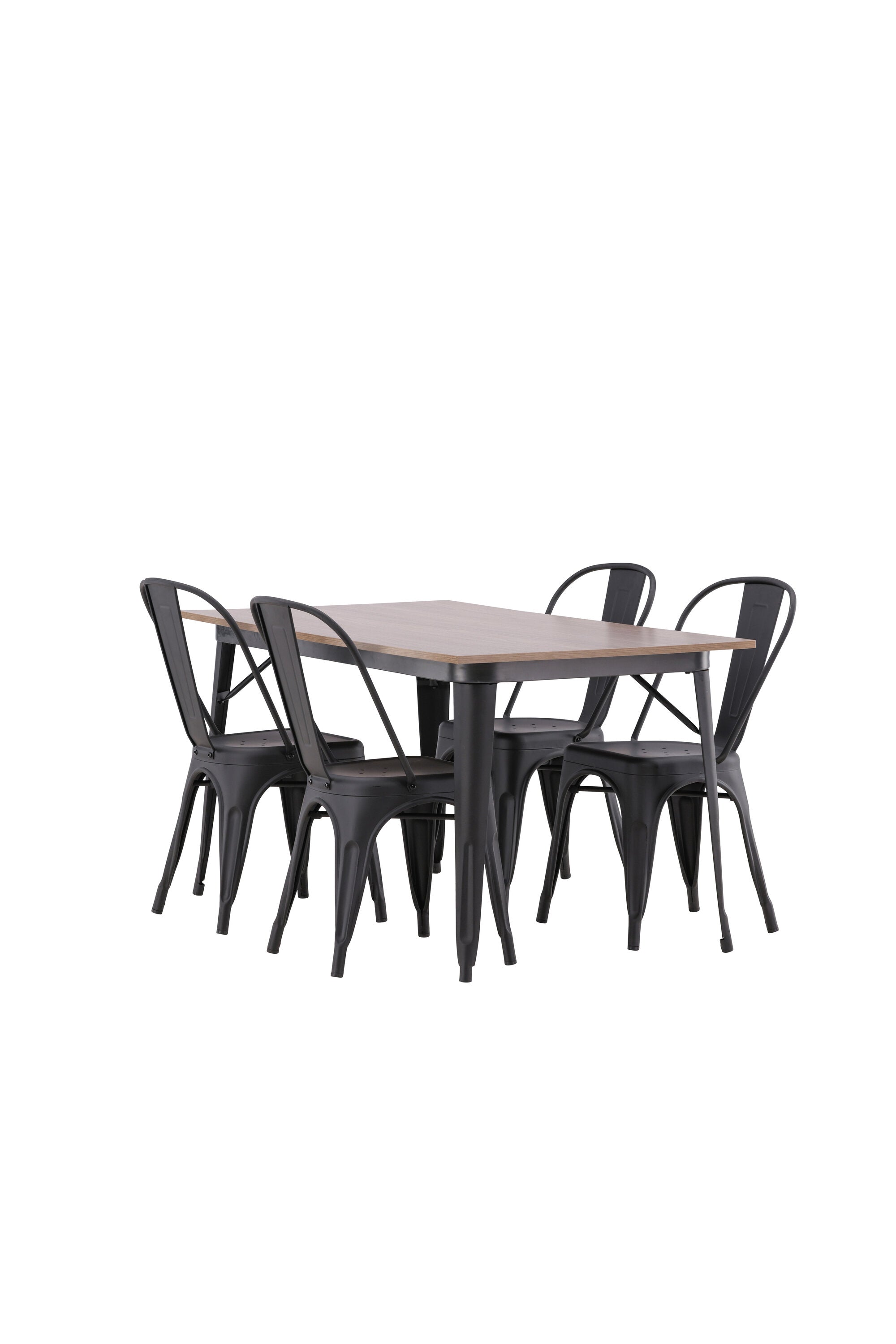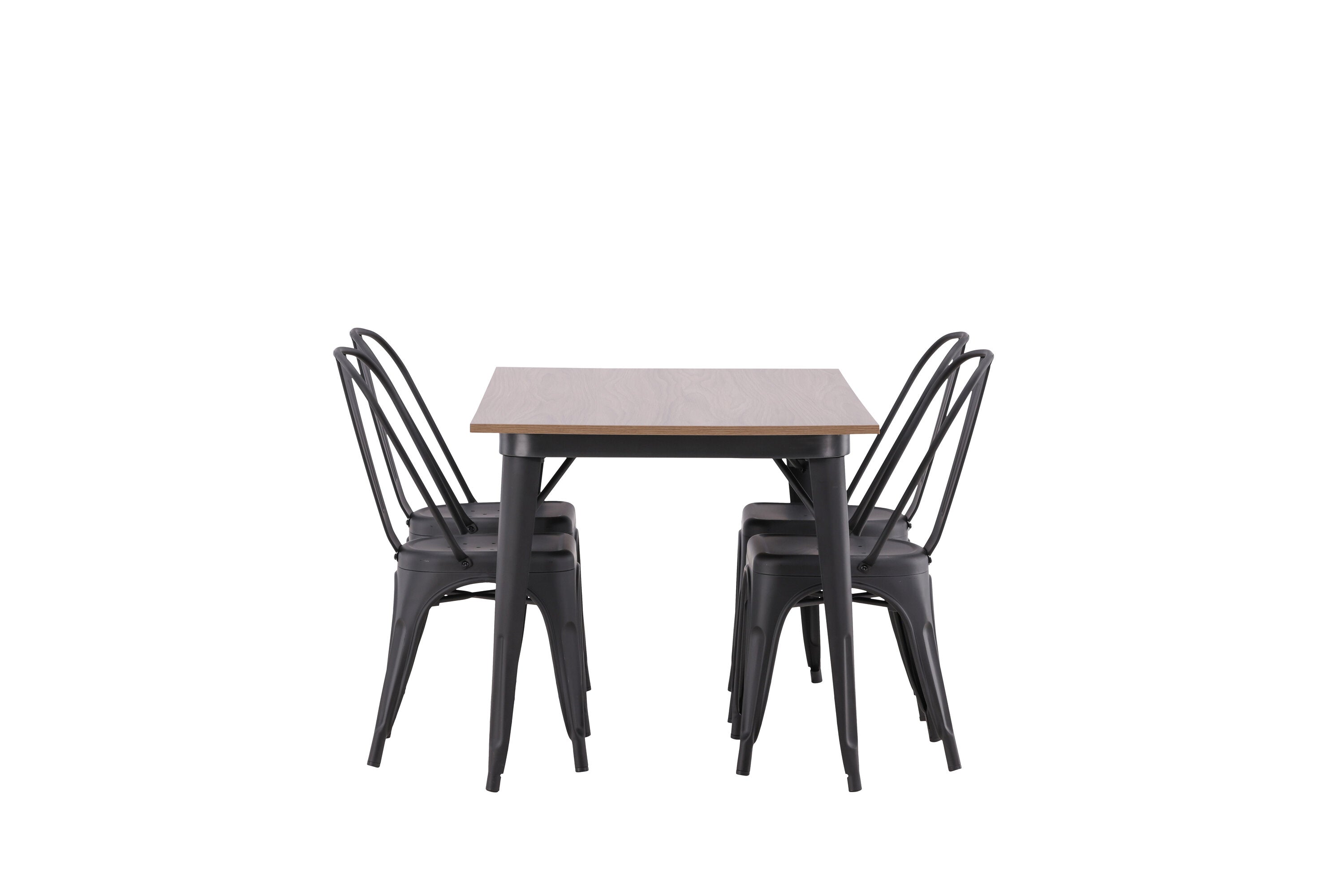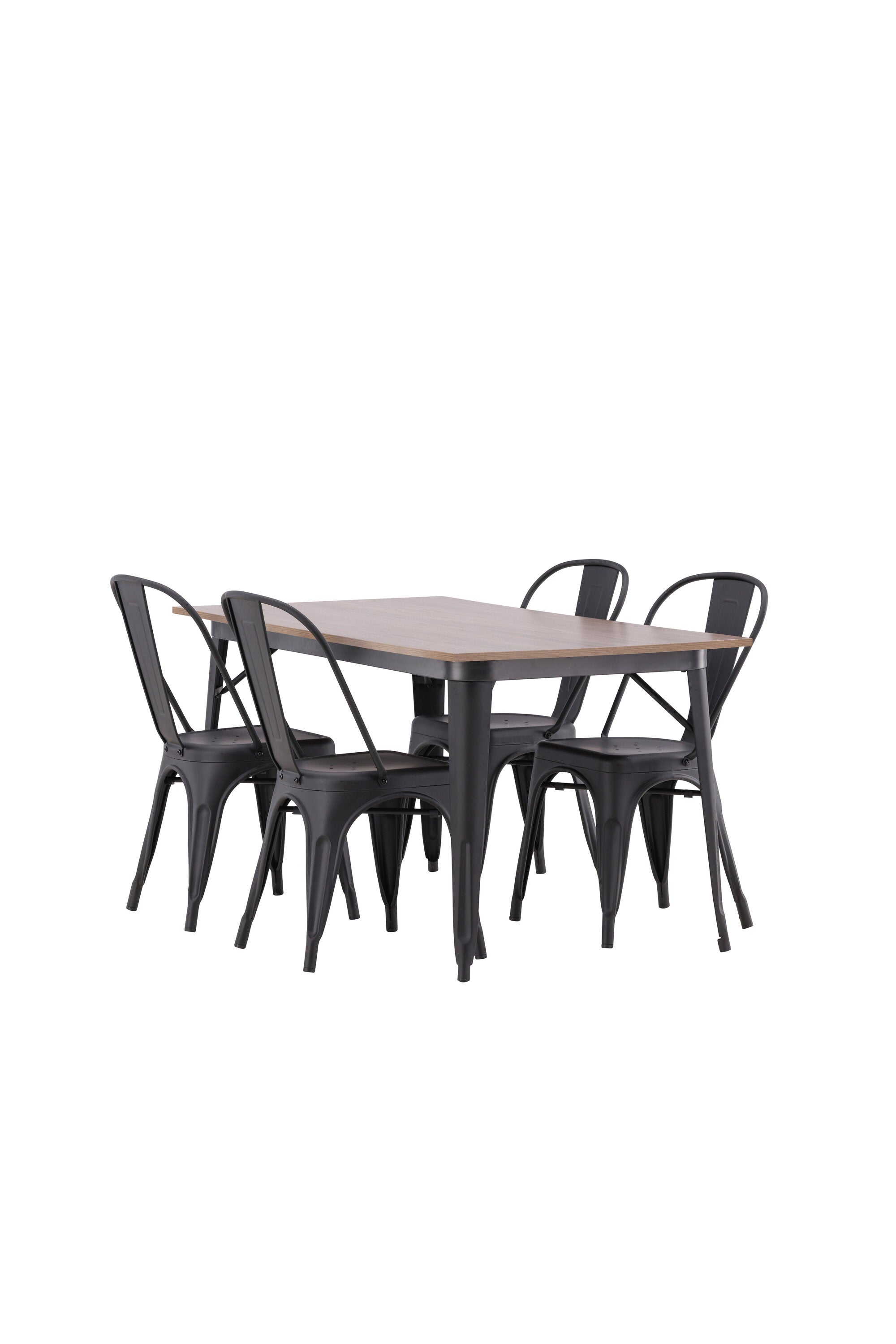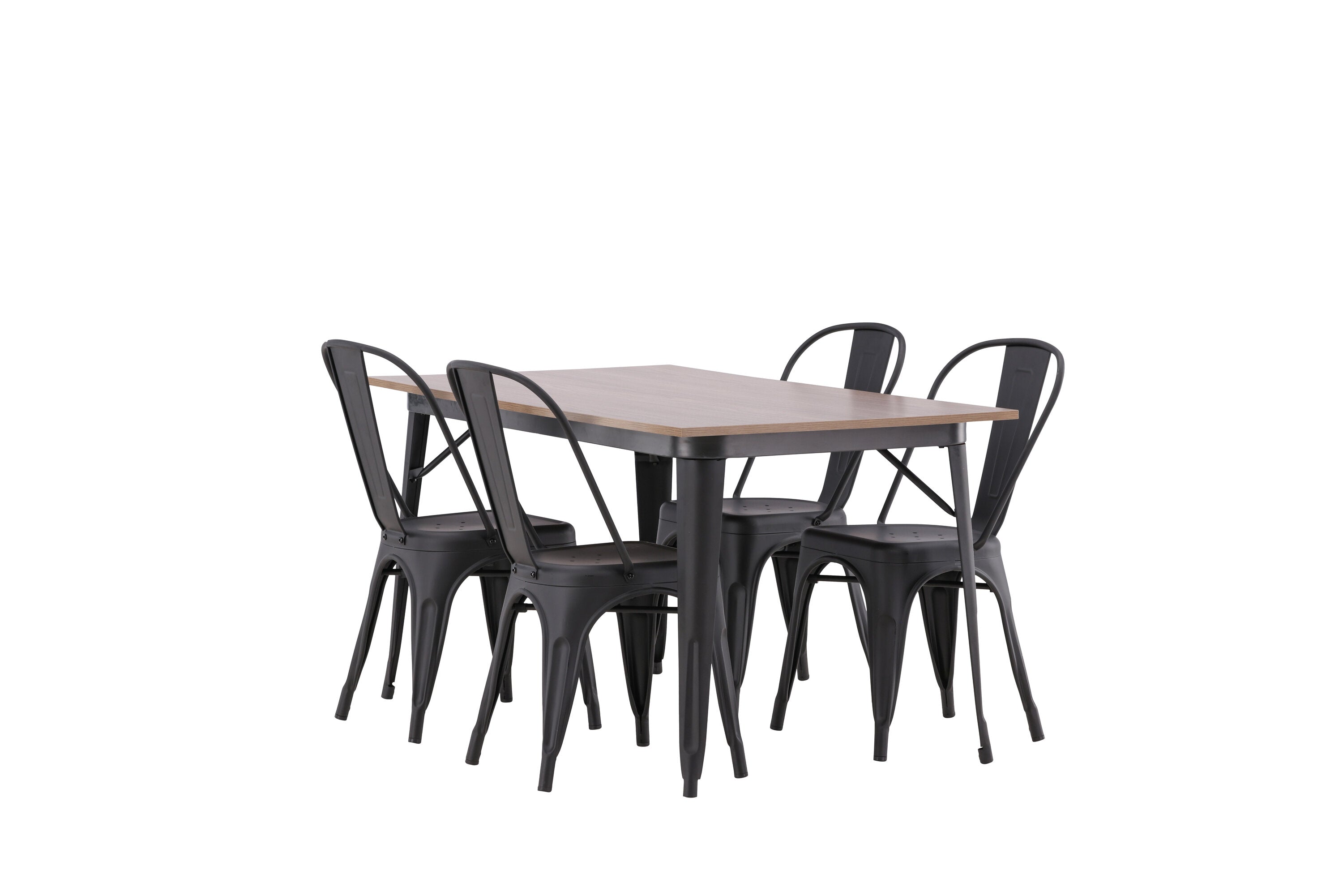 Jídelní stůl Tempe - Černá / Ořech MDF + Jídelní židle Tempe - Matná černá / Kov _4