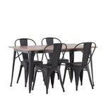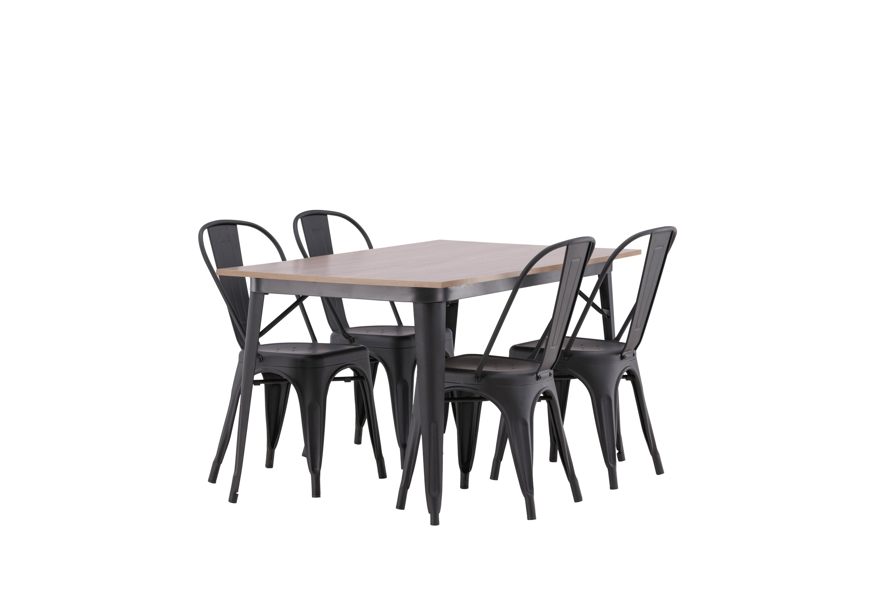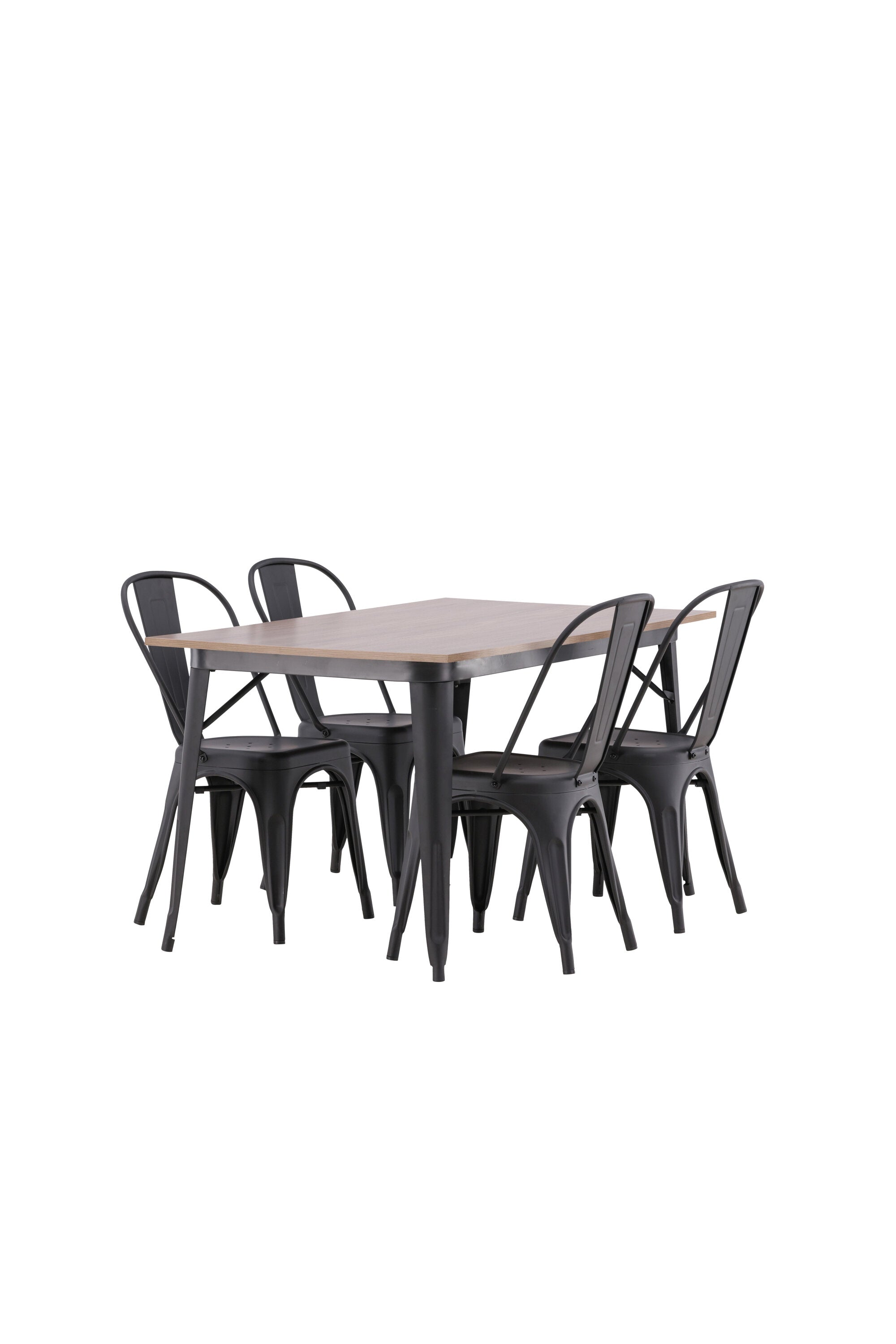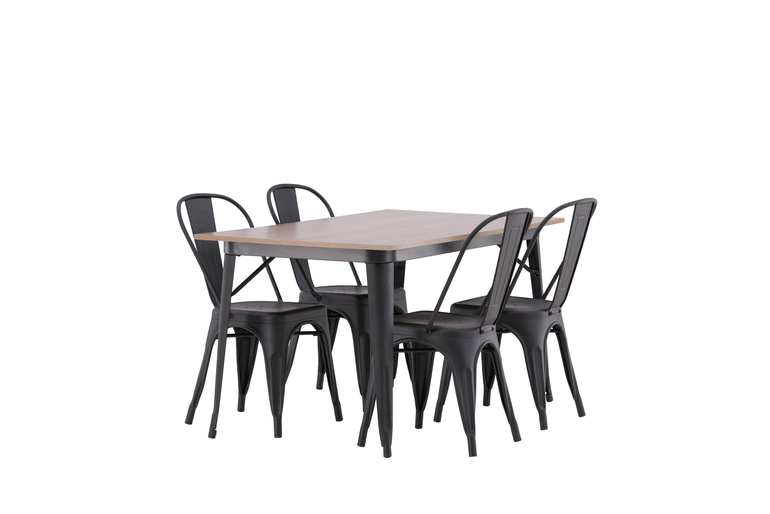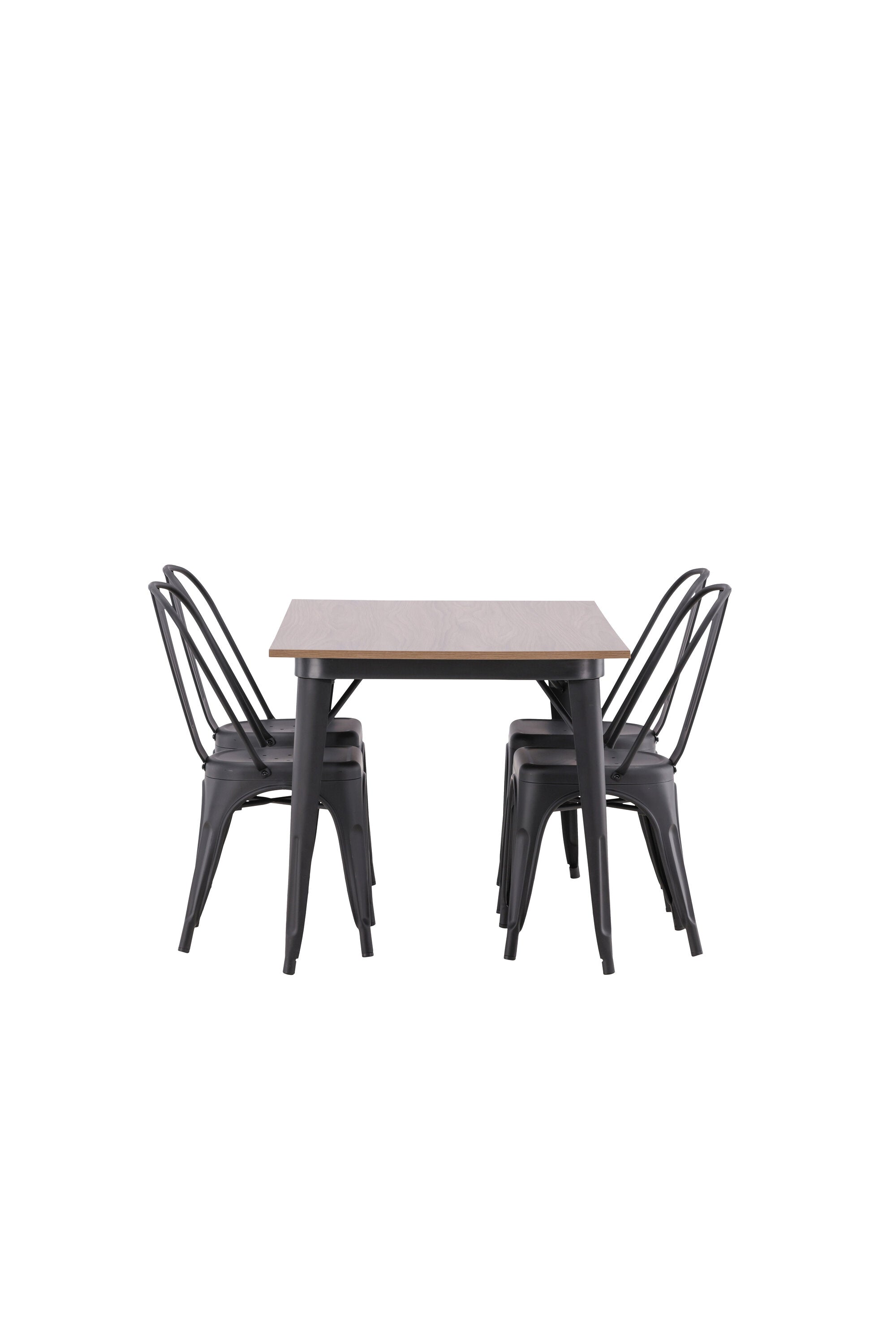 Jídelní stůl Tempe - Černá / Ořech MDF + Jídelní židle Tempe - Matná černá / Kov _4