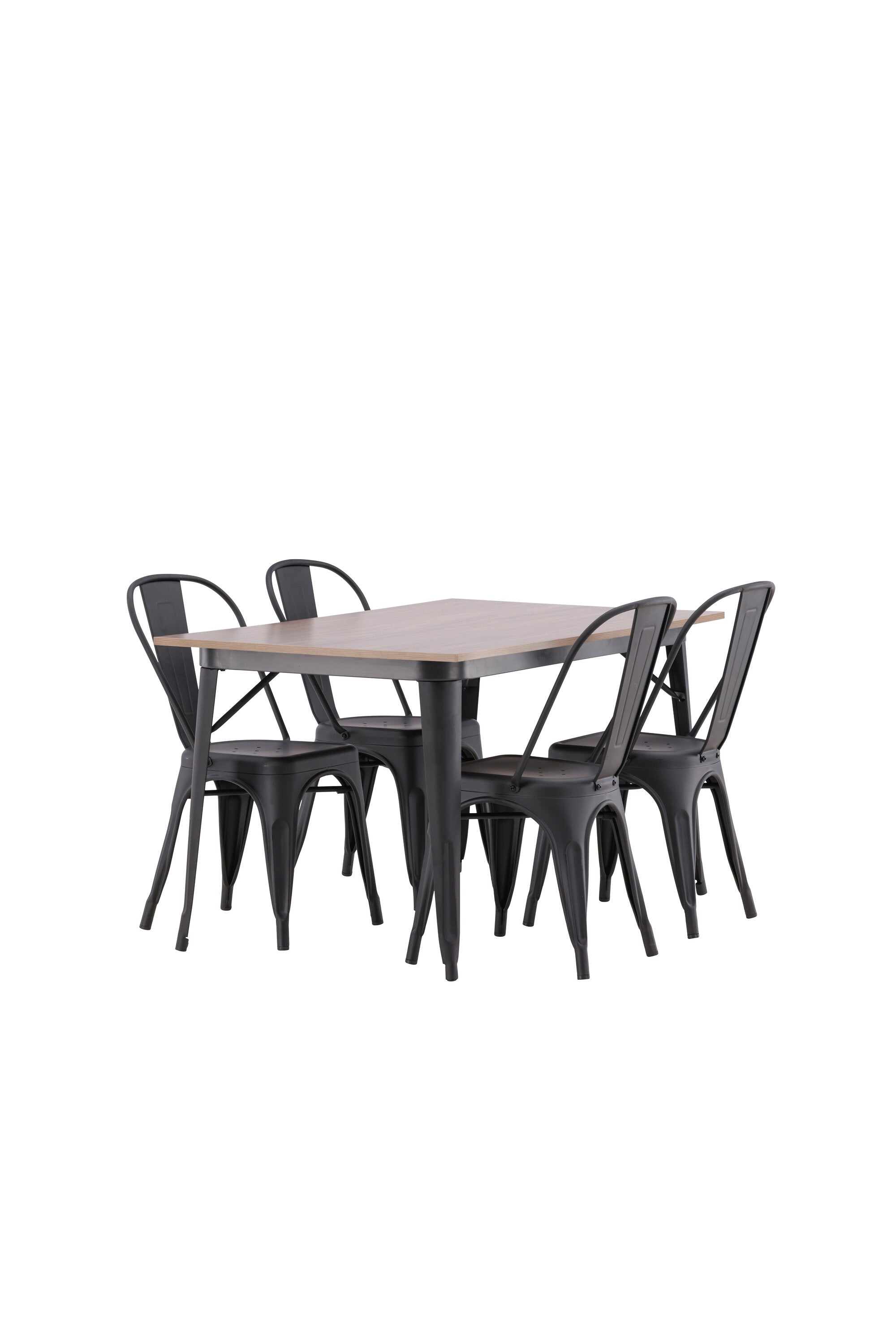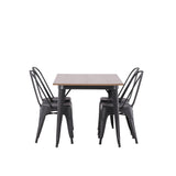 Odpovídající jídelní sestava ze série Tempe - navržená zcela podle trendů! Jídelní stůl ze série Tempe patří do kolekce Venture Home a má poutavý, skandinávský design. Vyrobeno ze čtvercové desky stolu z černé MDF a nohou stolu z černého kovu. Zde společně s jídelními židlemi stejné řady. Židle má mírně rozšířené nohy, které poddajnou sedák a opěradlo ve stylovém designu, vše dohromady vyrobeno z černého kovu. Zařiďte chytře a stylově!