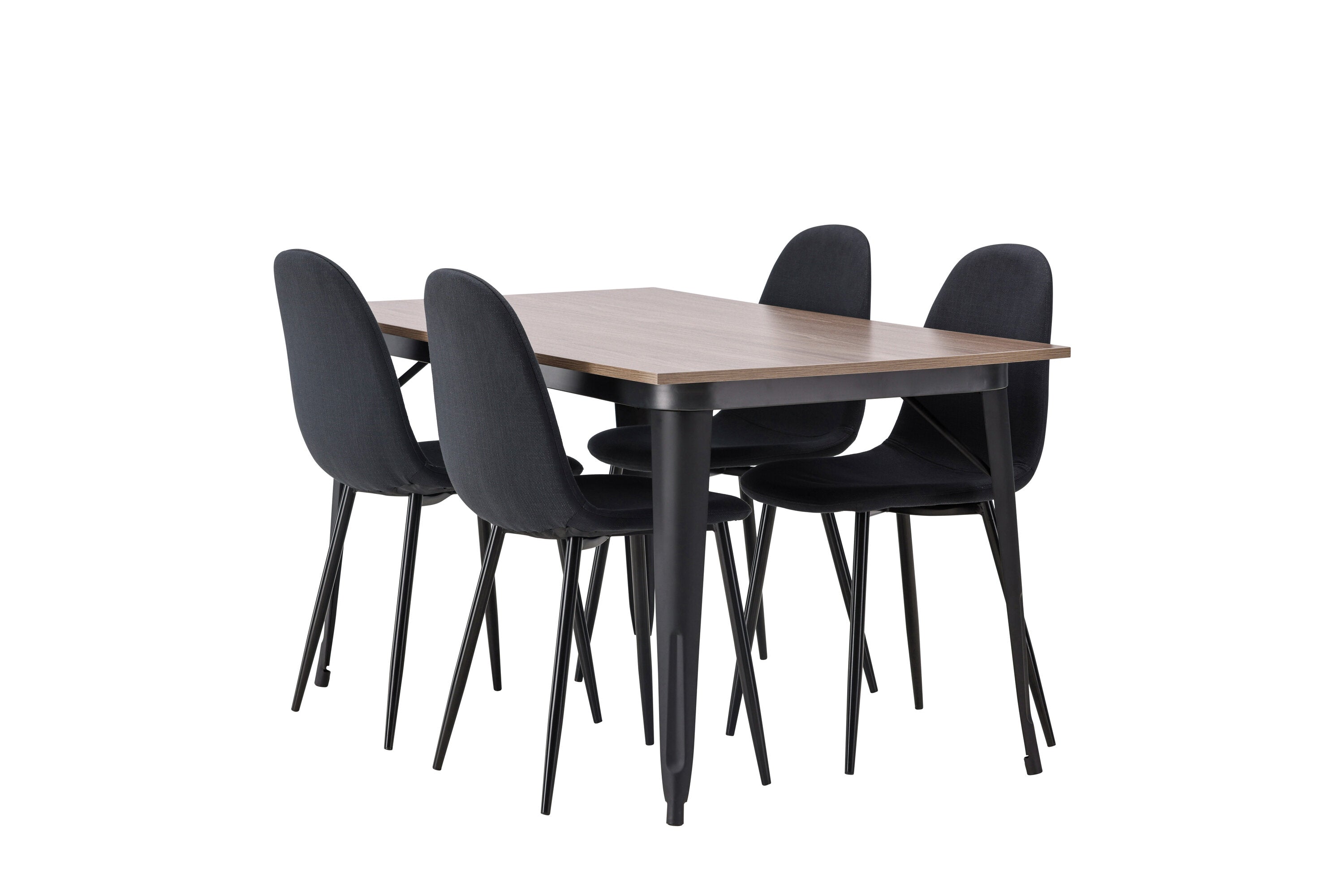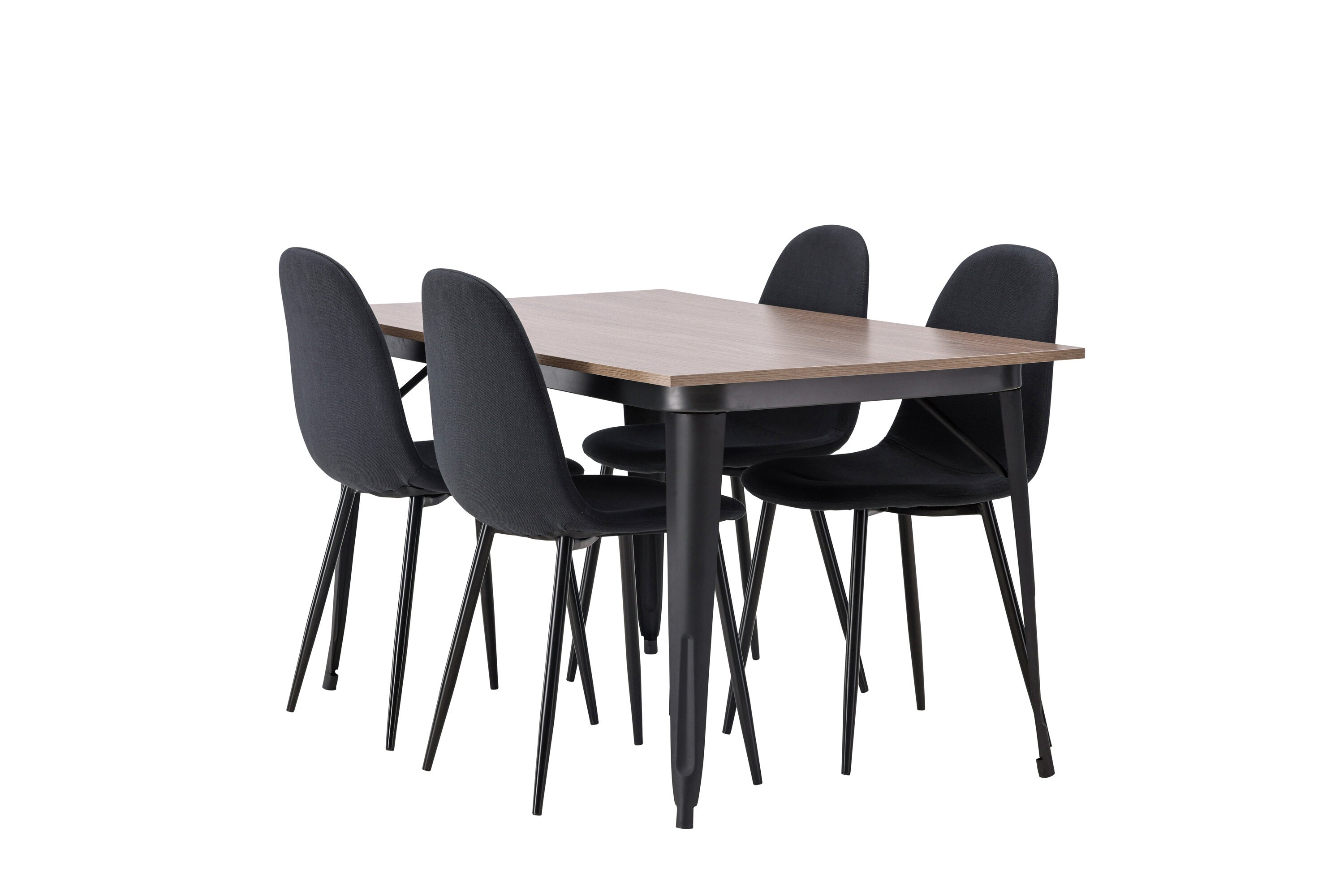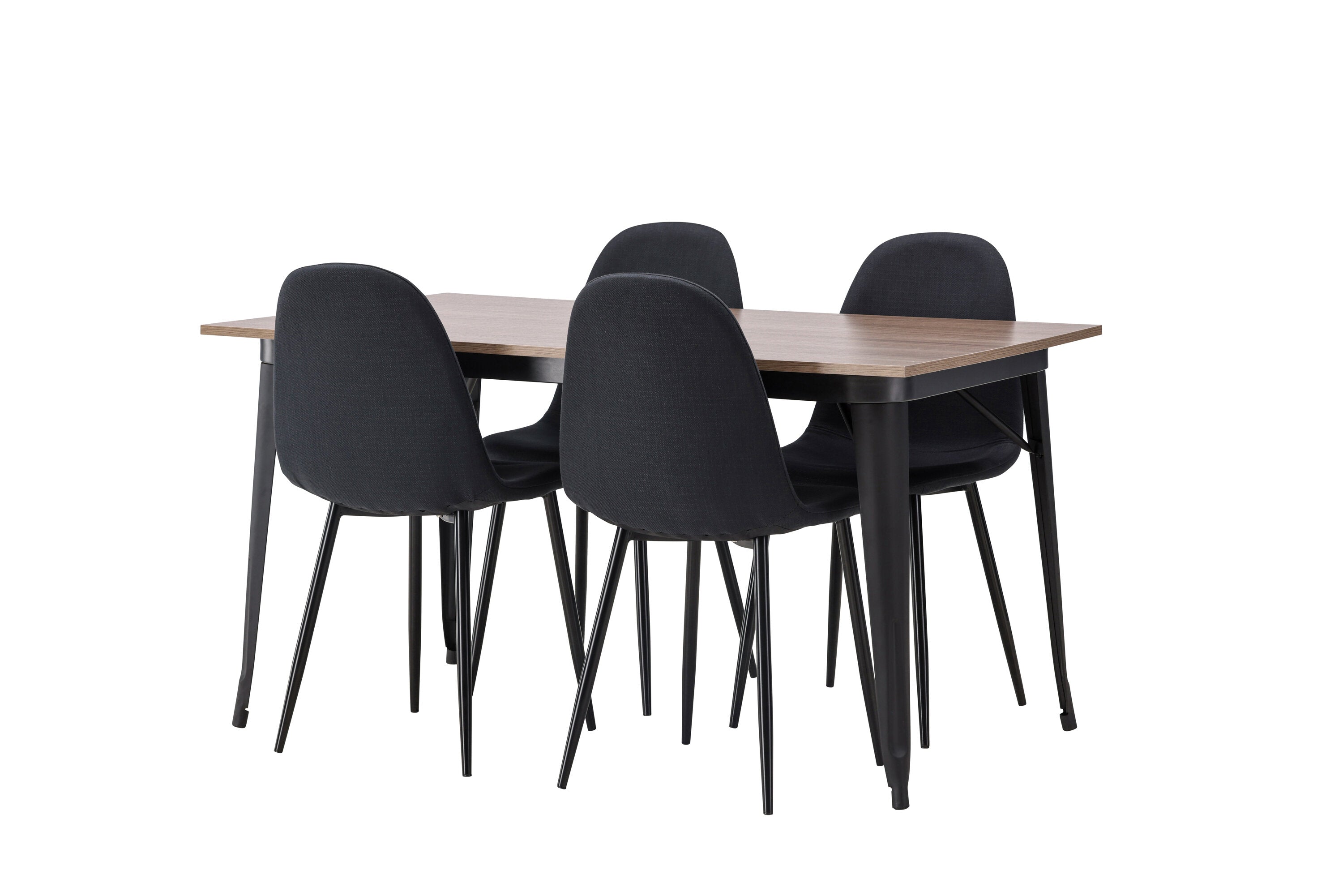 Jídelní stůl Tempe – černá / ořechová MDF + jídelní židle Polar – černé nohy – černá látka _4