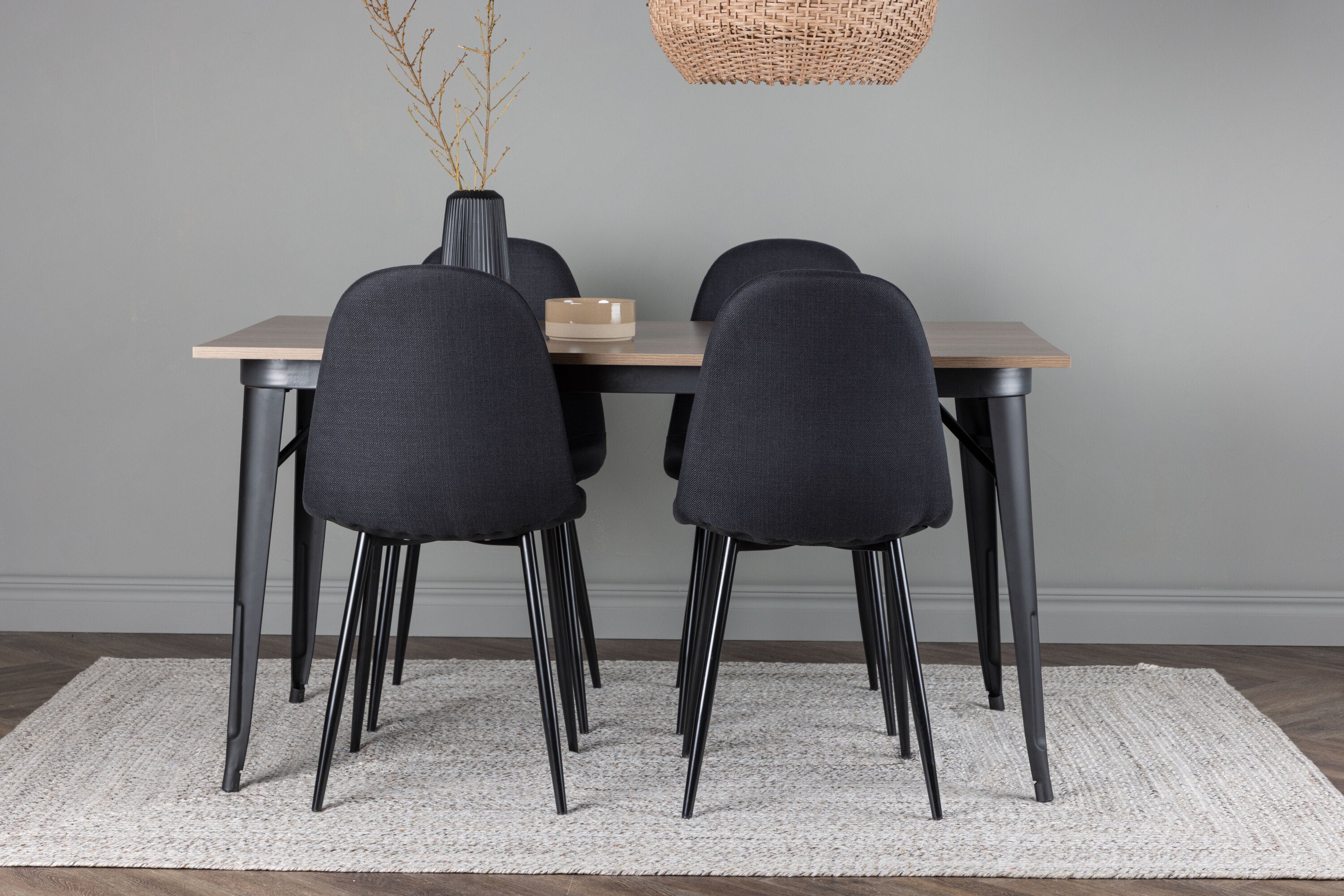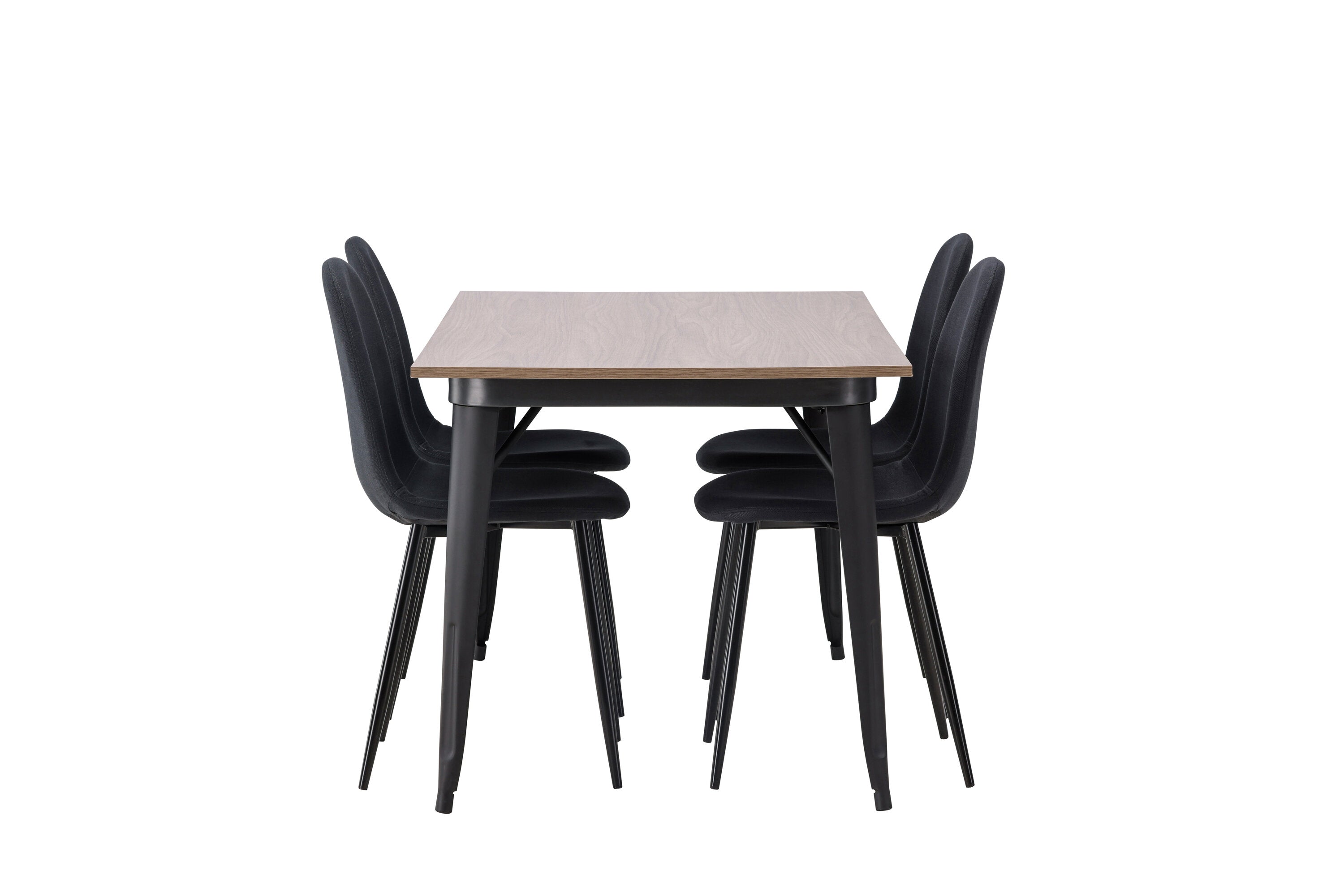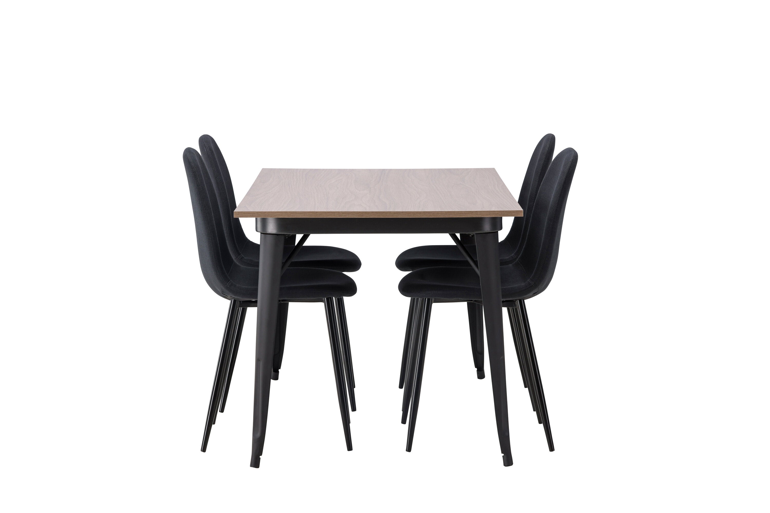 Jídelní stůl Tempe – černá / ořechová MDF + jídelní židle Polar – černé nohy – černá látka _4
