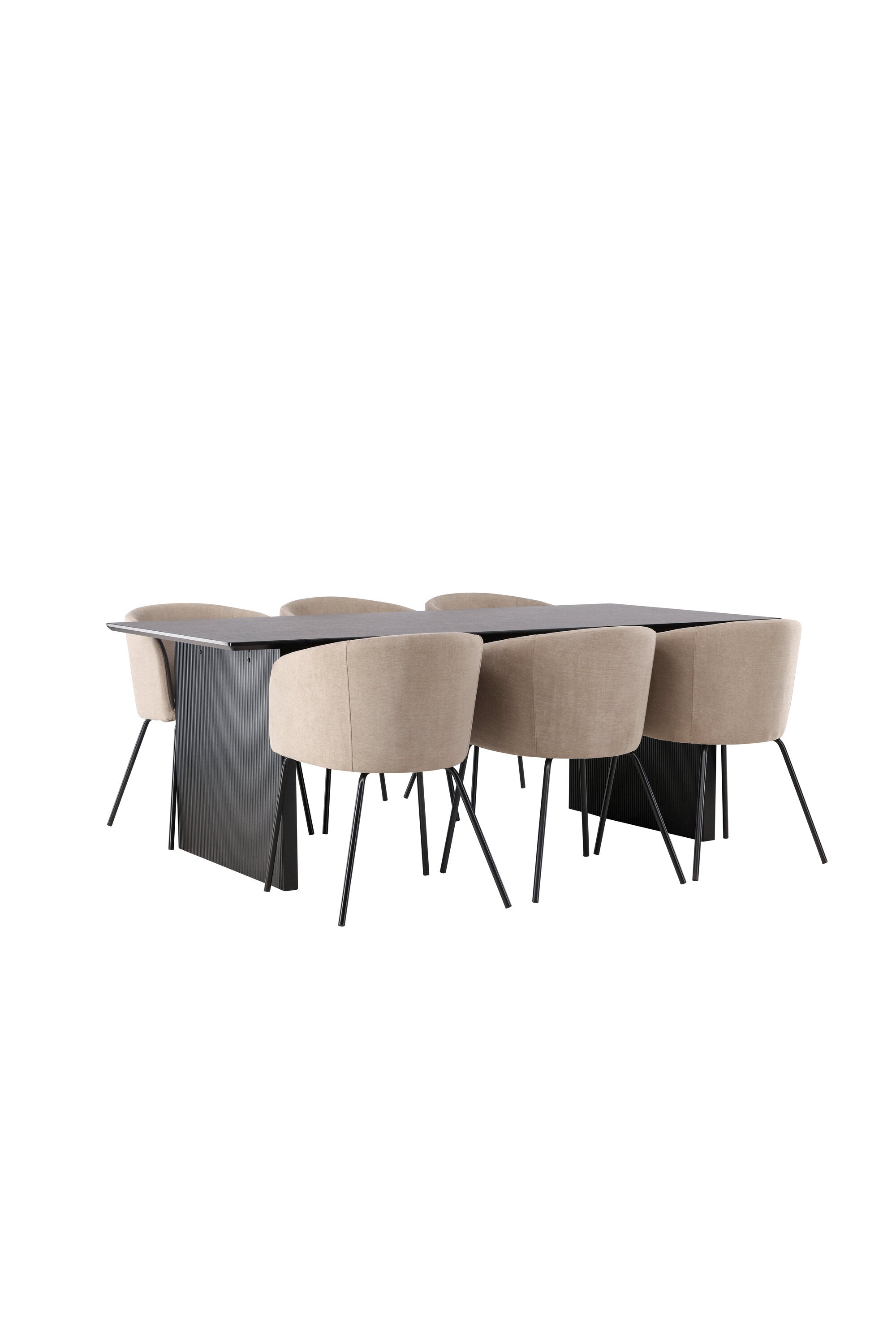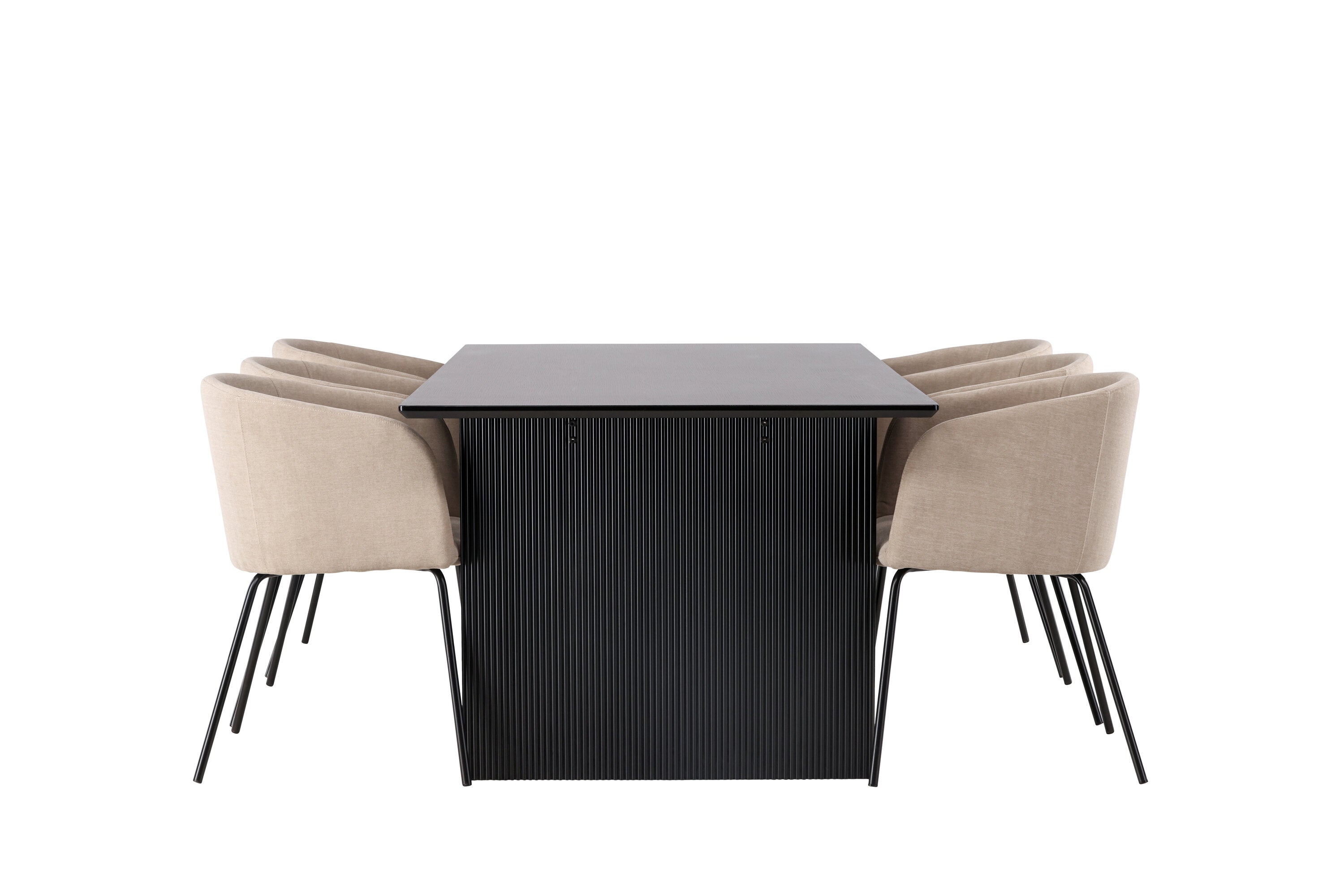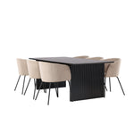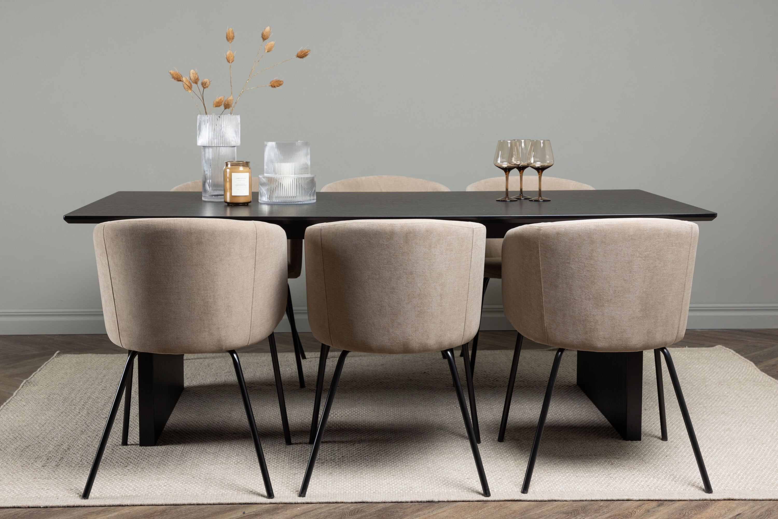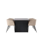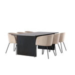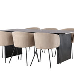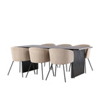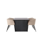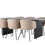 Jídelní stůl Vail – černá / kouřová černá MDF + židle Berit – černá / béžová látka (polyesterové prádlo) _6