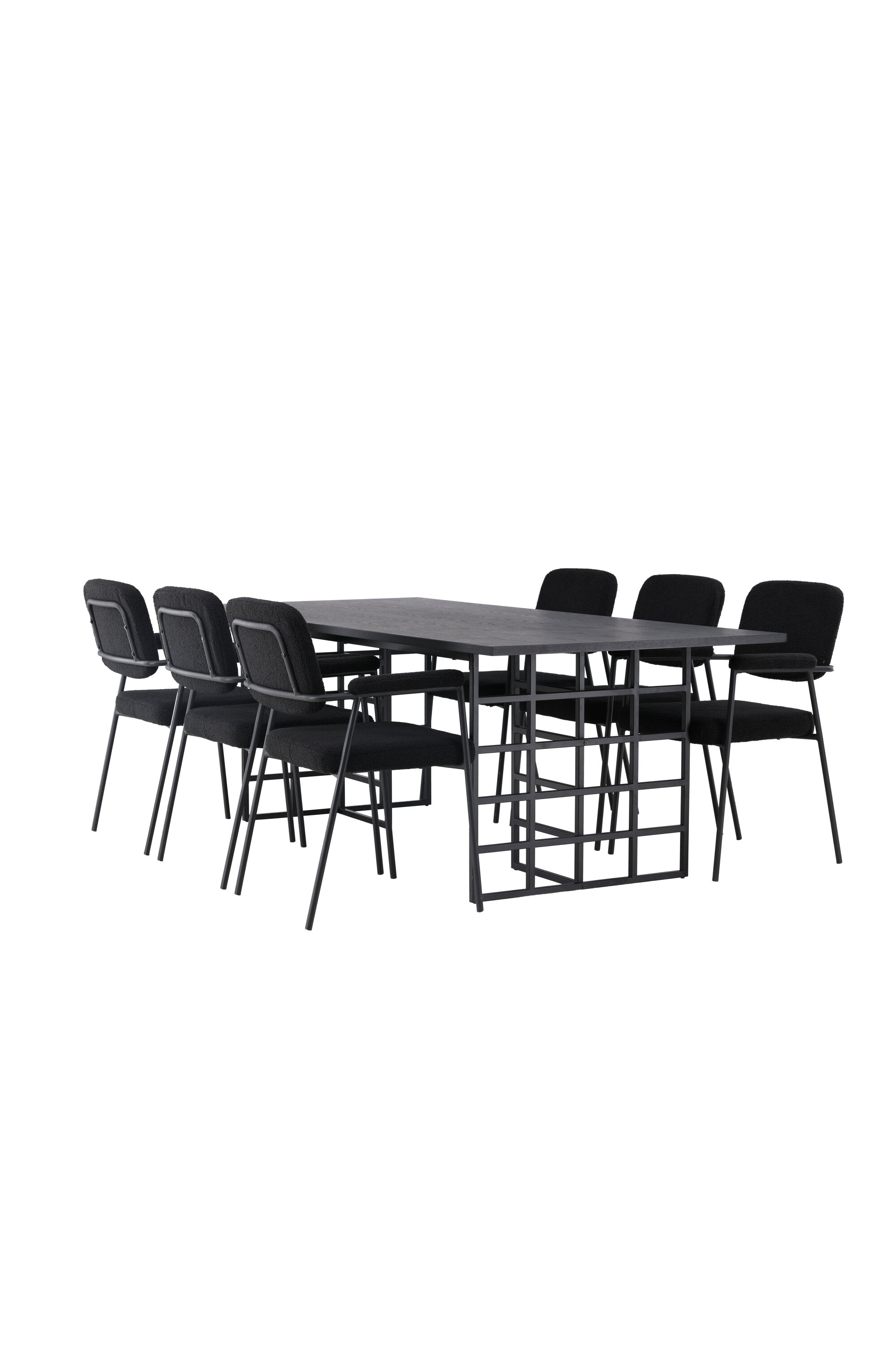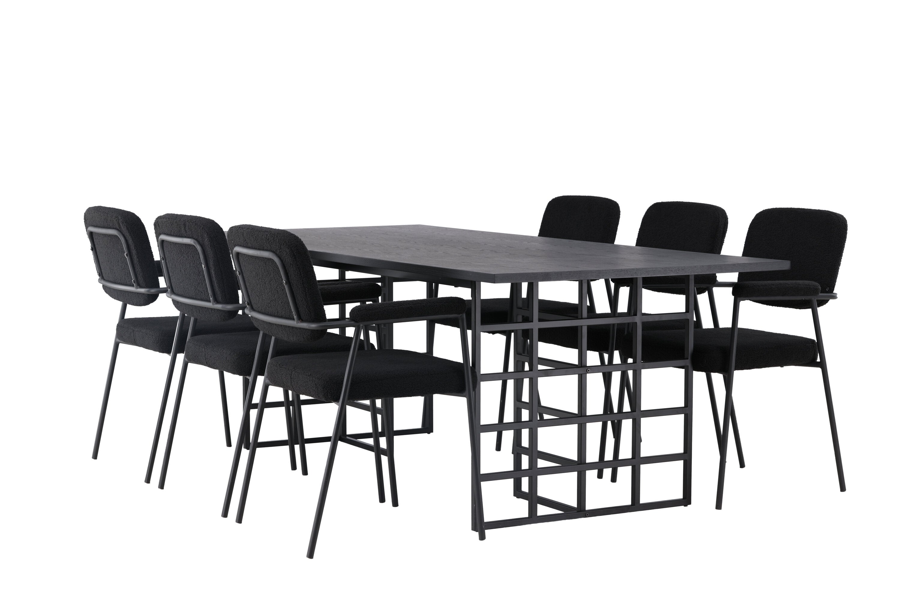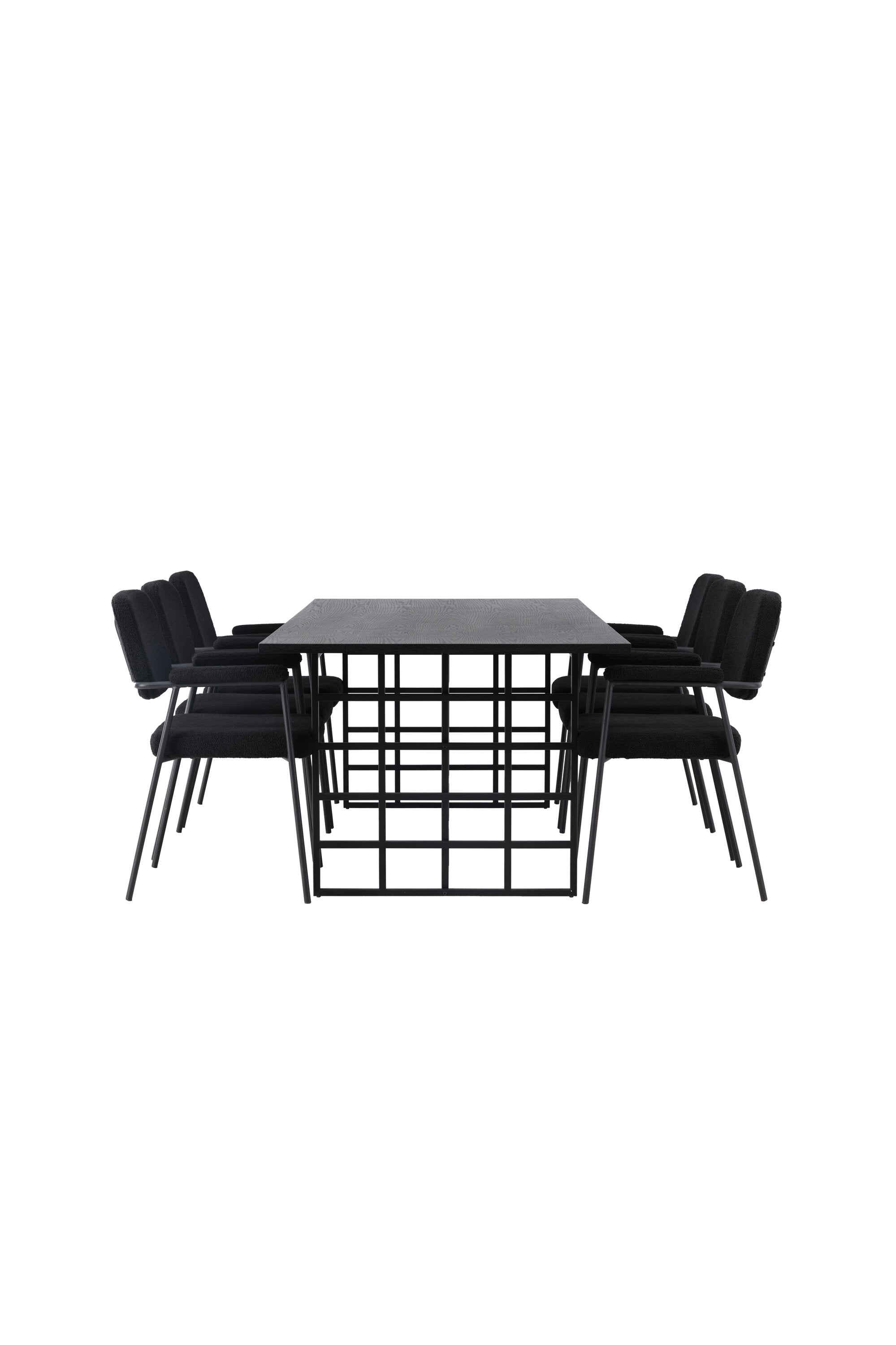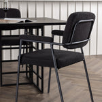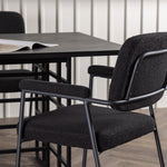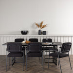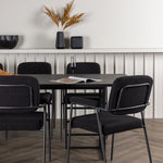 Spolu s industriálním jídelním stolem Ystad nabízíme naše černé jídelní židle ze série Yesterday. Tyto židle ve skandinávském designu mají elegantně celočalouněný sedák v černé bouclé tkanině, který poskytuje nejen luxusní pocit, ale také pohodlí světové třídy. Štíhlé nohy židle a integrované područky v černém kovu dodávají židlím moderní a elegantní profil, který dokonale doplňuje design stolu.
