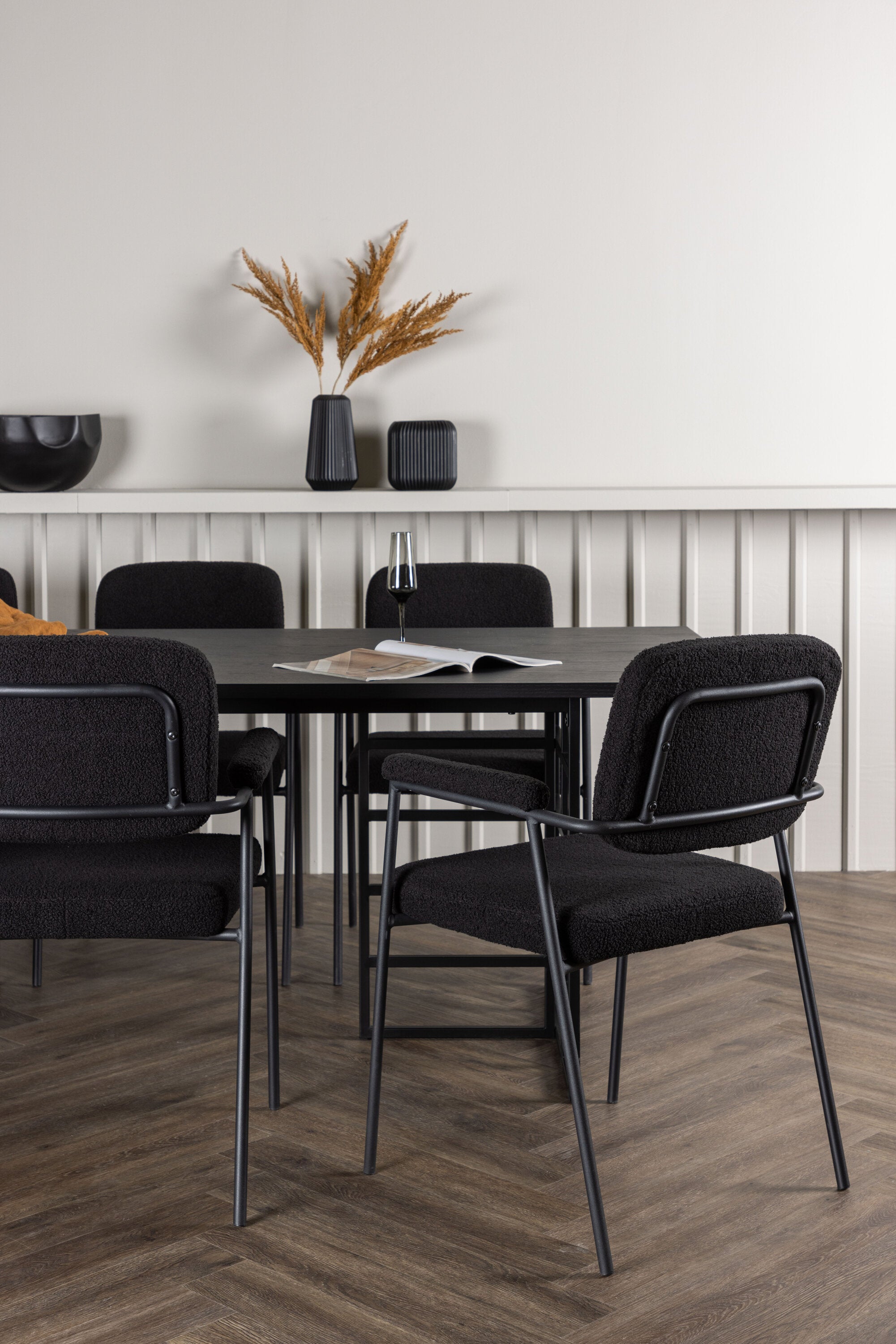 Jídelní stůl Ystad - černá / černá dubová dýha + jídelní židle Yesterday - černá / černá Boucle _6