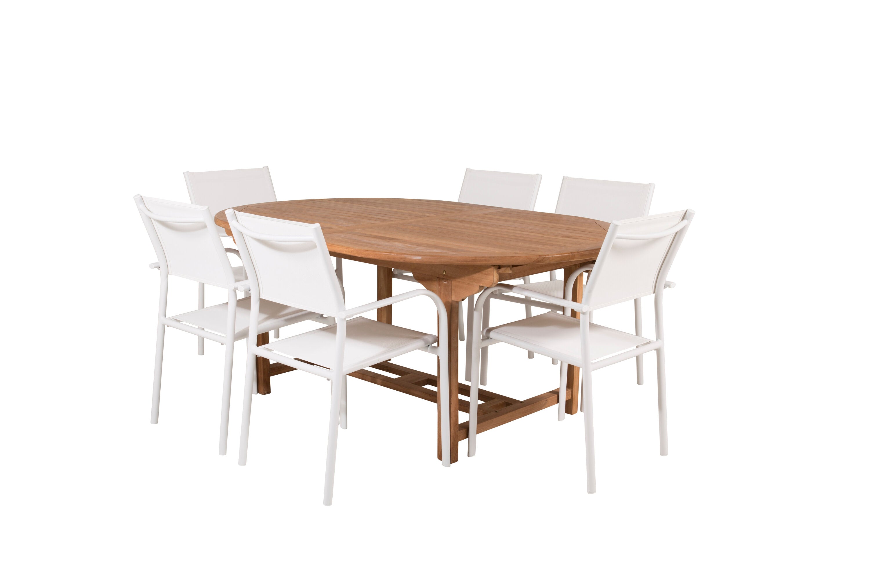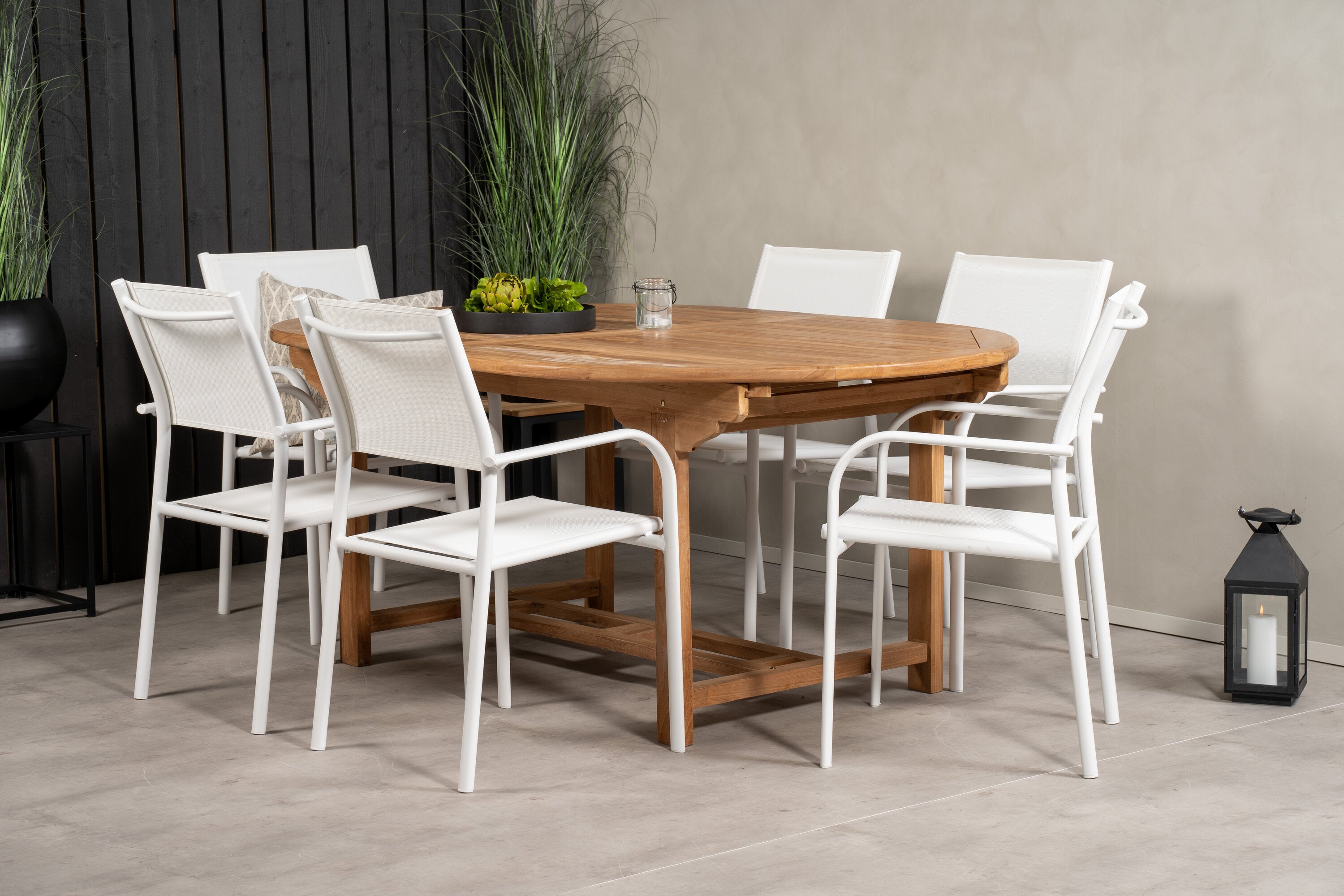 Kenya Oválný jídelní stůl 180/240*120*H75 -Teak - Ersätter 9525-444 +Křeslo Santorini (stohovatelné) - Bílá Alu / Bílá textilie _6