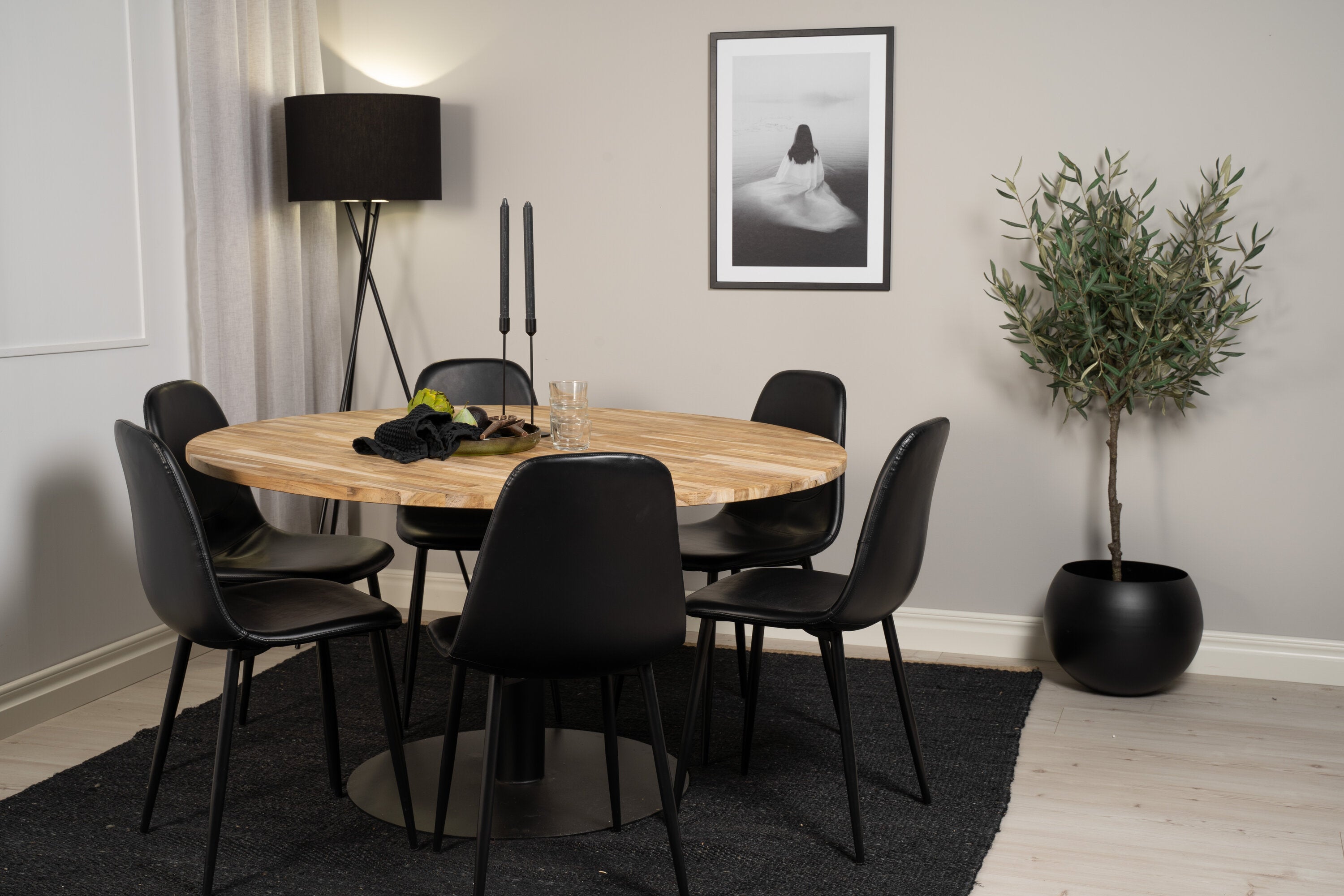 Kruhový stůl Cirebon - 140 cm - Teak / Černá + Polar Matstol - Svart / Svart PU _6