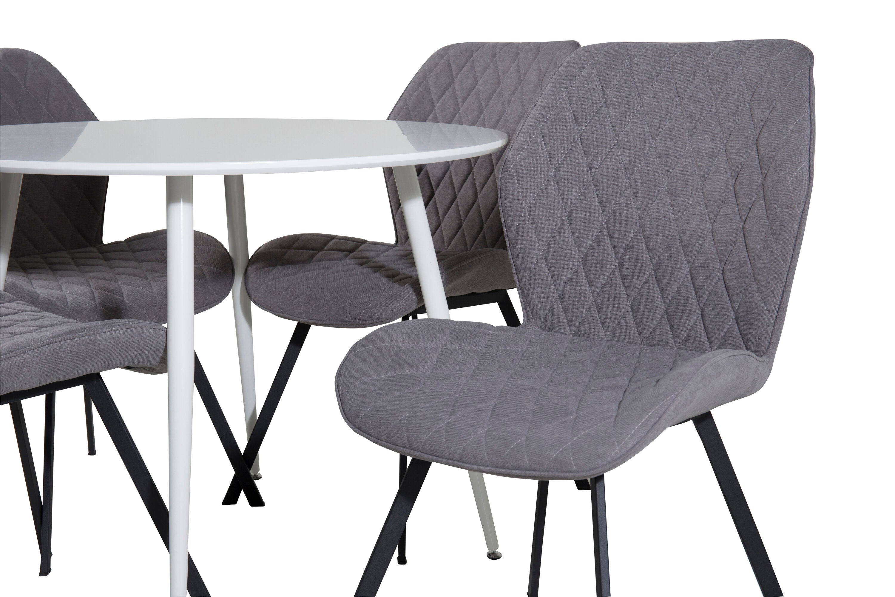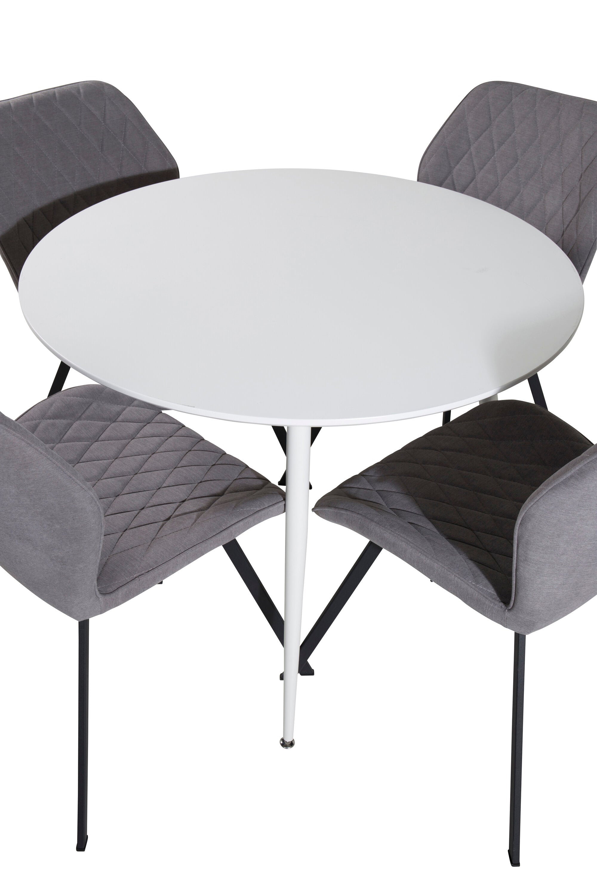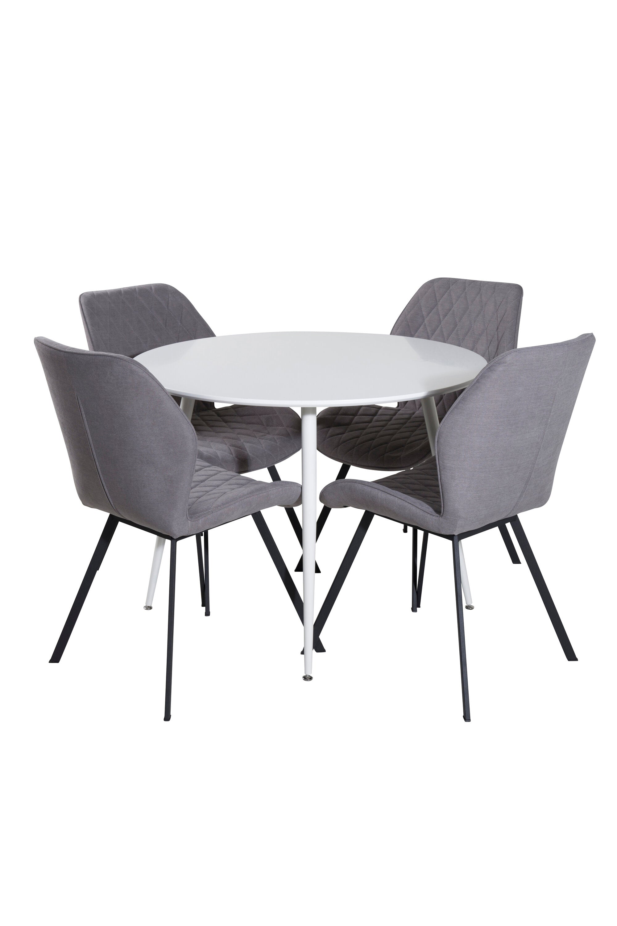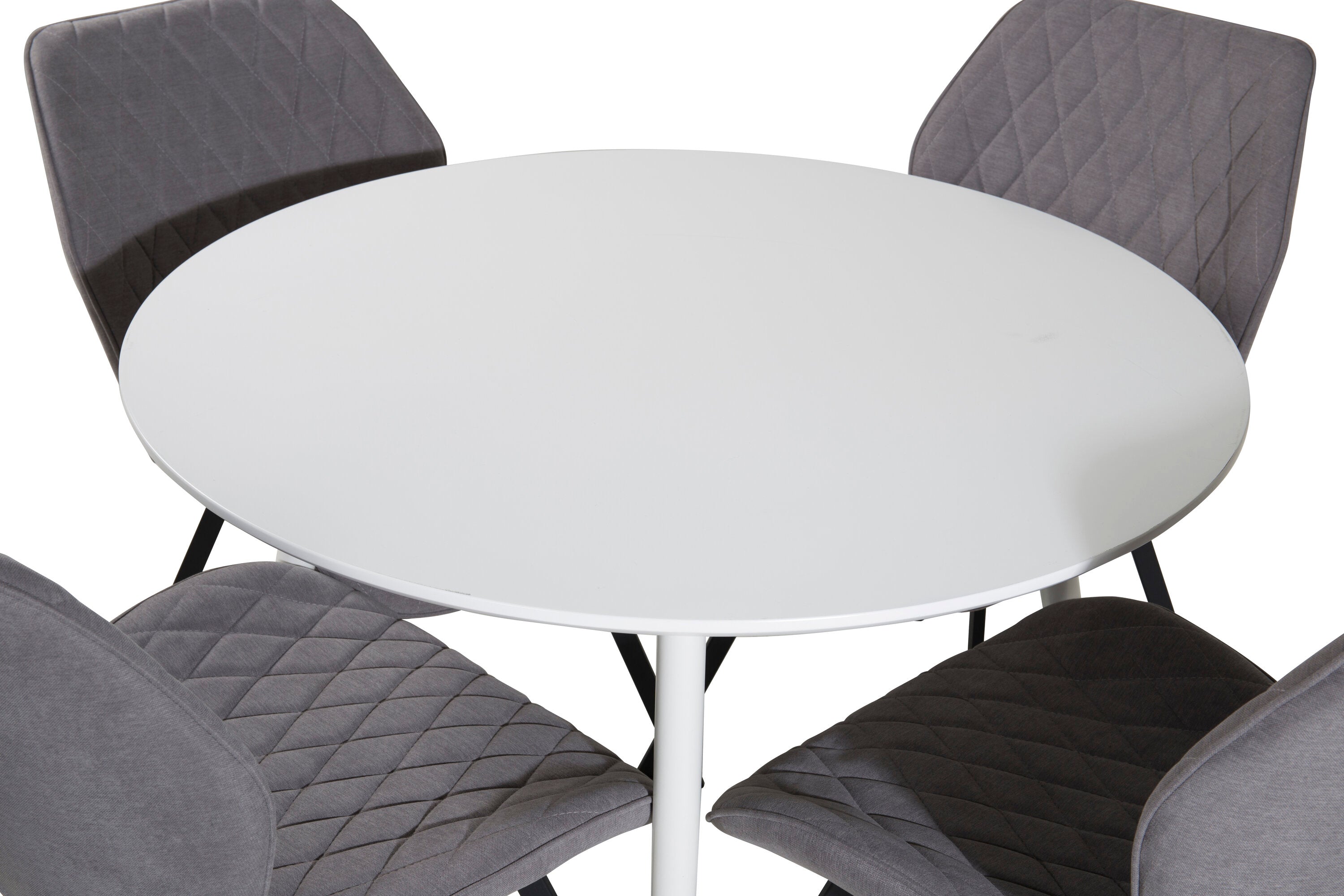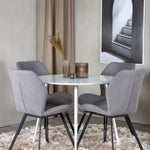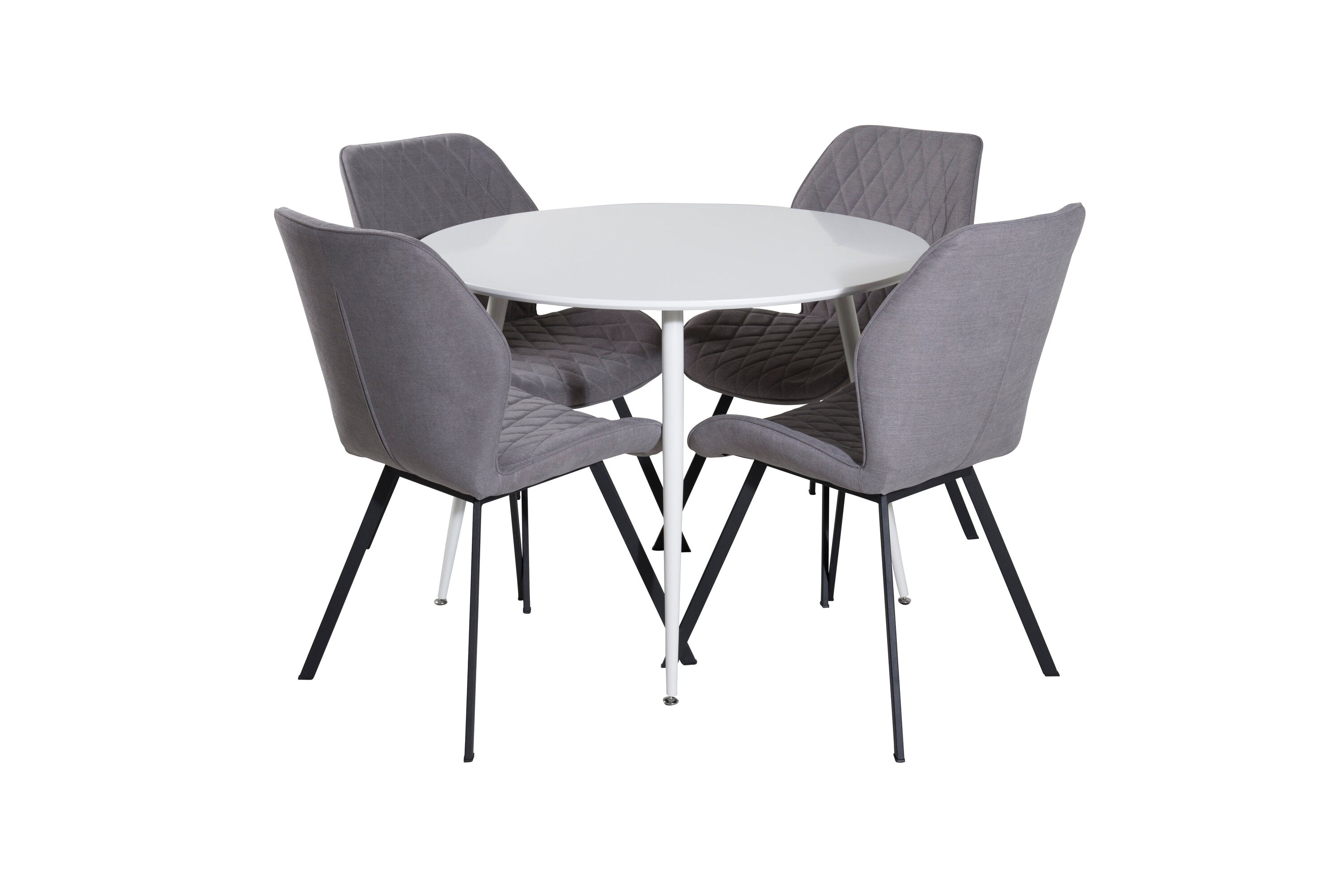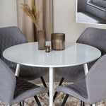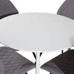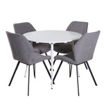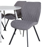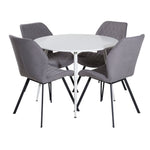 Kulatý stůl Plaza 100 cm - Bílá deska / Bílé nohy+jídelní židle Gemma - Černé nohy - Šedá látka_4
