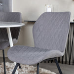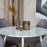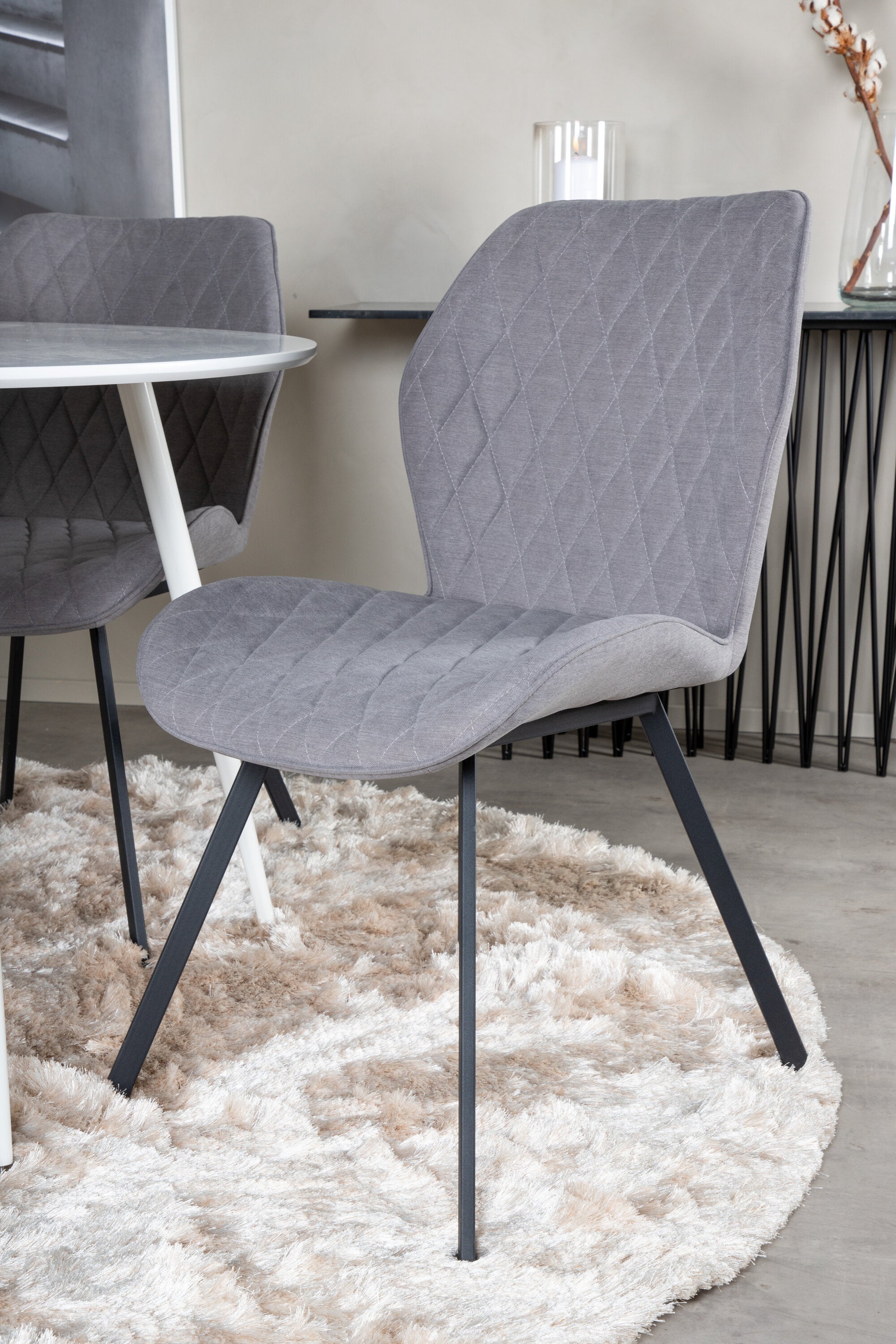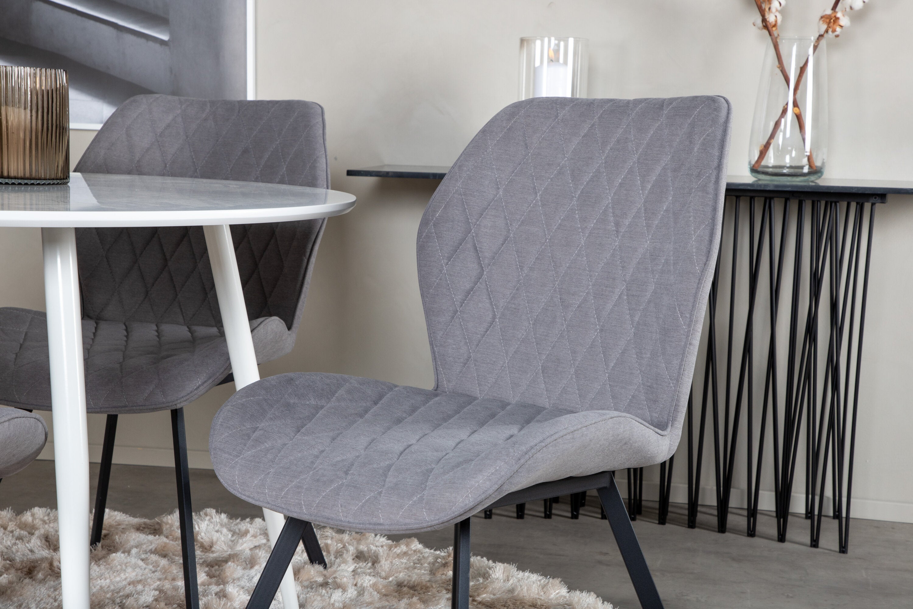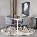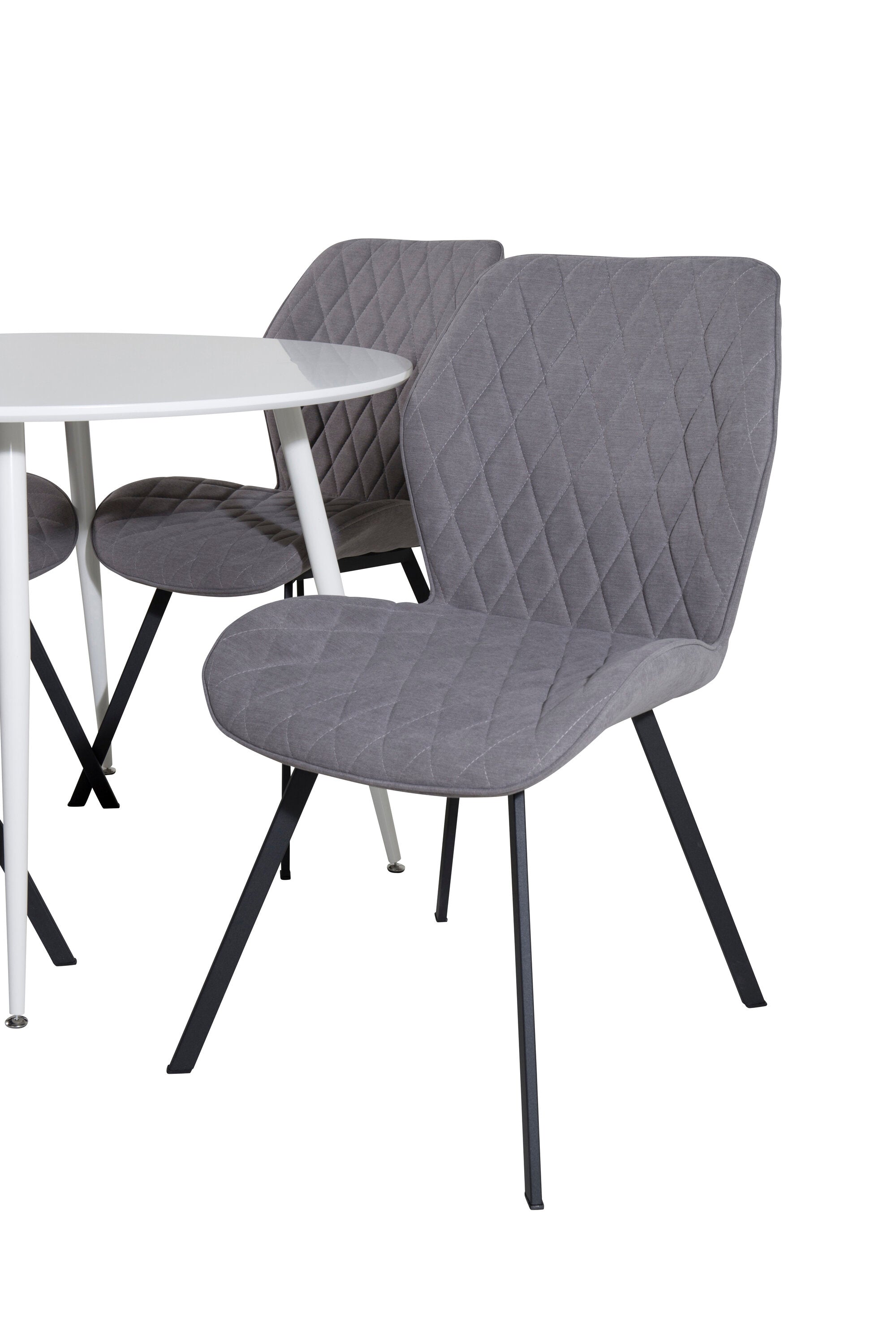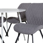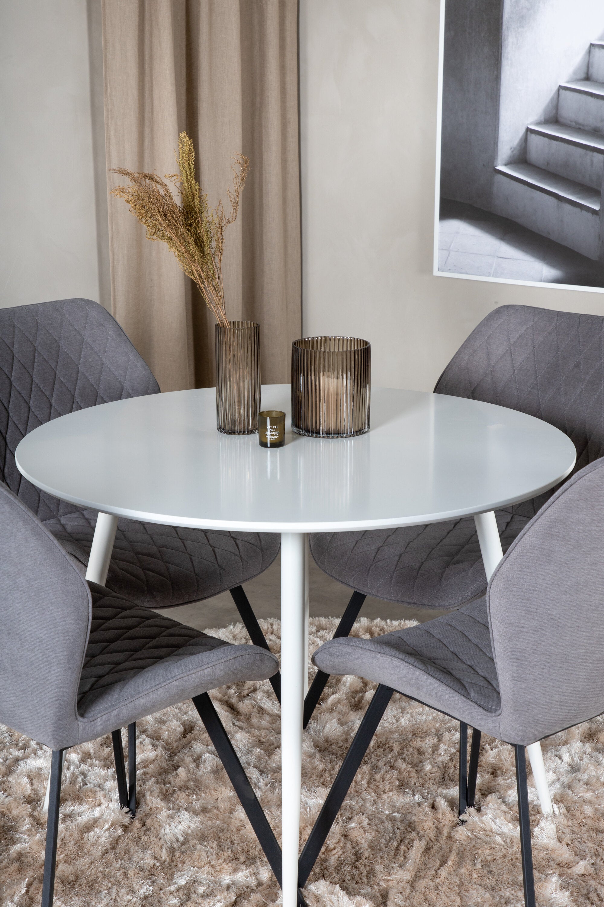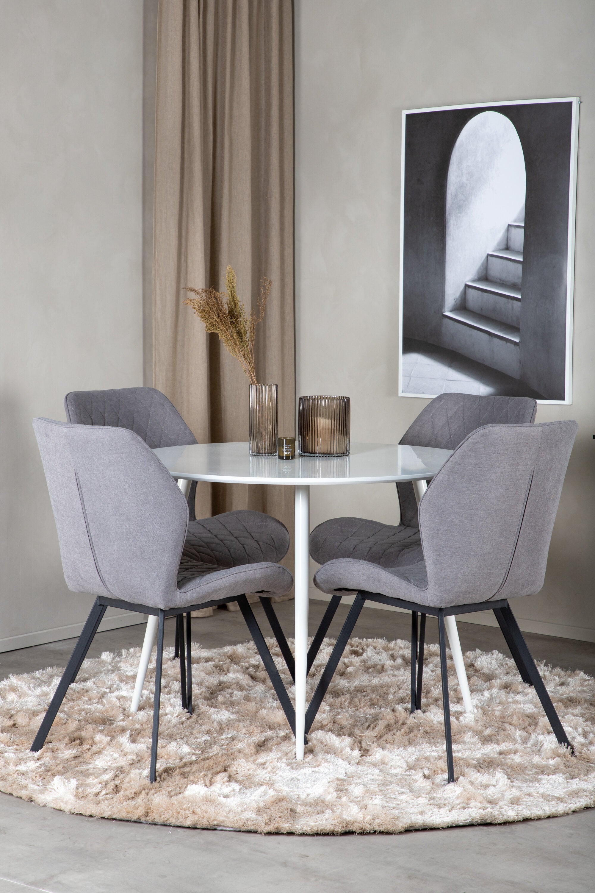 Kulatý stůl Plaza 100 cm - Bílá deska / Bílé nohy+jídelní židle Gemma - Černé nohy - Šedá látka_4