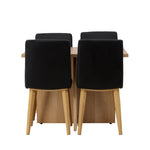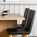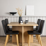 Spárováno s našimi černými jídelními židlemi Dnes se tato jídelní souprava stává dokonalou kombinací stylu a pohodlí. Tato židle se pyšní rovnými severskými liniemi s celočalouněným sedákem z černé umělé kůže. Nohy židle se jemně rozprostírají v přírodním dřevě, což poskytuje stabilitu a skvěle ladí s jídelním stolem.