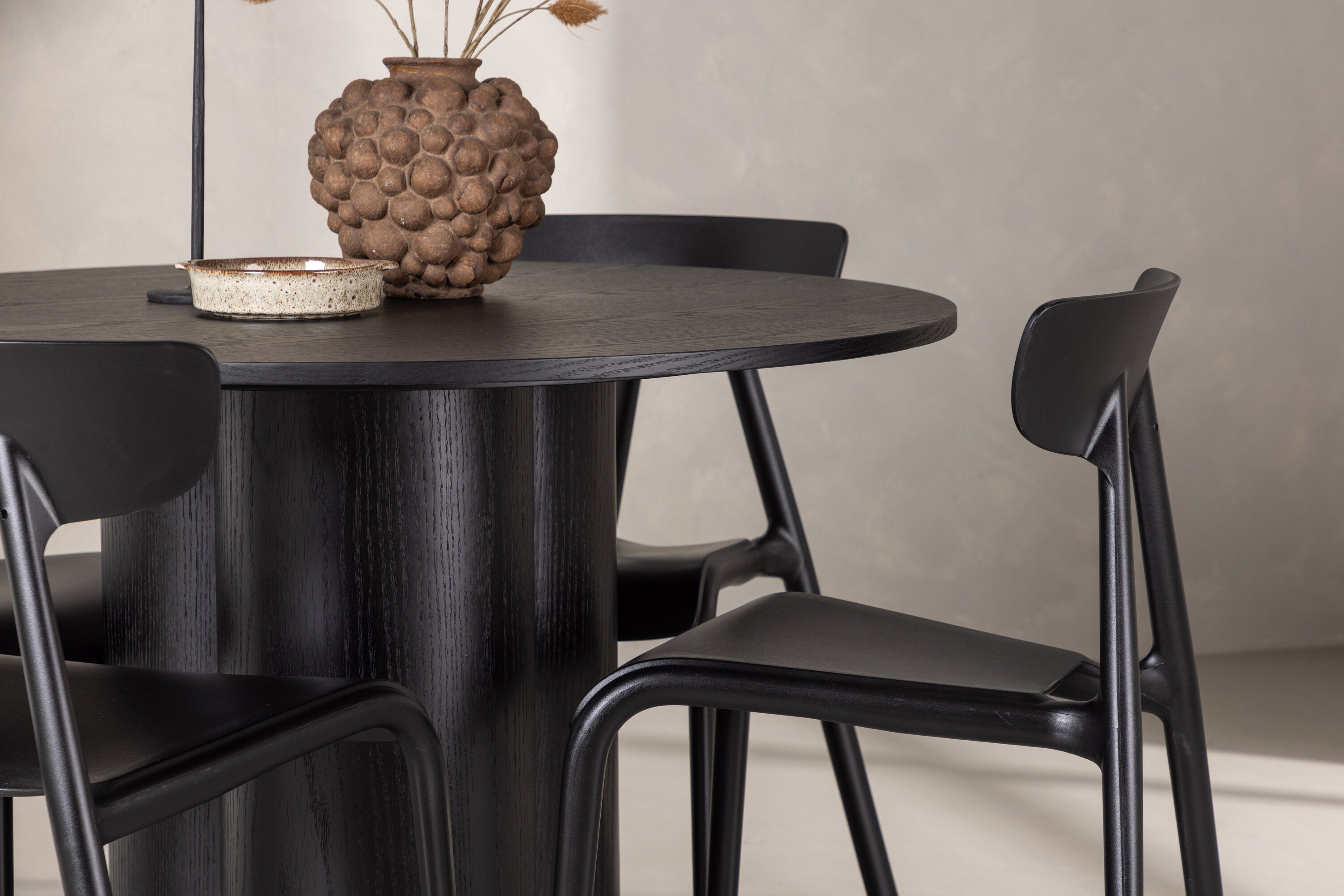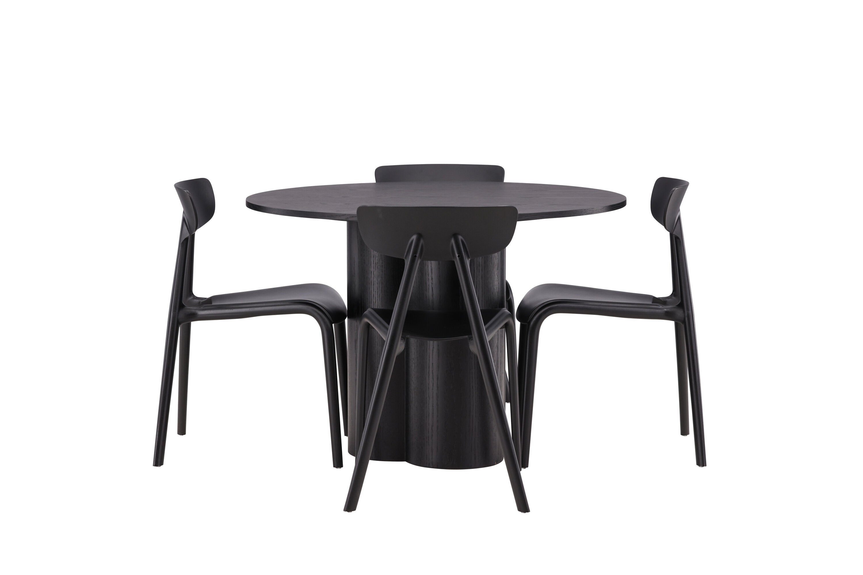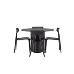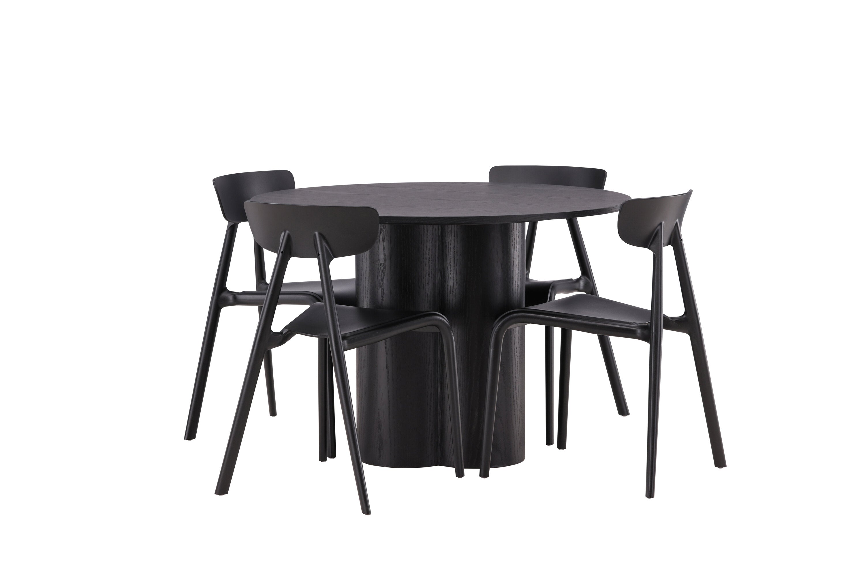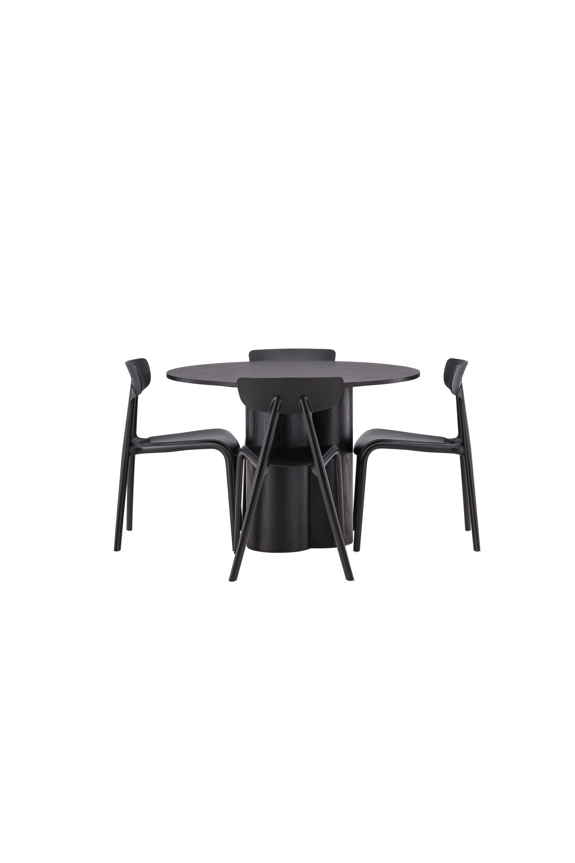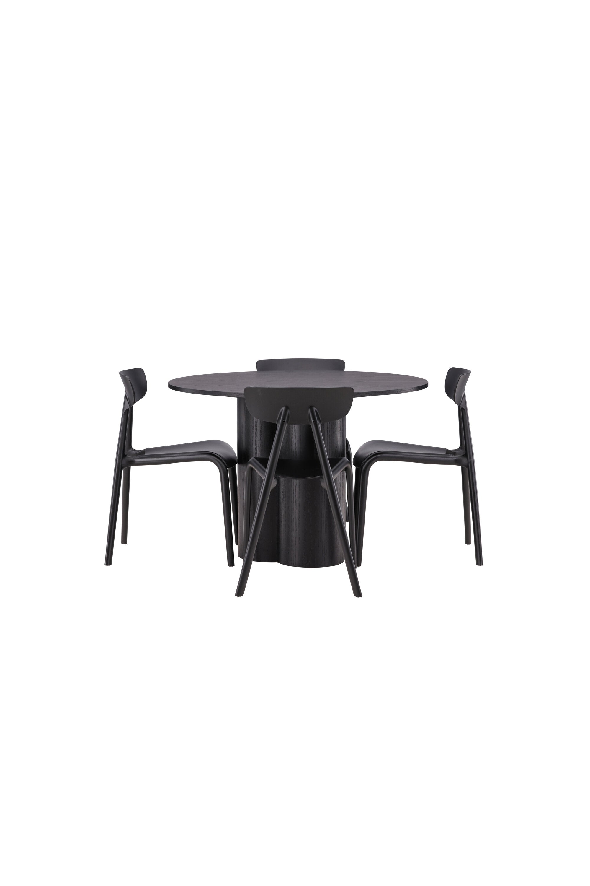 Vytvořte si příjemnou atmosféru ve svém obývacím pokoji s moderní jídelní sestavou! Jídelní stůl Olivia zaujme svým skandinávským designem a vkusným designem. Stůl má celkový design v sazově černé barvě. Kulatá deska je z MDF a rám se skládá ze tří noh ve tvaru válce, které jsou shromážděny pod středem stolu. Zde společně s krásnými jídelními židlemi ze série Ursholmen. Vyrobeno z odolného plastu v štíhlé černé barvě, kterou lze snadno sladit s ostatním nábytkem. Židle má minimalistické opěradlo, mírně hlubší sedák a mírně rozšířené nohy ve skandinávském designu. Vyhněte se kompromisům mezi stylem a vhodností!