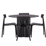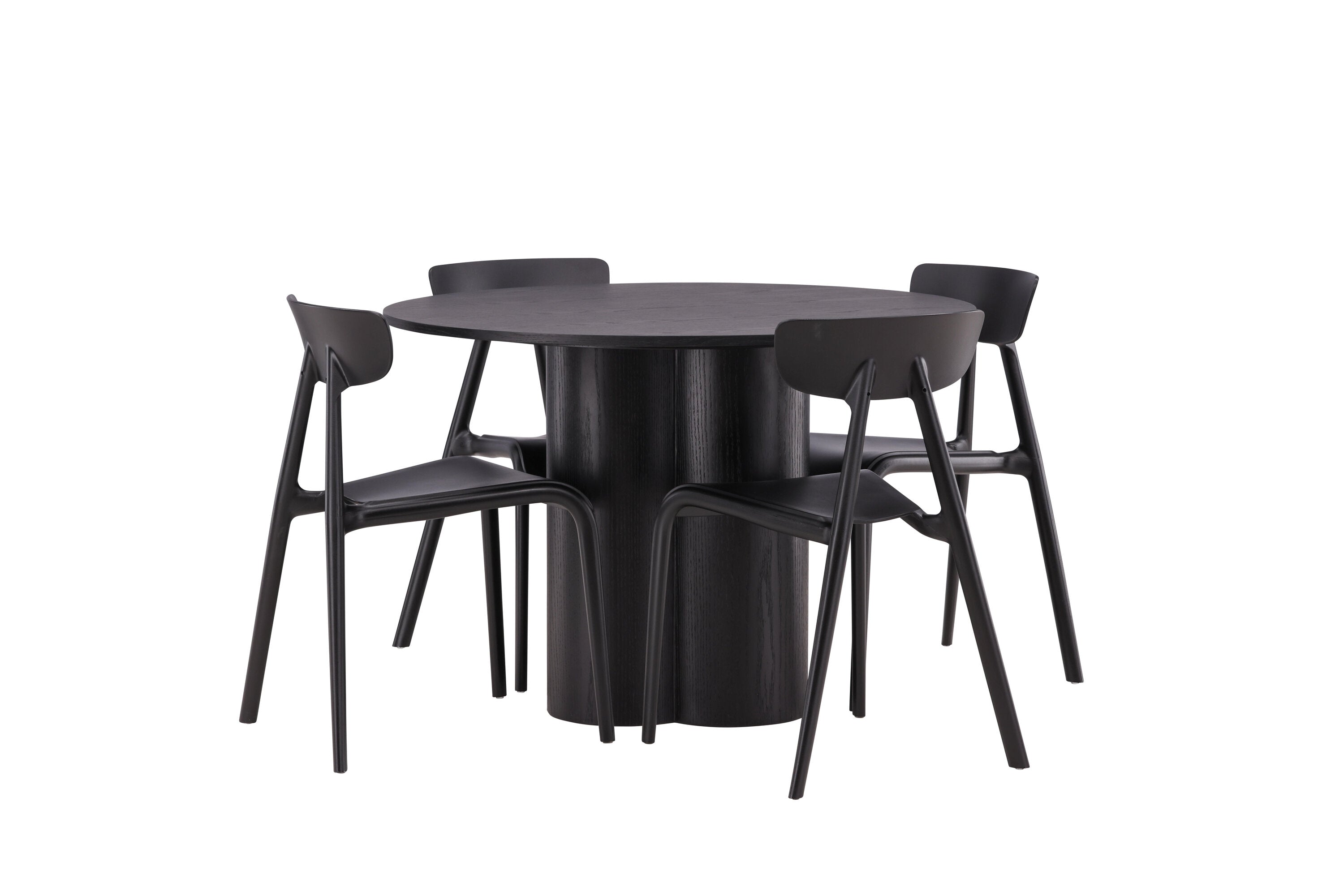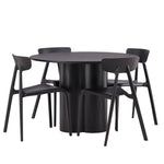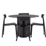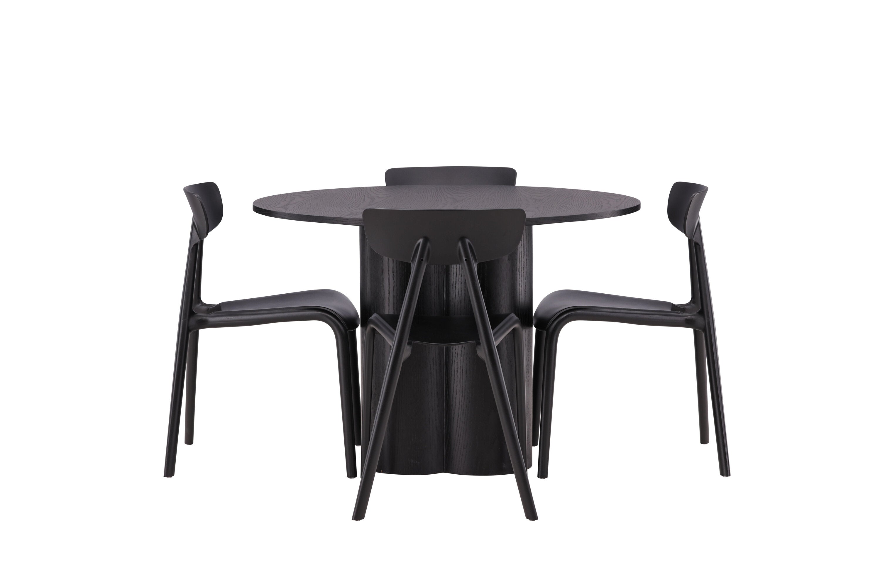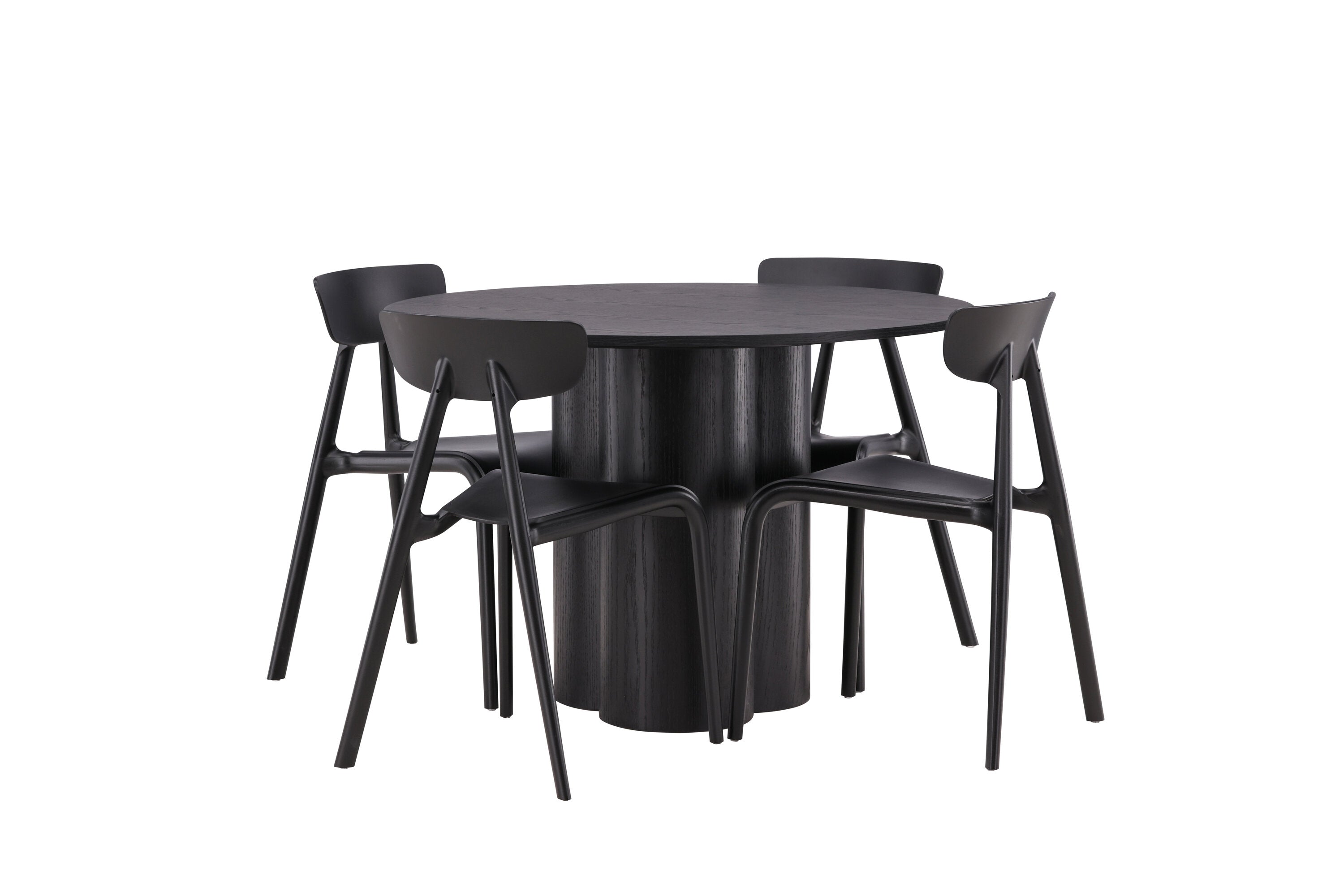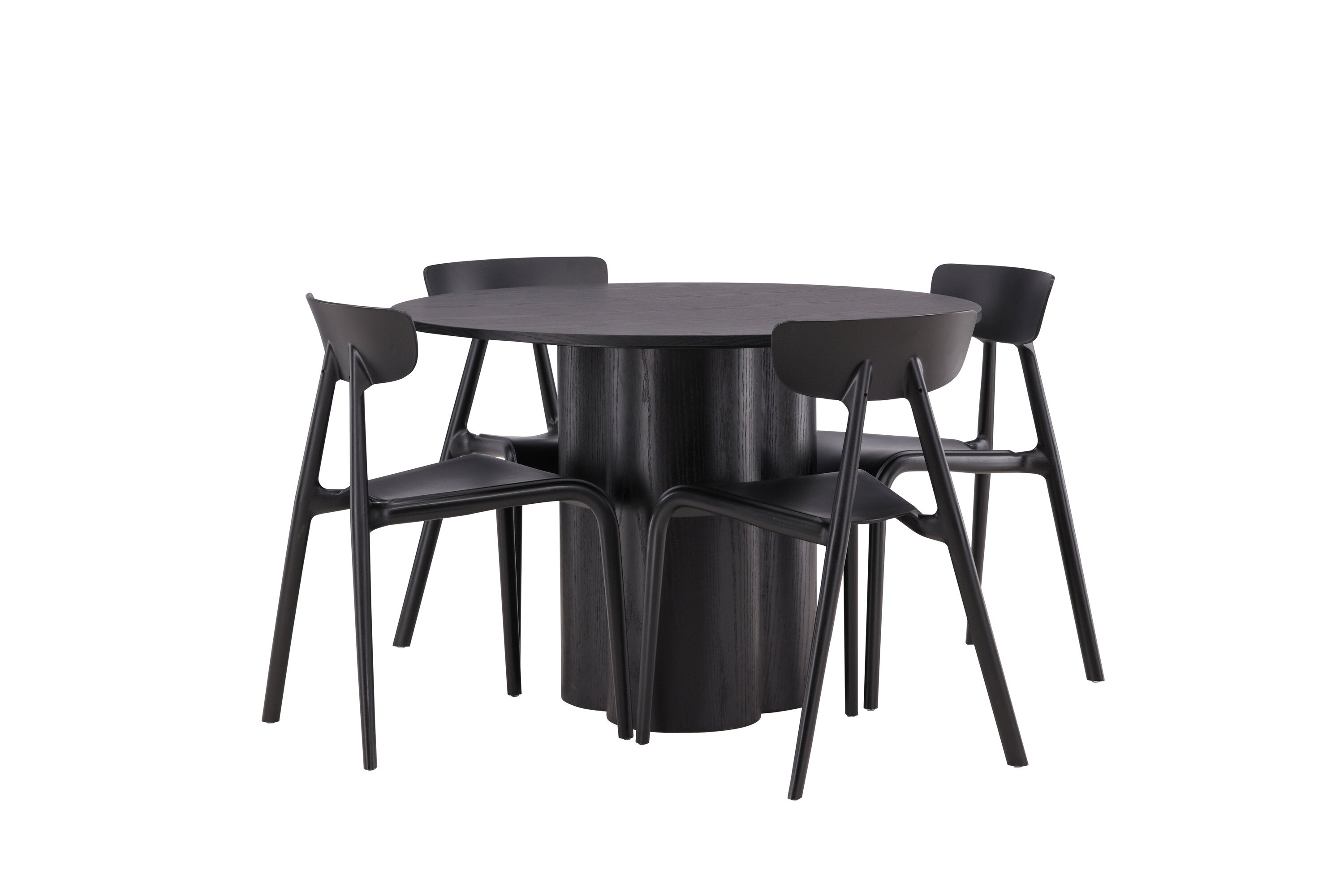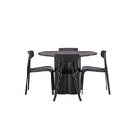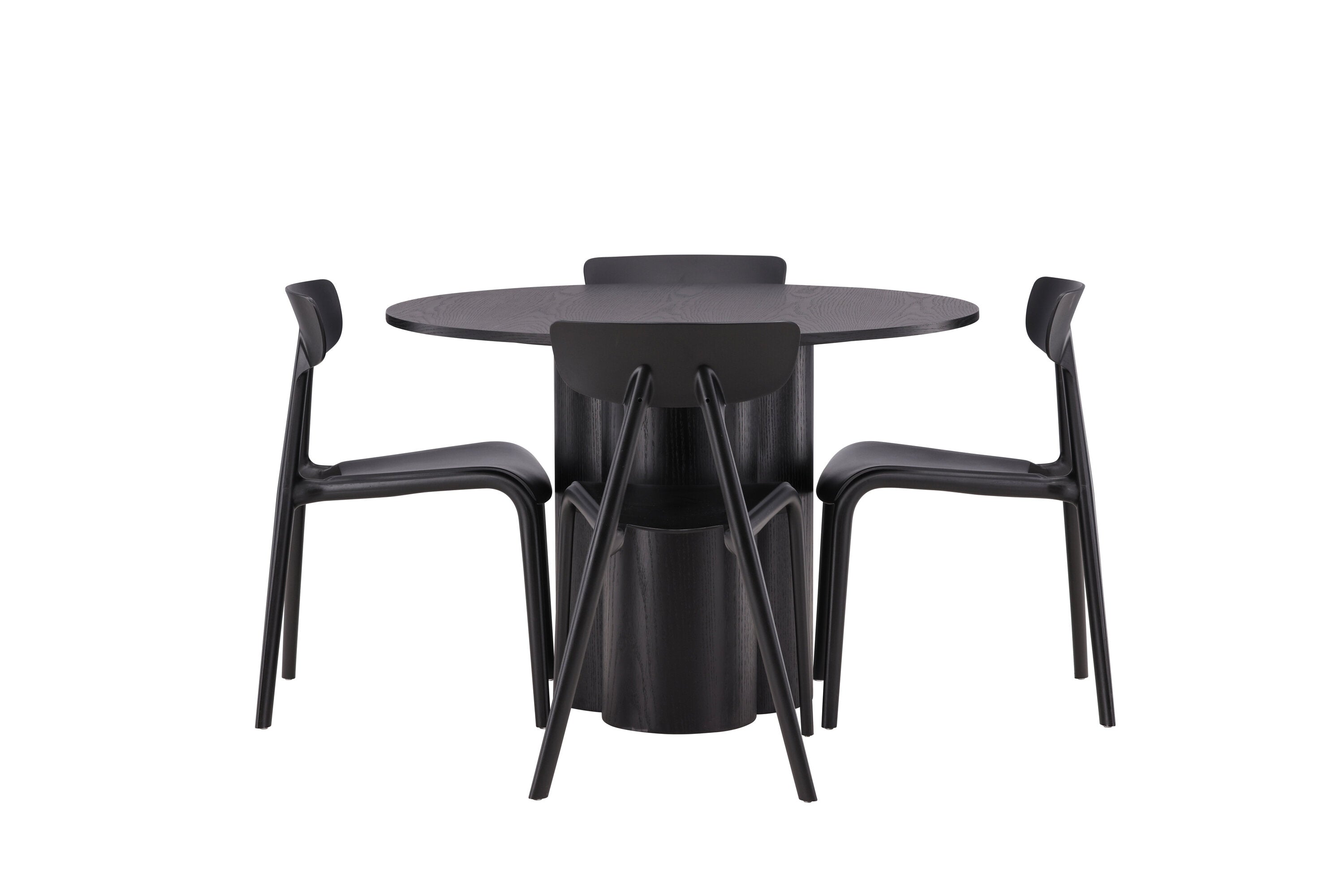 Vytvořte si příjemnou atmosféru ve svém obývacím pokoji s moderní jídelní sestavou! Jídelní stůl Olivia zaujme svým skandinávským designem a vkusným designem. Stůl má celkový design v sazově černé barvě. Kulatá deska je z MDF a rám se skládá ze tří noh ve tvaru válce, které jsou shromážděny pod středem stolu. Zde společně s krásnými jídelními židlemi ze série Ursholmen. Vyrobeno z odolného plastu v štíhlé černé barvě, kterou lze snadno sladit s ostatním nábytkem. Židle má minimalistické opěradlo, mírně hlubší sedák a mírně rozšířené nohy ve skandinávském designu. Vyhněte se kompromisům mezi stylem a vhodností!