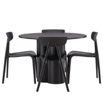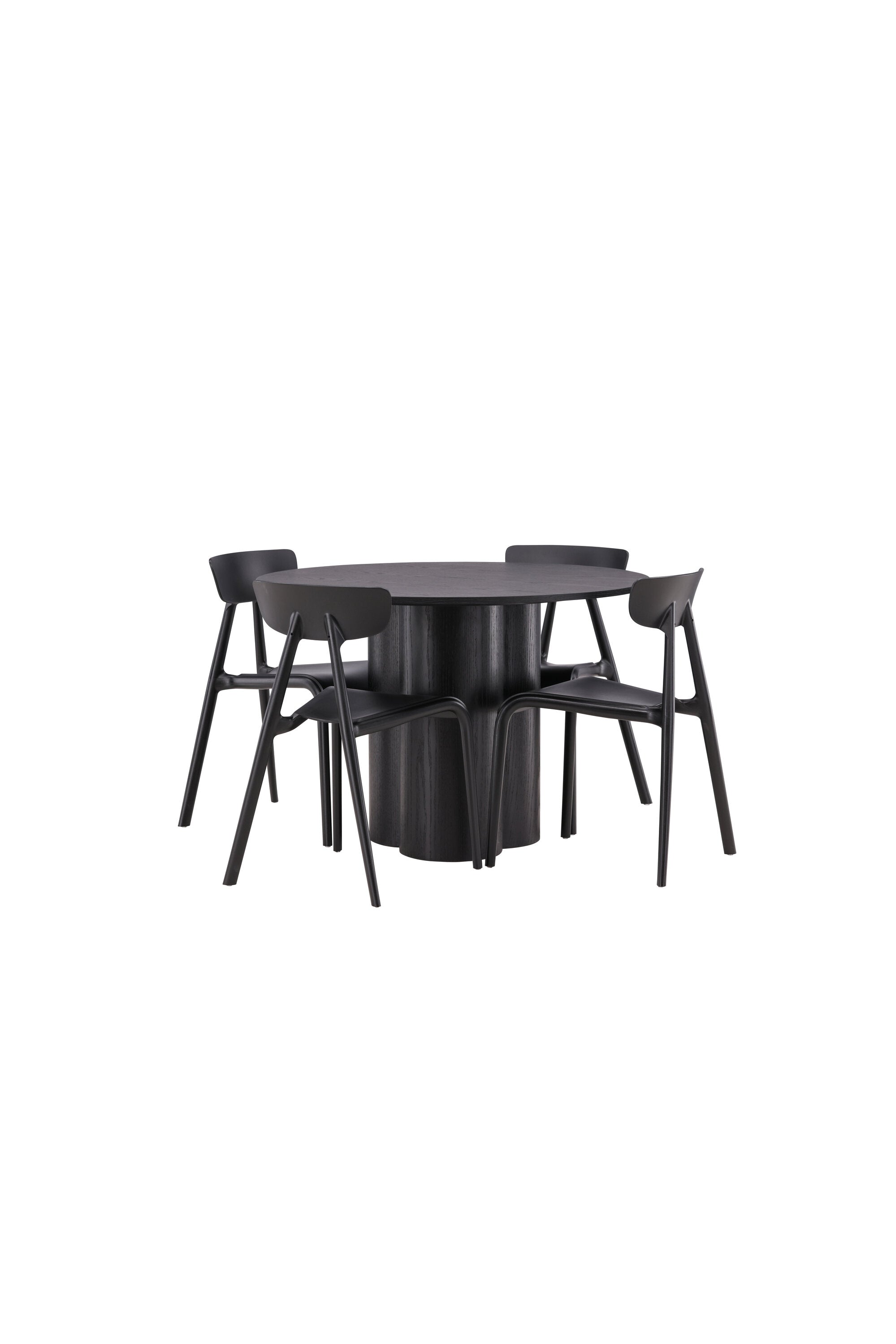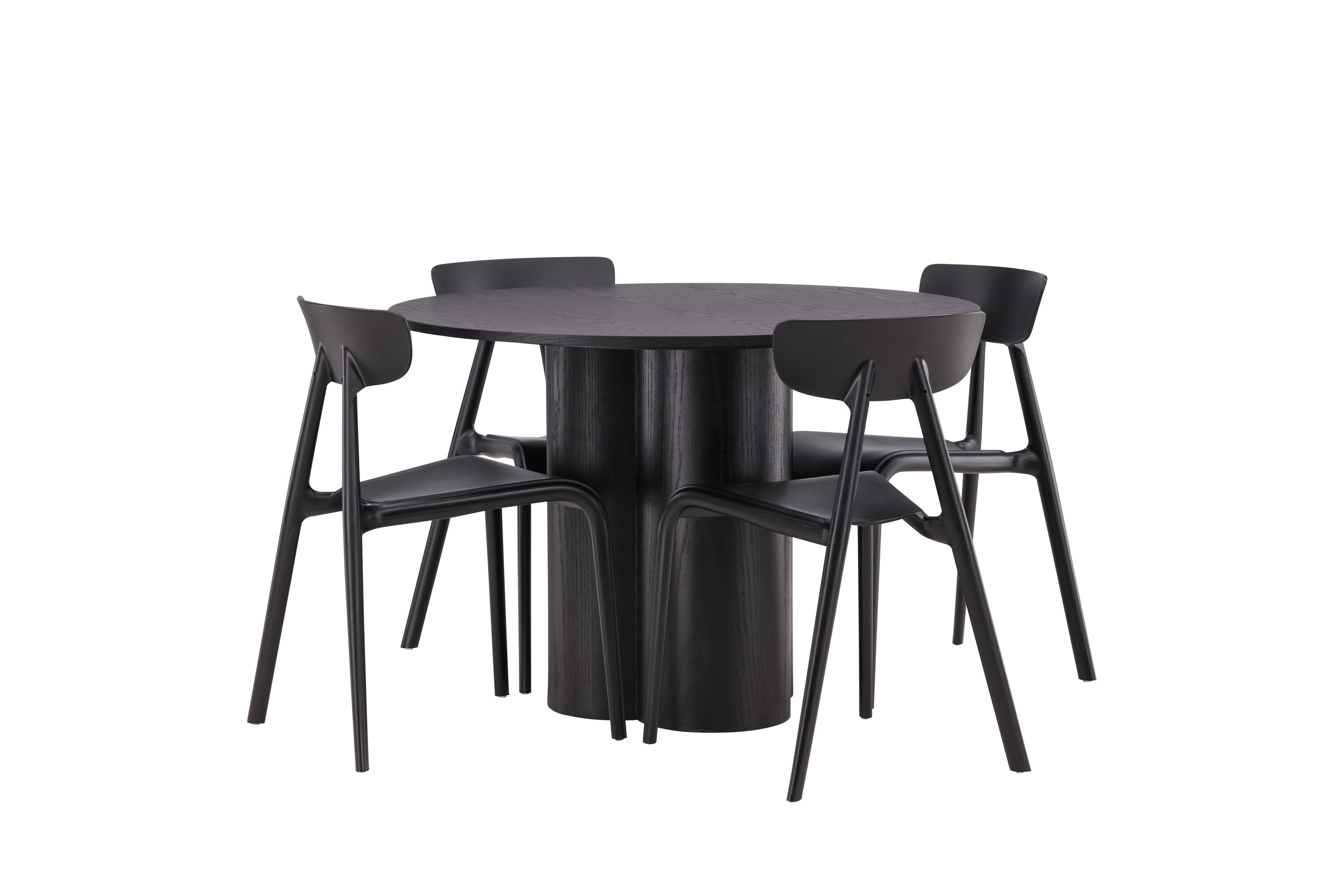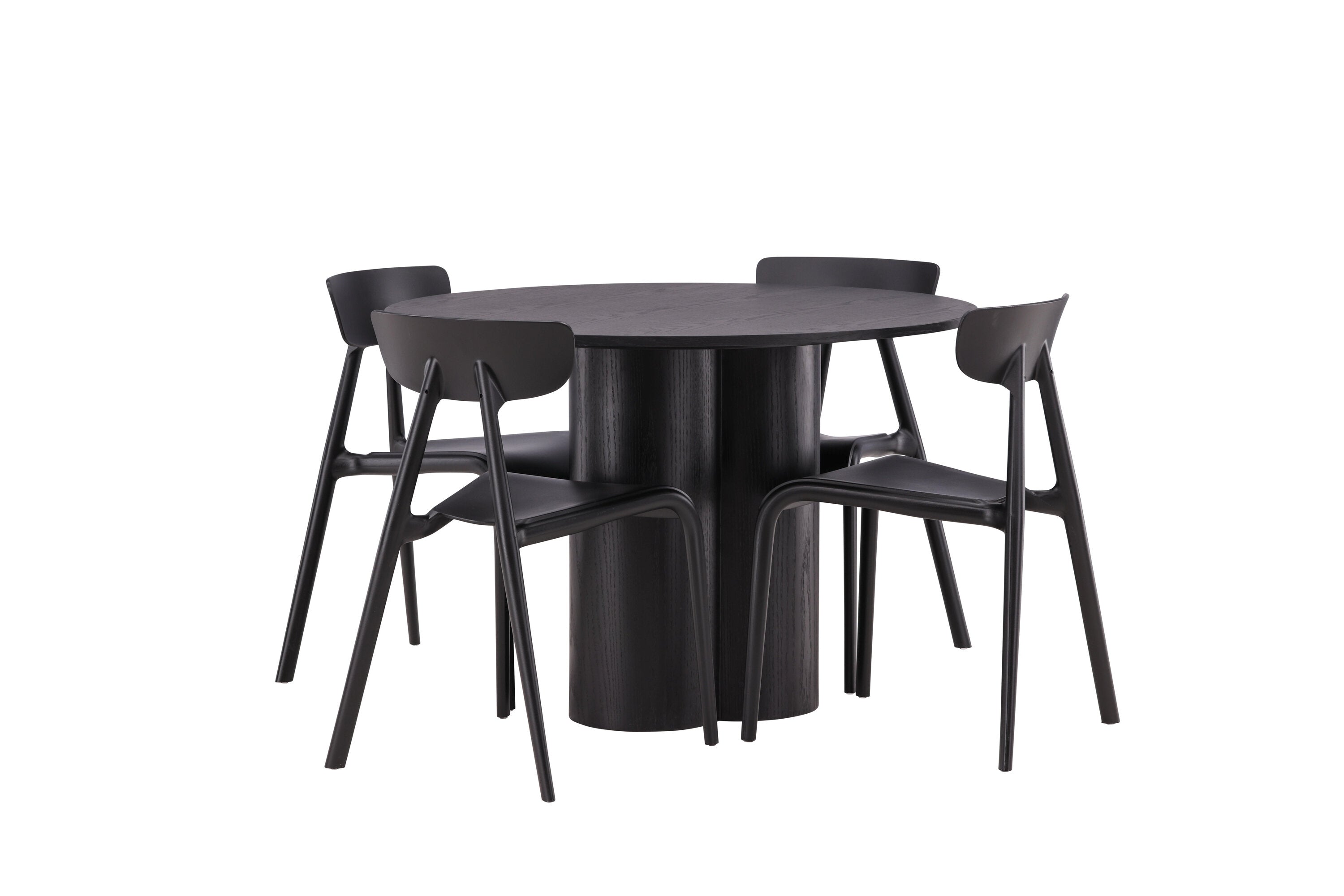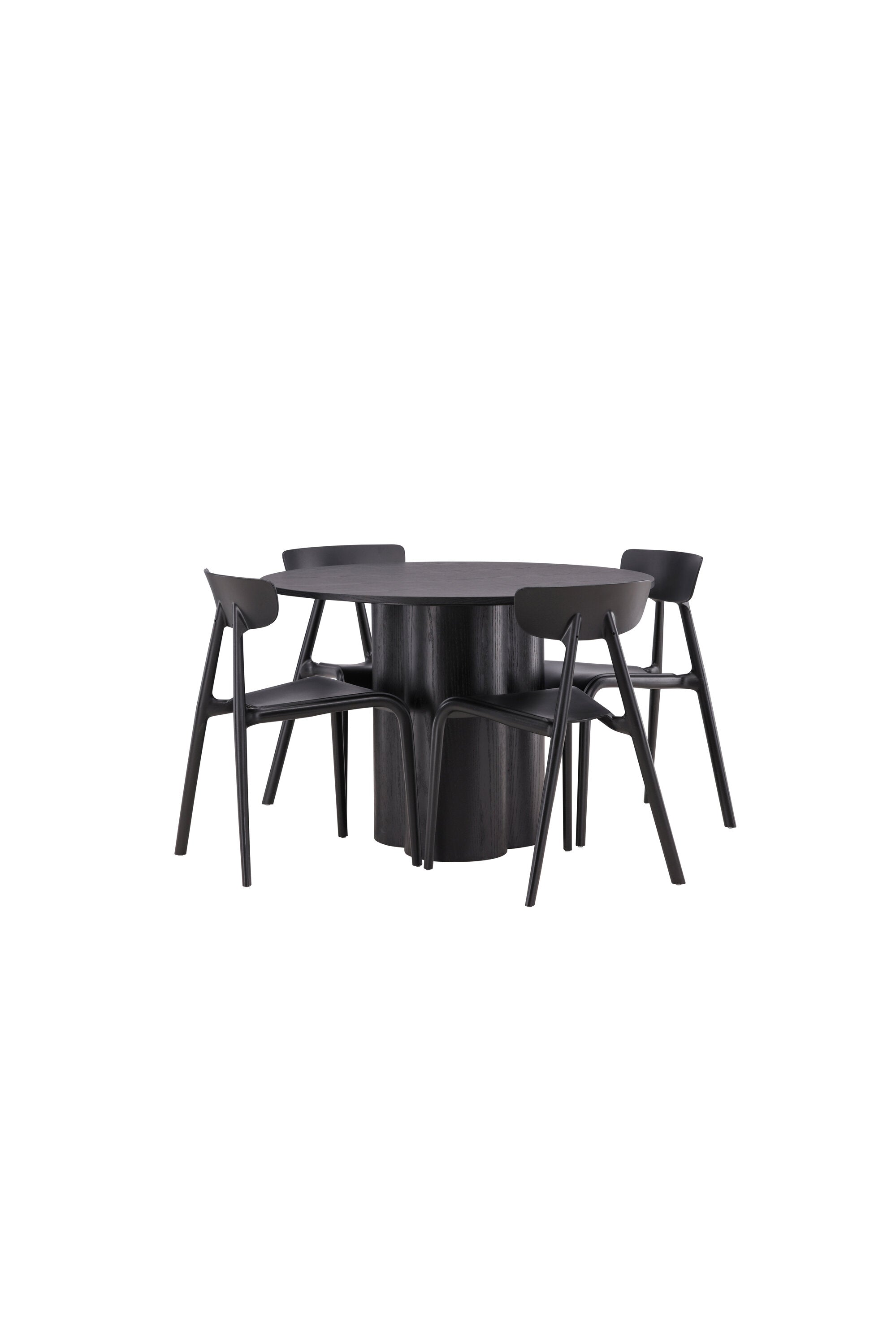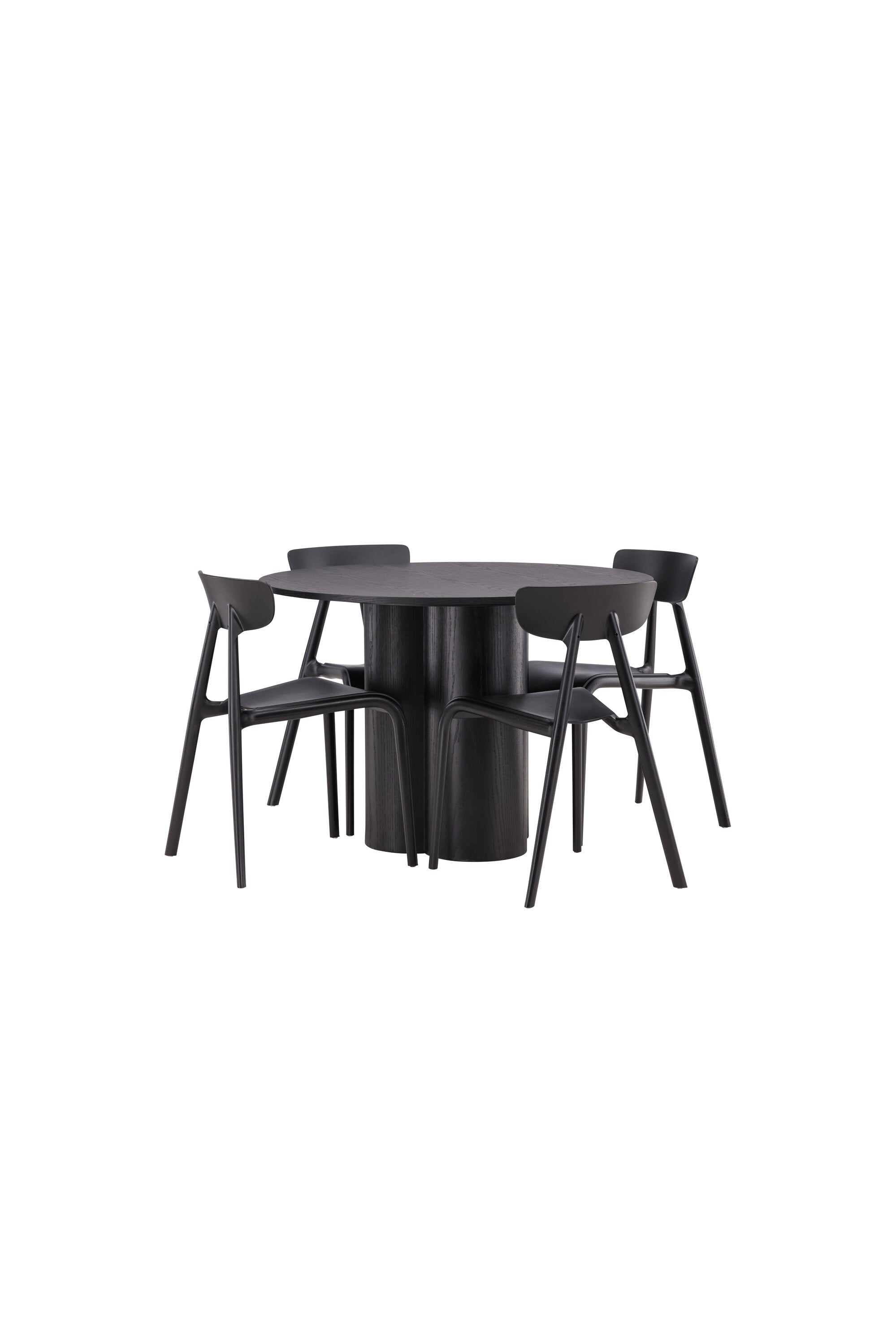Vytvořte si příjemnou atmosféru ve svém obývacím pokoji s moderní jídelní sestavou! Jídelní stůl Olivia zaujme svým skandinávským designem a vkusným designem. Stůl má celkový design v sazově černé barvě. Kulatá deska je z MDF a rám se skládá ze tří noh ve tvaru válce, které jsou shromážděny pod středem stolu. Zde společně s krásnými jídelními židlemi ze série Ursholmen. Vyrobeno z odolného plastu v štíhlé černé barvě, kterou lze snadno sladit s ostatním nábytkem. Židle má minimalistické opěradlo, mírně hlubší sedák a mírně rozšířené nohy ve skandinávském designu. Vyhněte se kompromisům mezi stylem a vhodností!