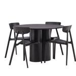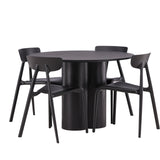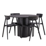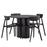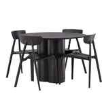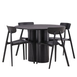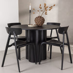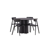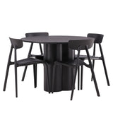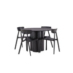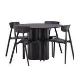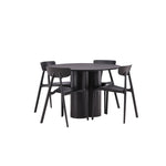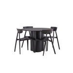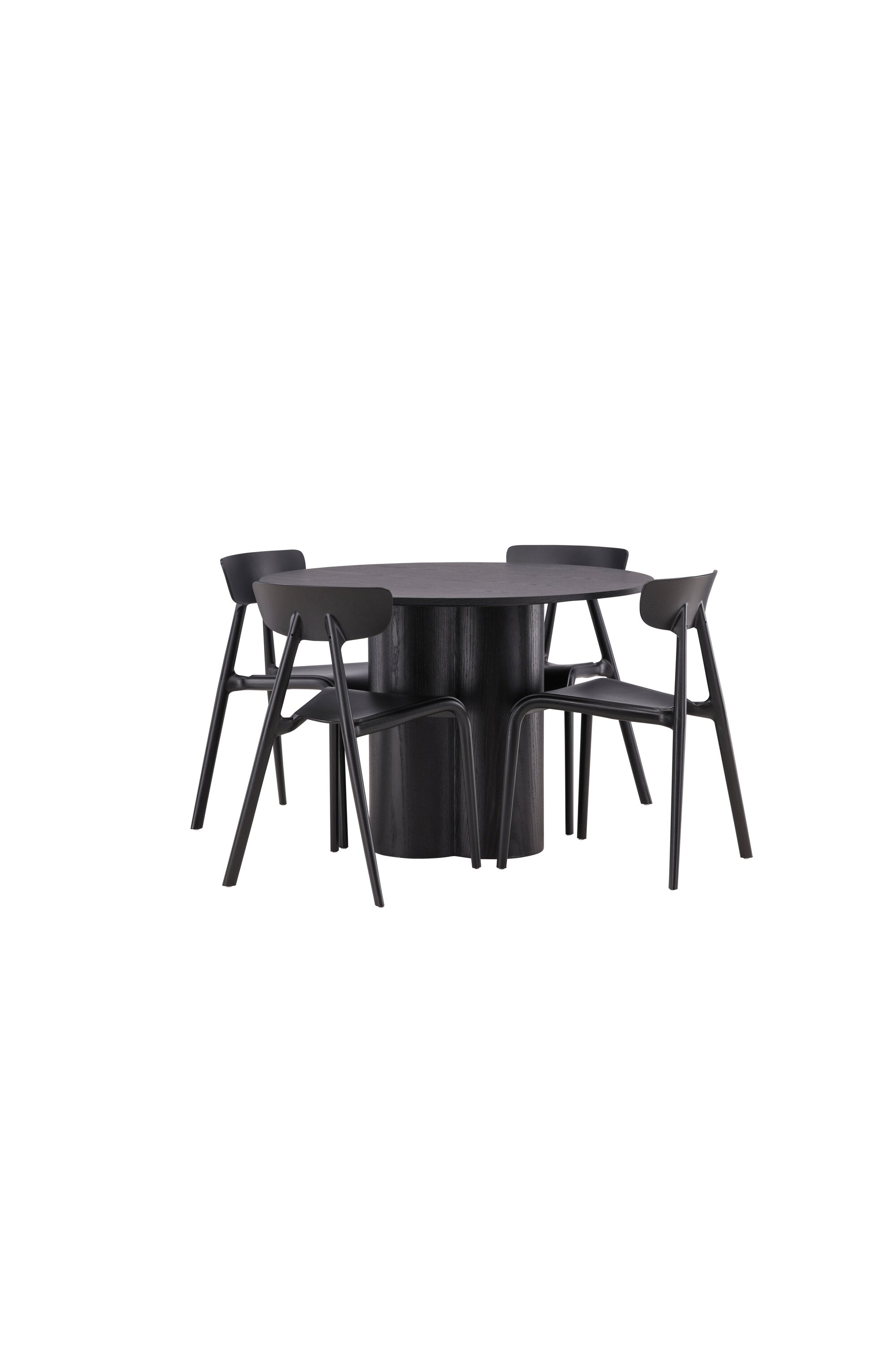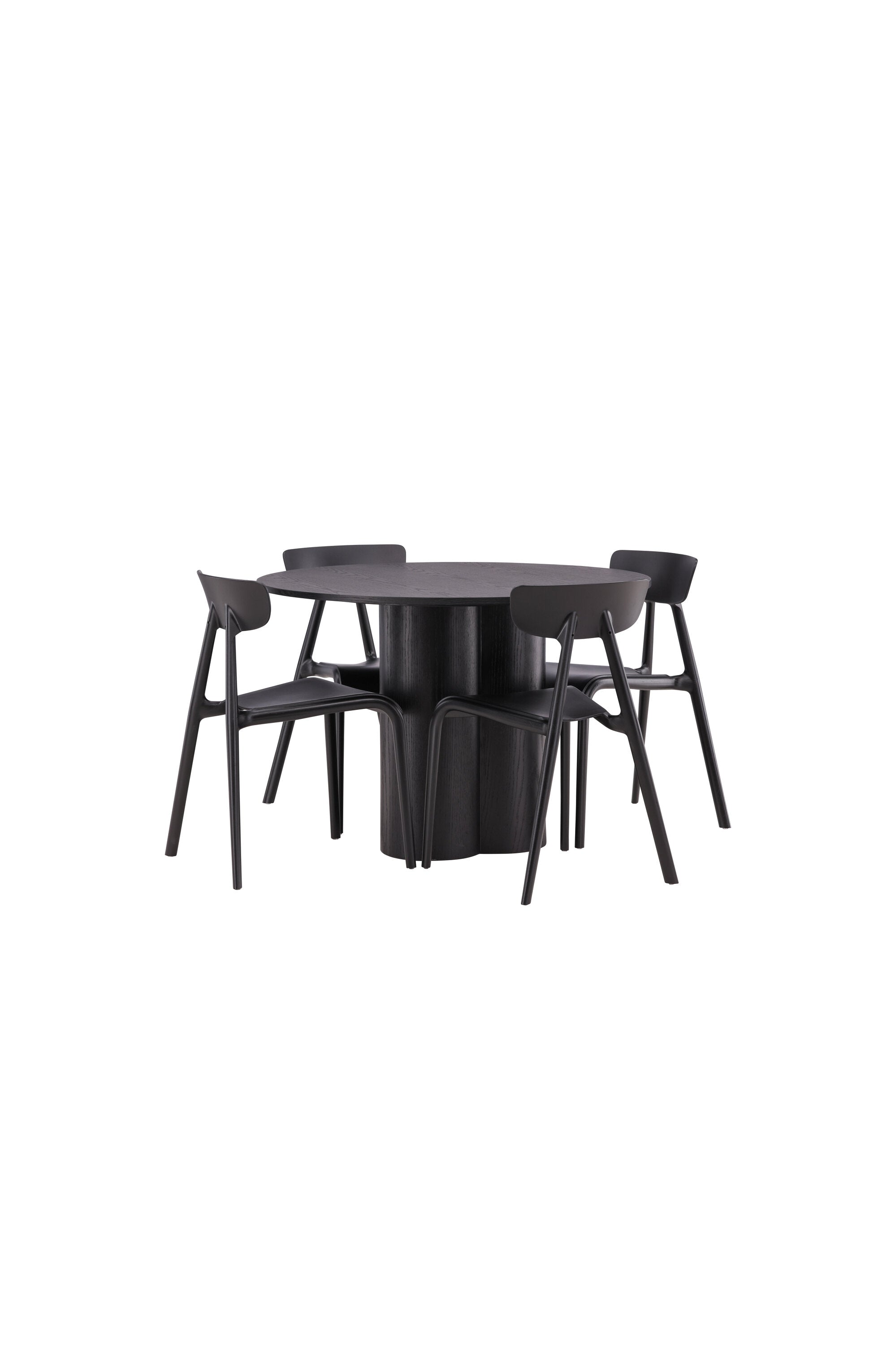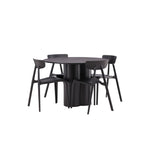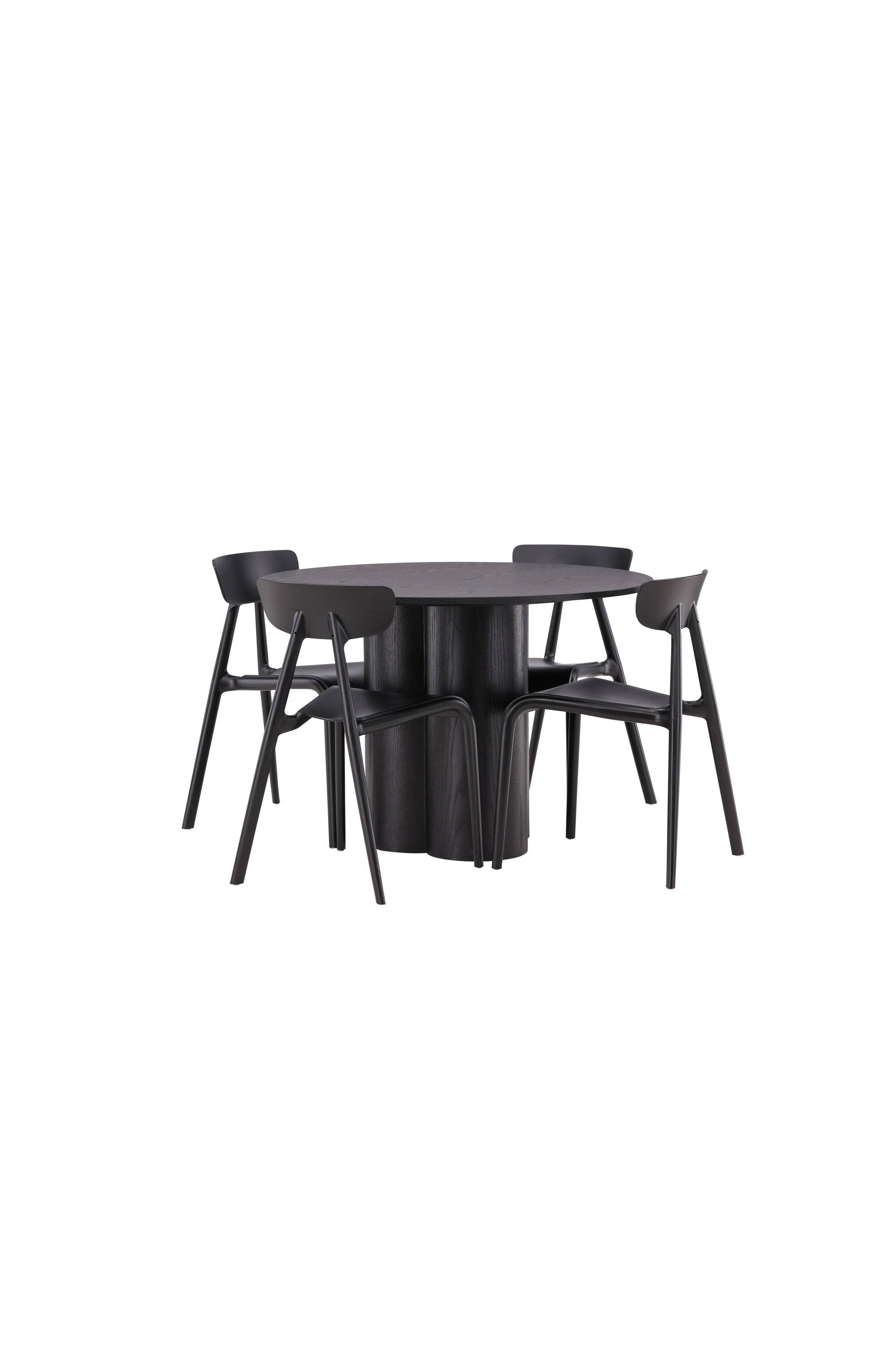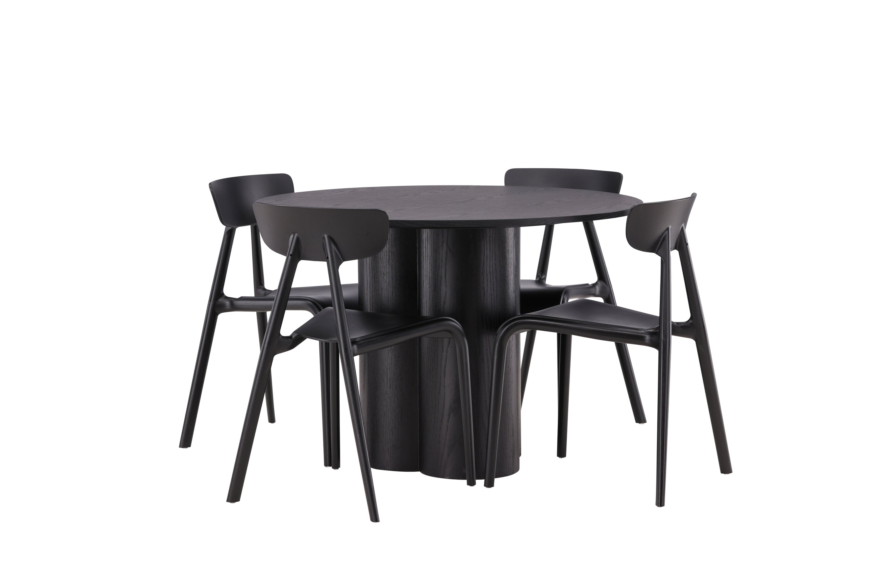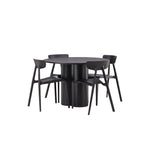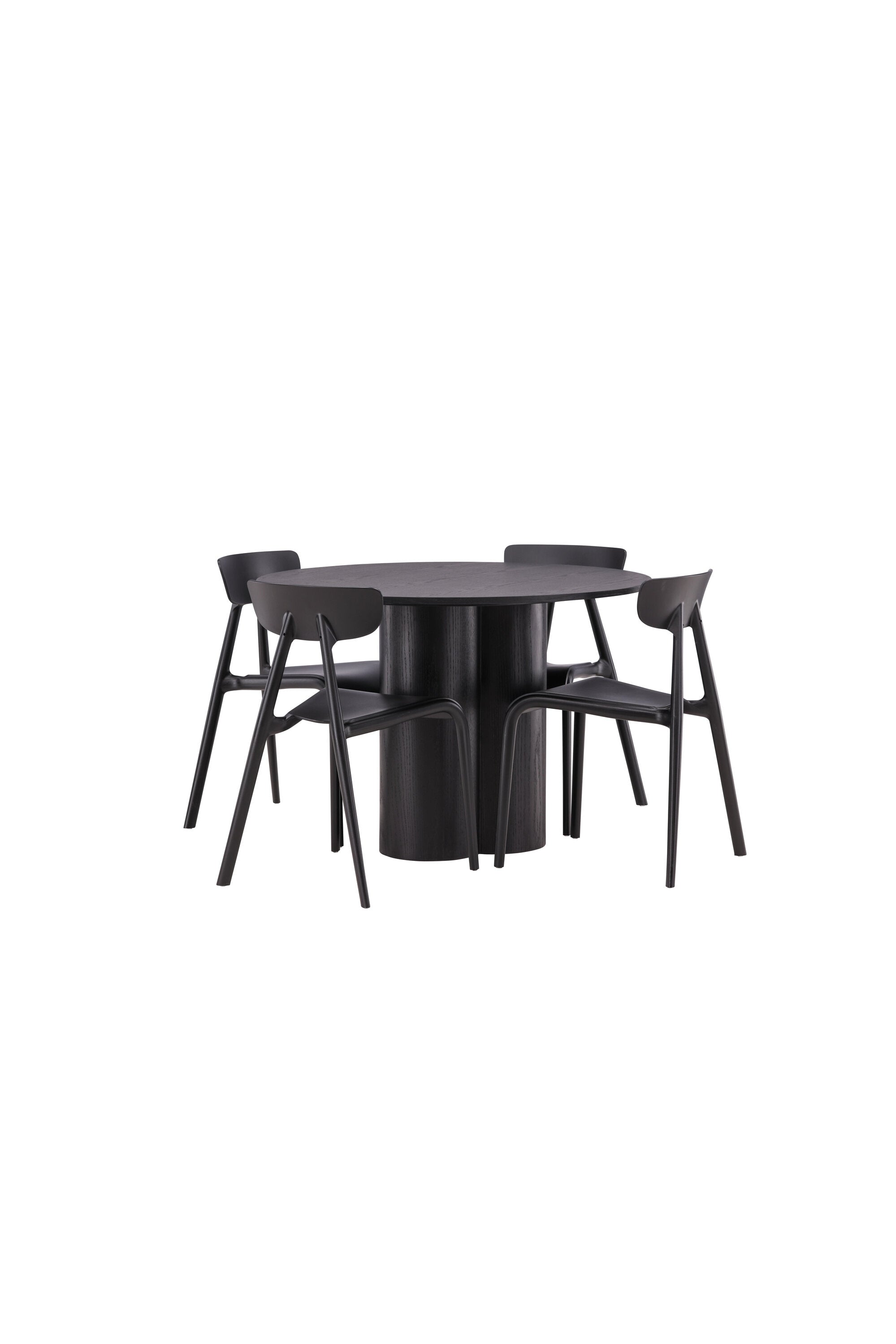 Vytvořte si příjemnou atmosféru ve svém obývacím pokoji s moderní jídelní sestavou! Jídelní stůl Olivia zaujme svým skandinávským designem a vkusným designem. Stůl má celkový design v sazově černé barvě. Kulatá deska je z MDF a rám se skládá ze tří noh ve tvaru válce, které jsou shromážděny pod středem stolu. Zde společně s krásnými jídelními židlemi ze série Ursholmen. Vyrobeno z odolného plastu v štíhlé černé barvě, kterou lze snadno sladit s ostatním nábytkem. Židle má minimalistické opěradlo, mírně hlubší sedák a mírně rozšířené nohy ve skandinávském designu. Vyhněte se kompromisům mezi stylem a vhodností!