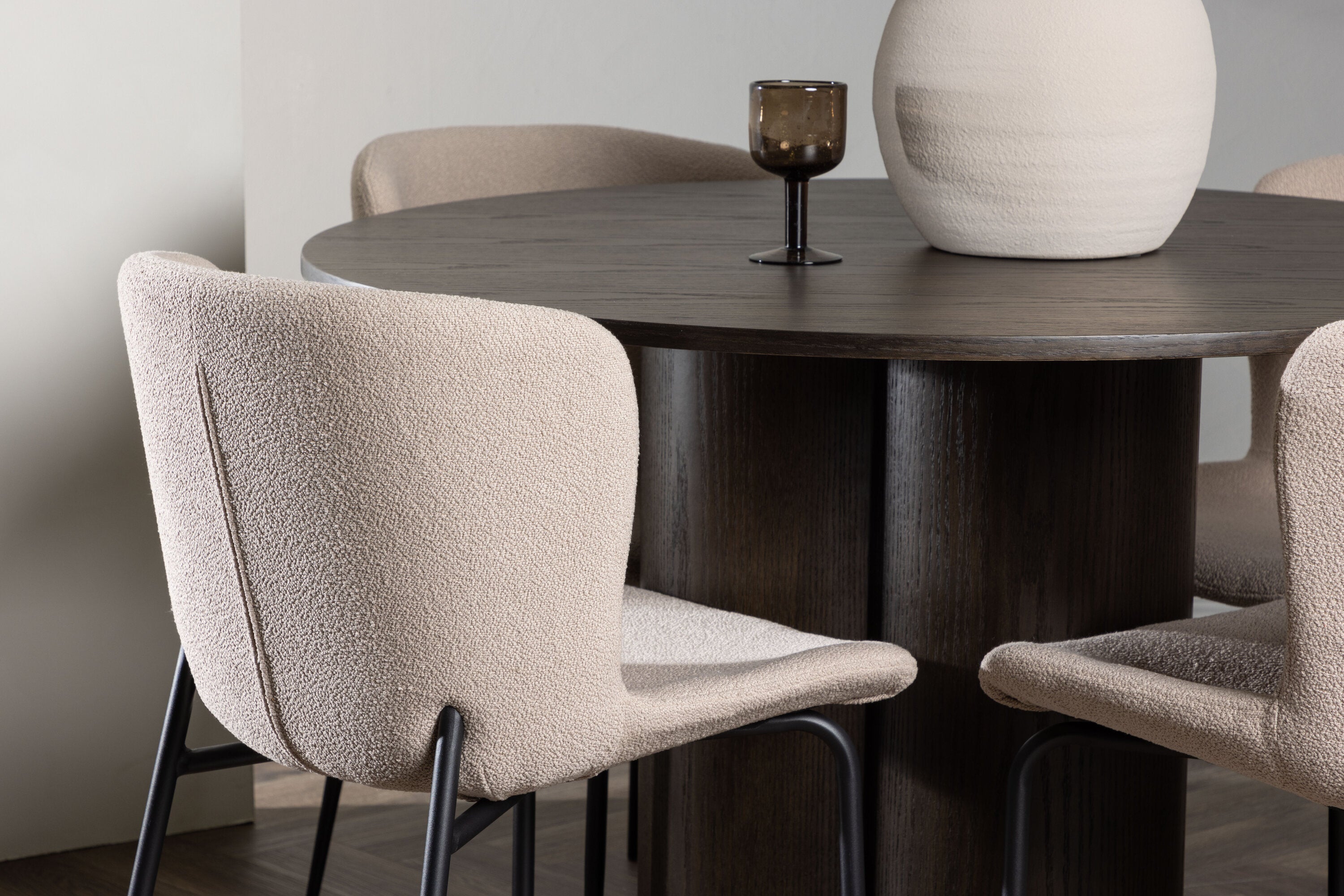 OliviaJídelní stůl-Mocca/MoccaVeneer+ModestoJídelní Židle-Šedá/SmokedBlackBoucle_4