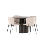Tady nikdo nekončí na hraně! Kulatý jídelní stůl Olivia má celkově skandinávský design v moderní mocca barvě. Stůl má tenkou desku z MDF a tři nohy ve tvaru válce, které jsou shromážděny pod středem stolu. Barva má světlý obal, díky kterému je viditelný vzor materiálu. Zde společně s módními jídelními židlemi ze série Modesto. Židle je celočalouněná béžovou chlupatou látkou se stylovými úzkými nohami v černém kovu. Mírně zaoblená záda a čalouněný sedák poskytují extra pohodlí a rozšiřují příjemné jídlo kolem jídelního stolu. Luxusní, stylové a pohodlné! Rozměry stolu: 110 cm.