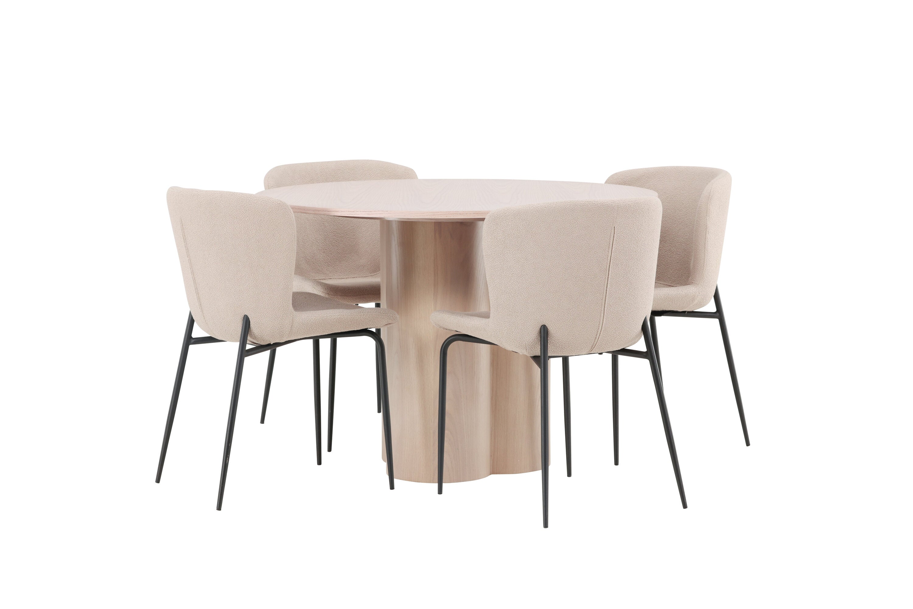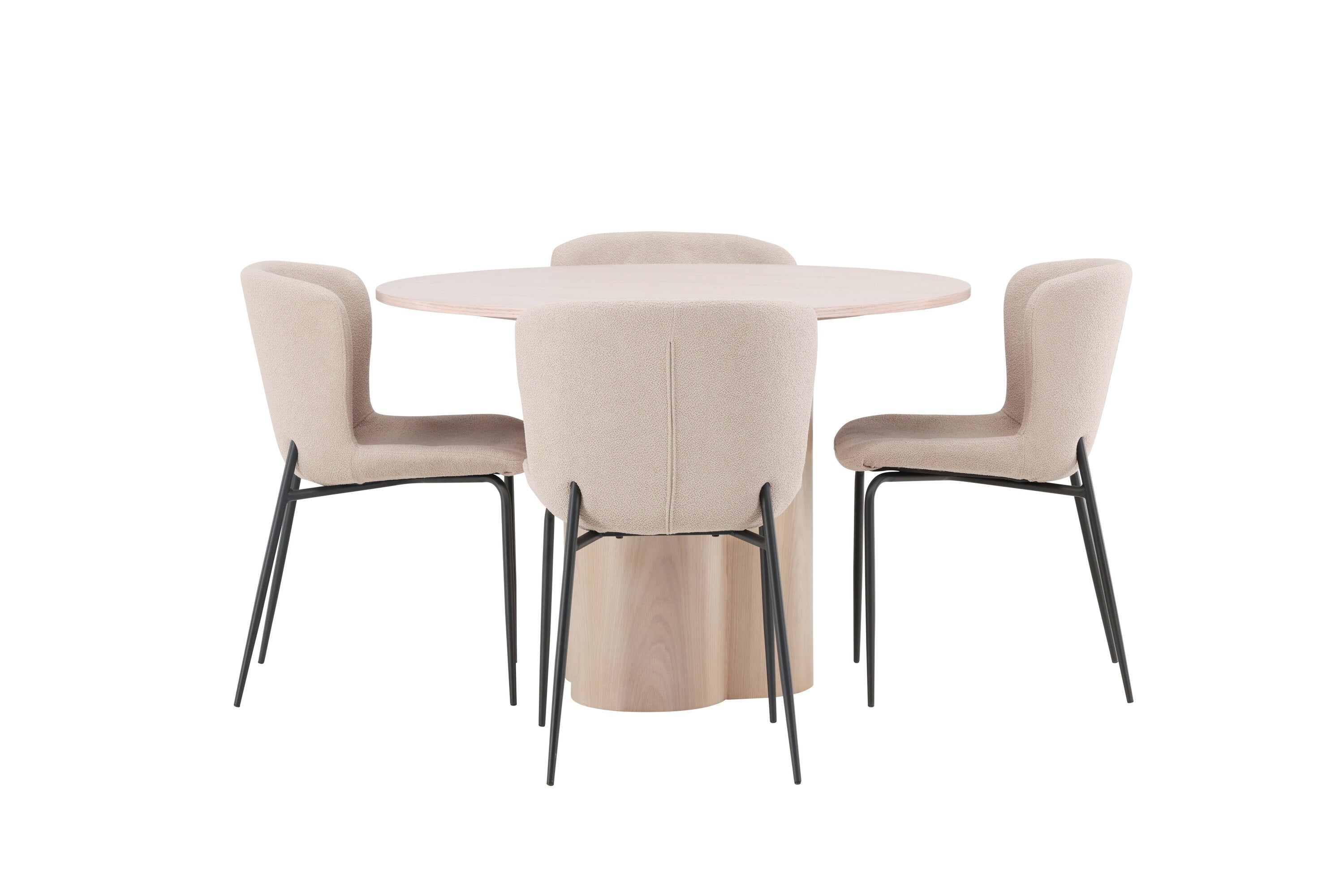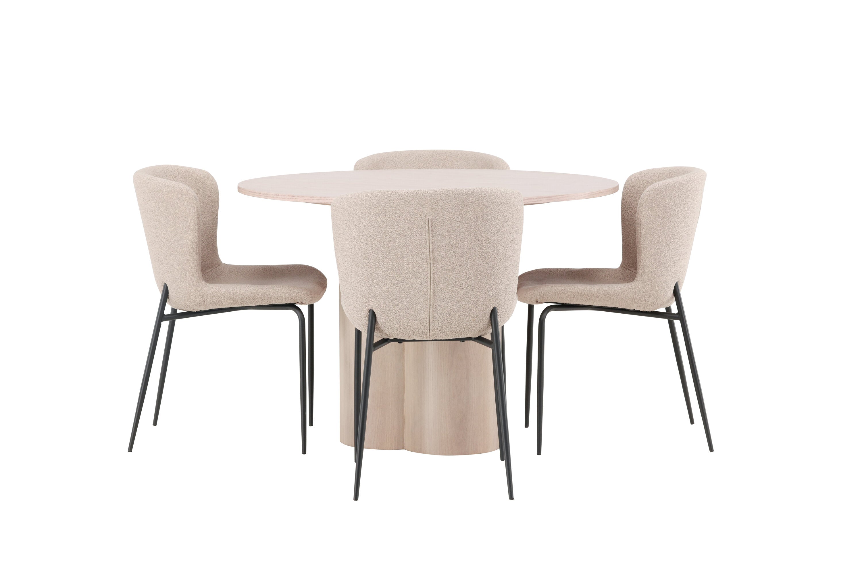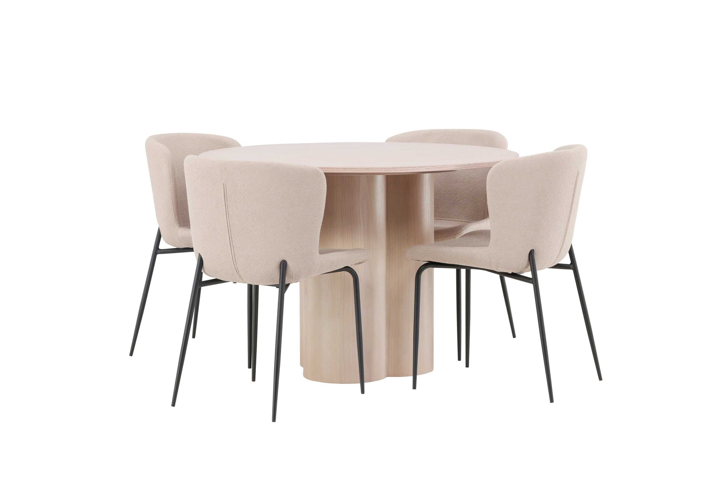 OliviaJídelní Stůl-WhiteWashDýha+ModestoJídelní židle-Béžová/BéžováBoucle_4