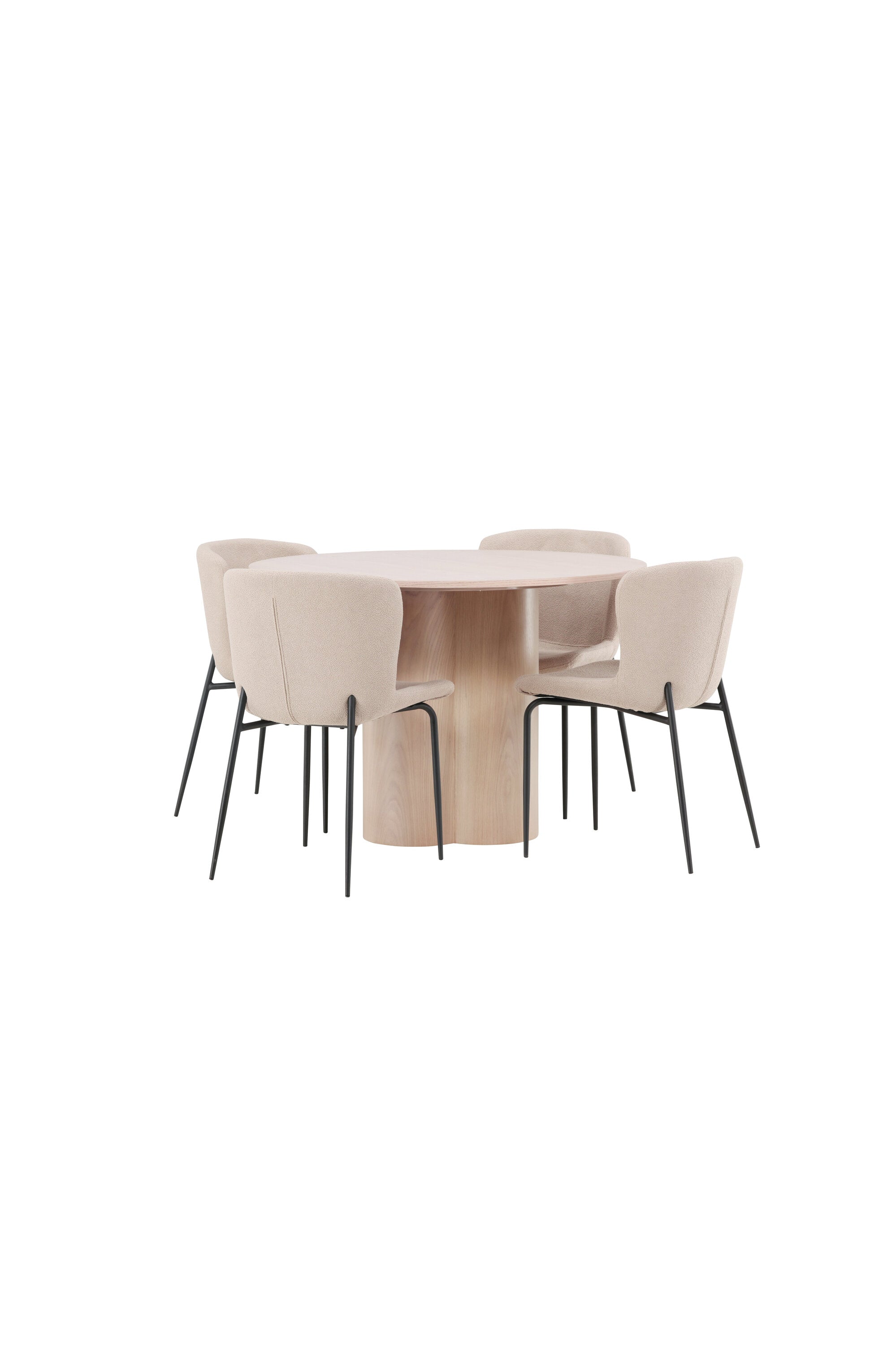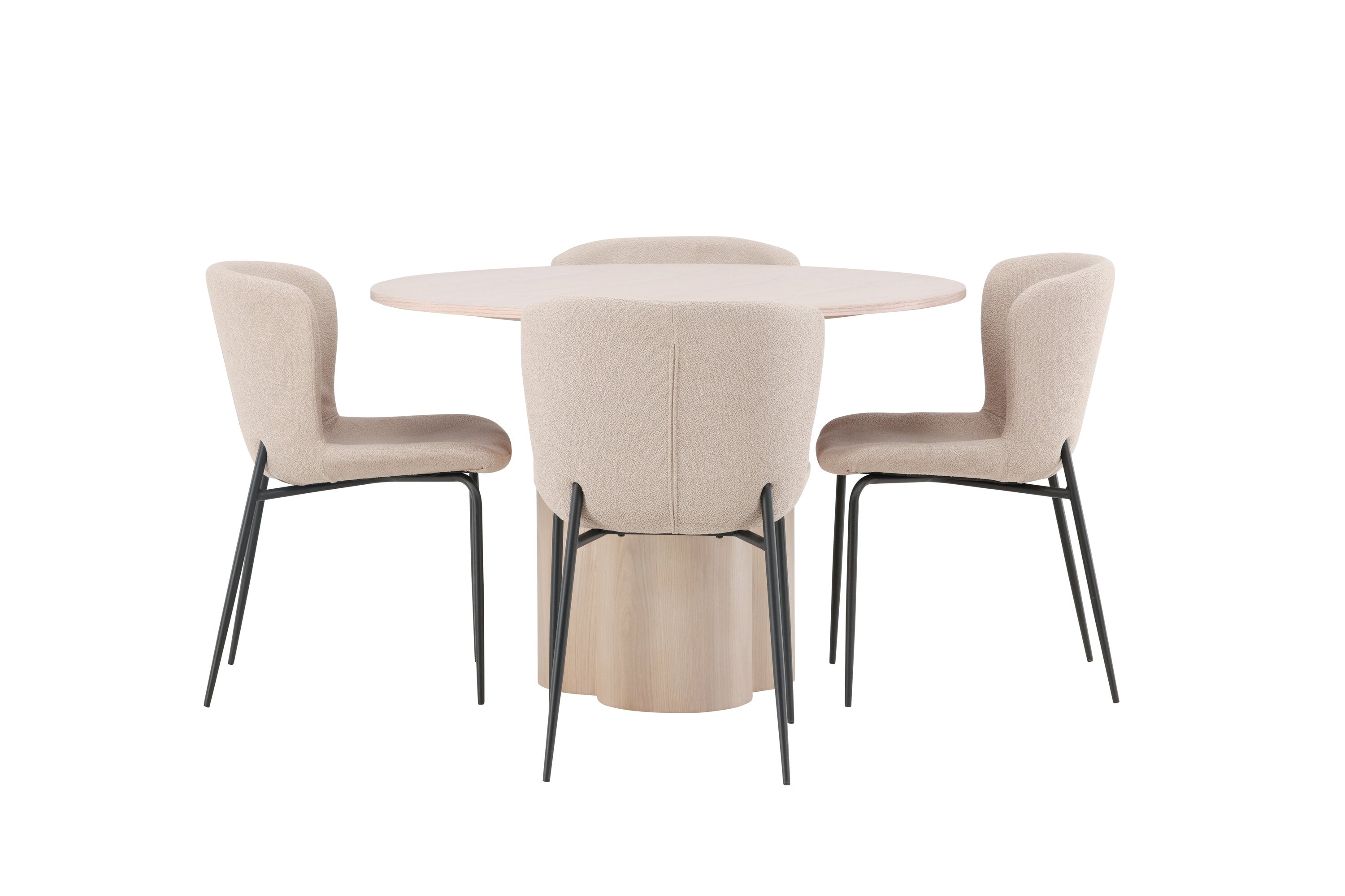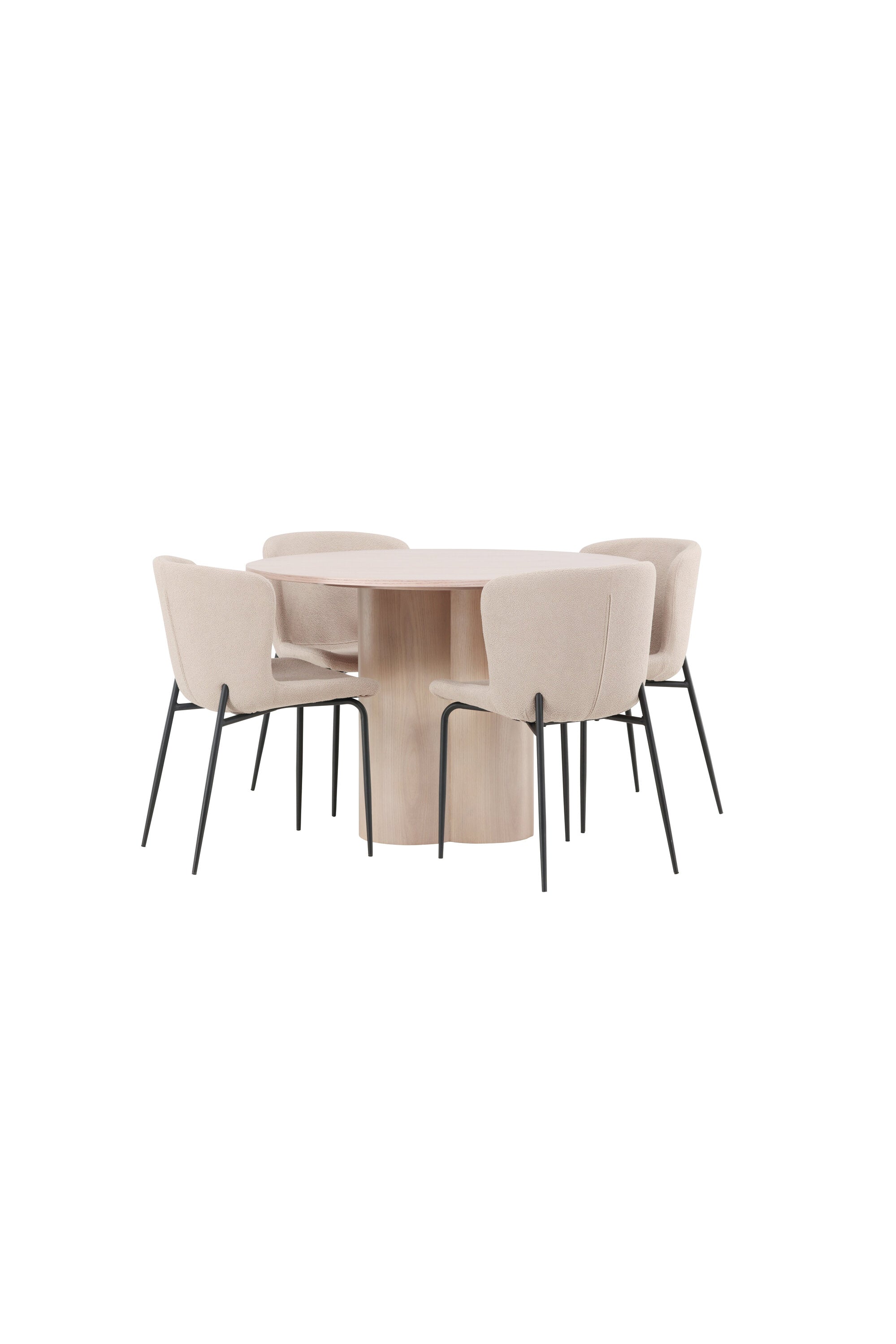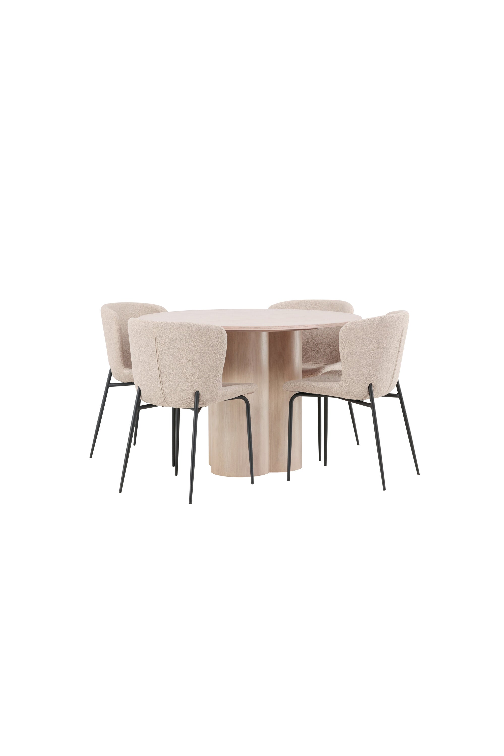 OliviaJídelní Stůl-WhiteWashDýha+ModestoJídelní židle-Béžová/BéžováBoucle_4