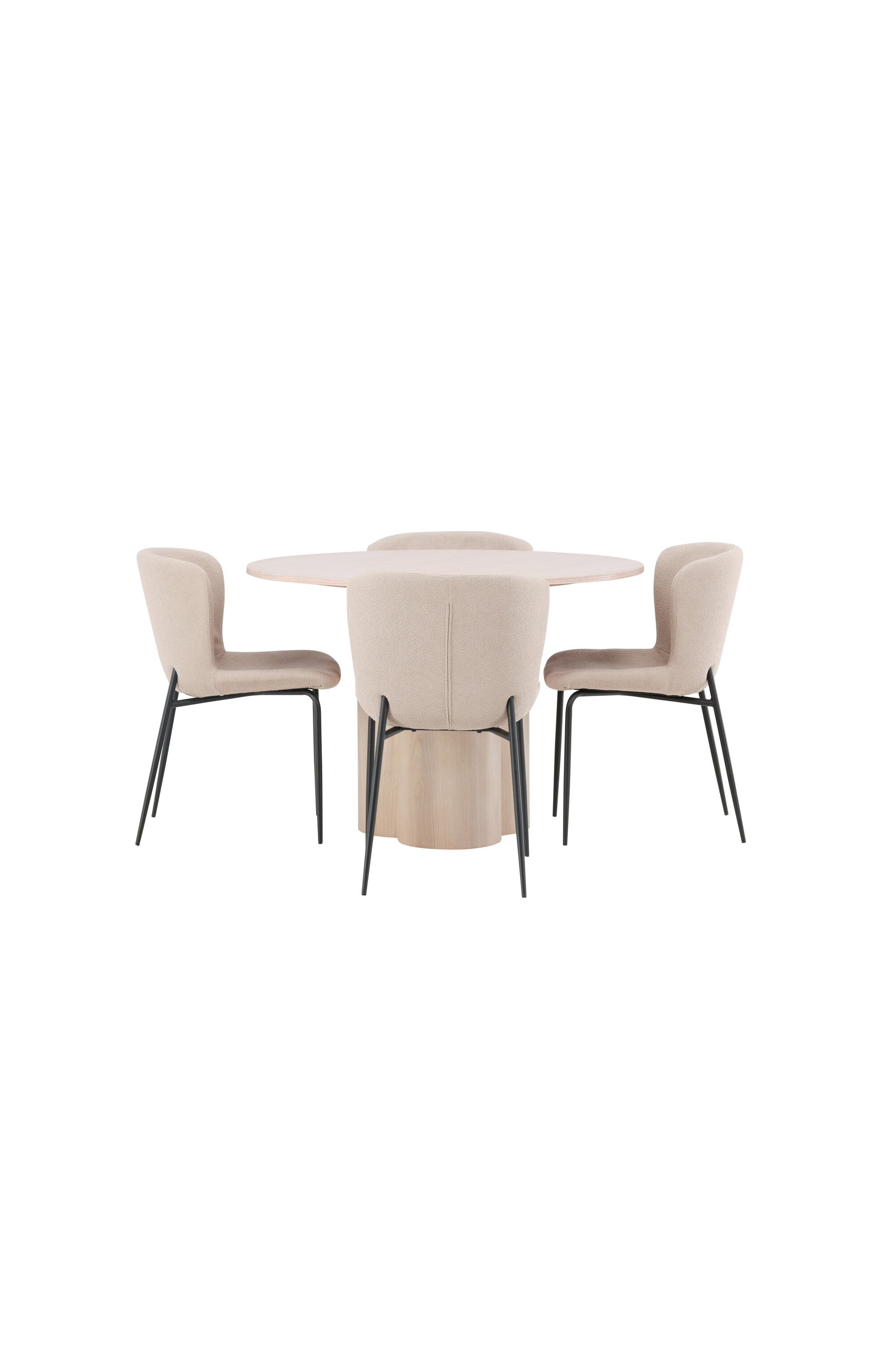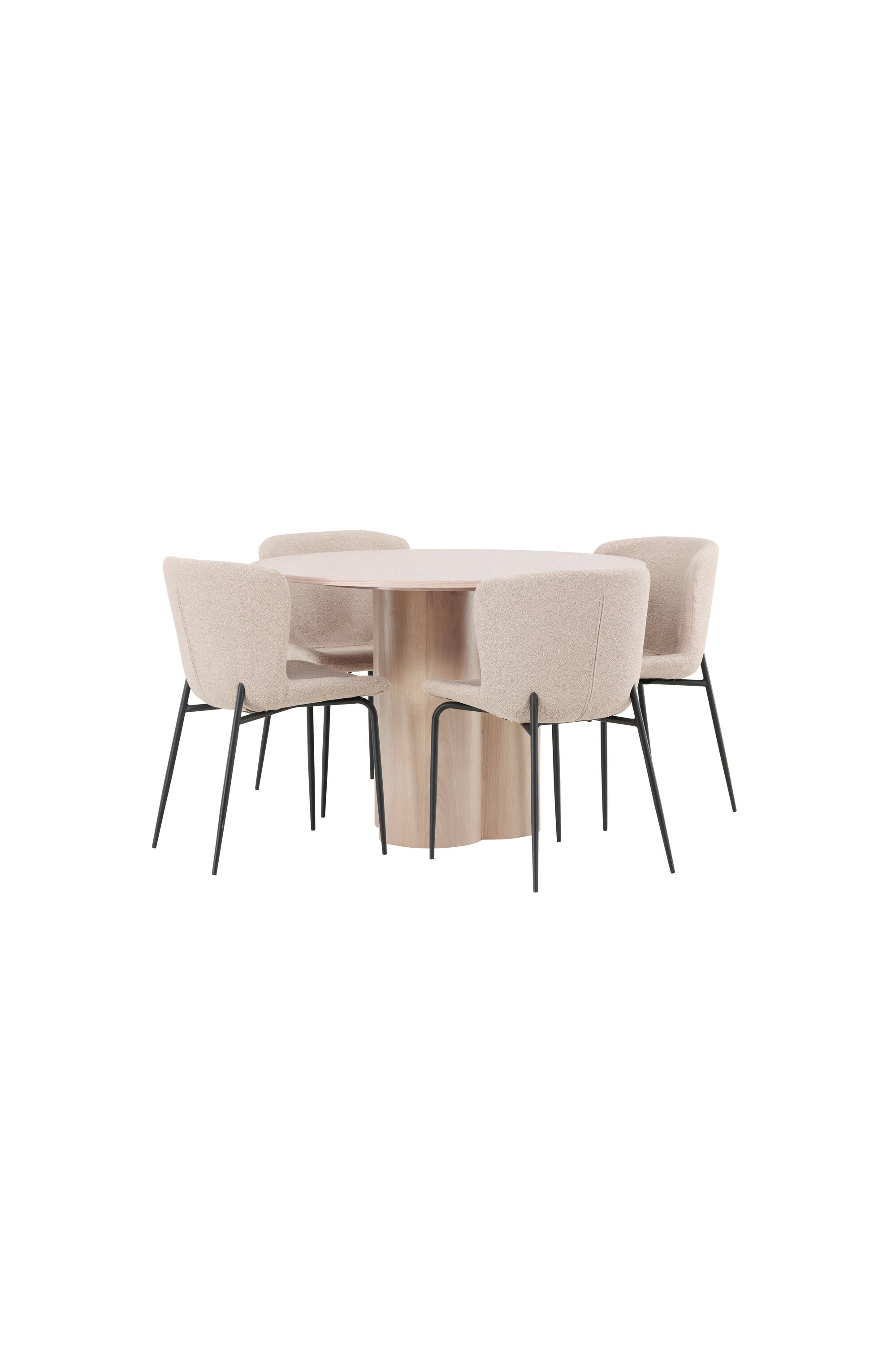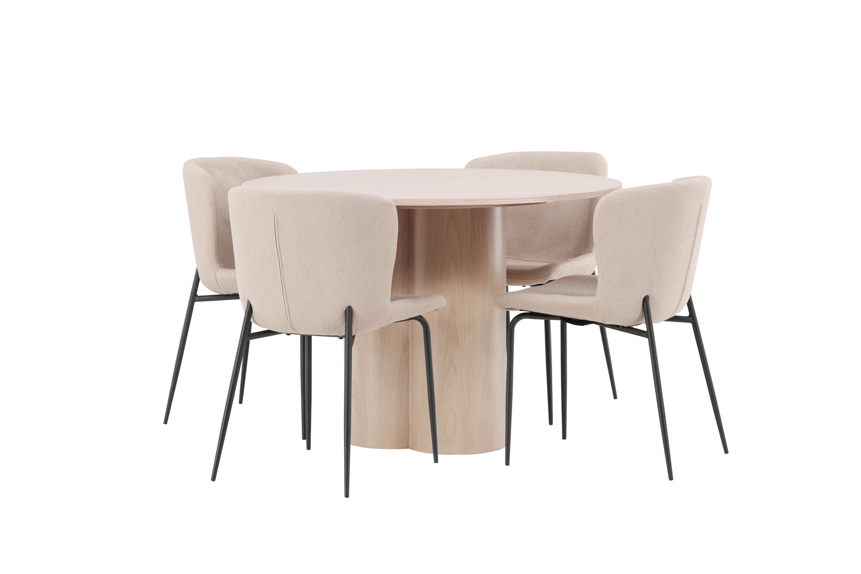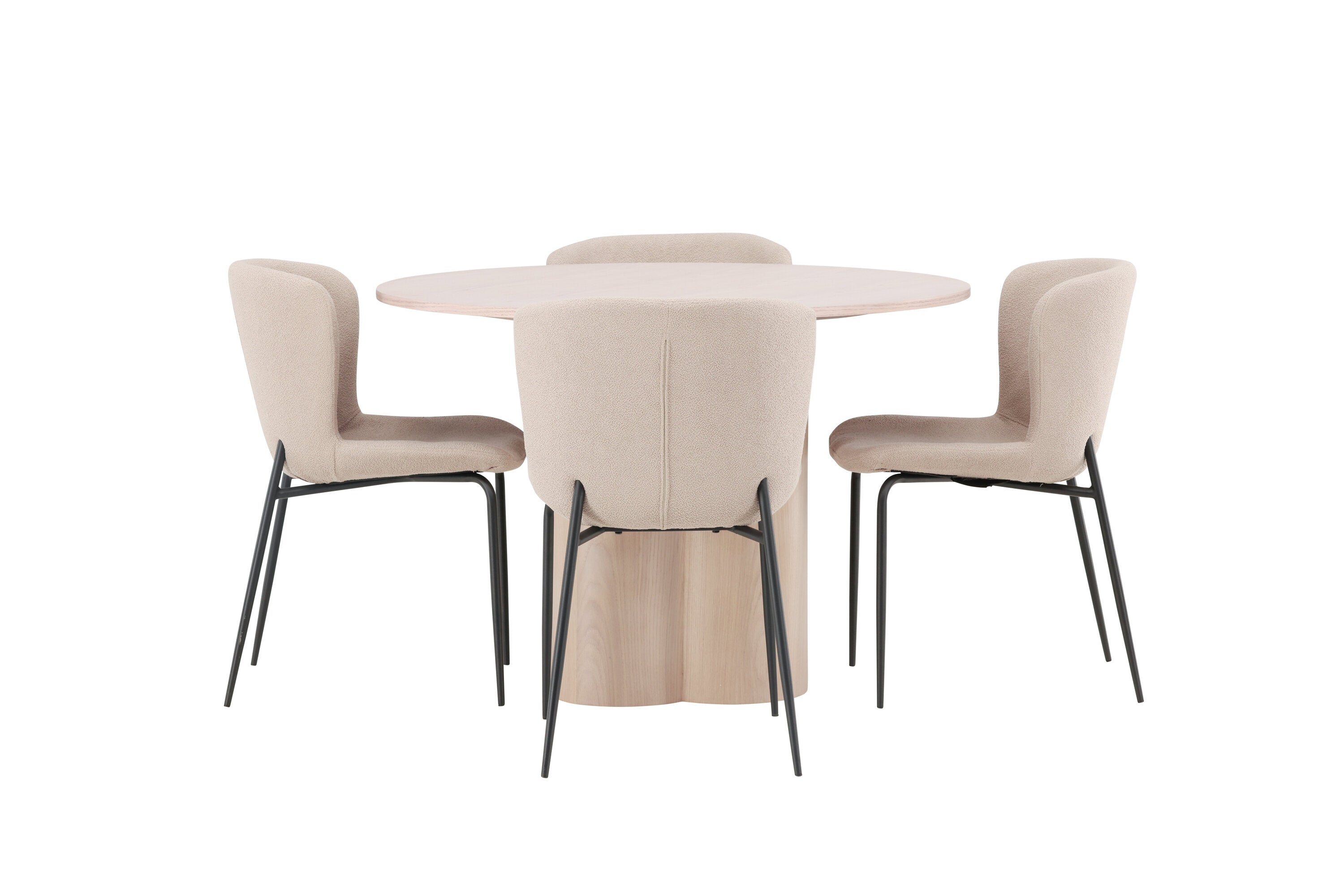 OliviaJídelní Stůl-WhiteWashDýha+ModestoJídelní židle-Béžová/BéžováBoucle_4