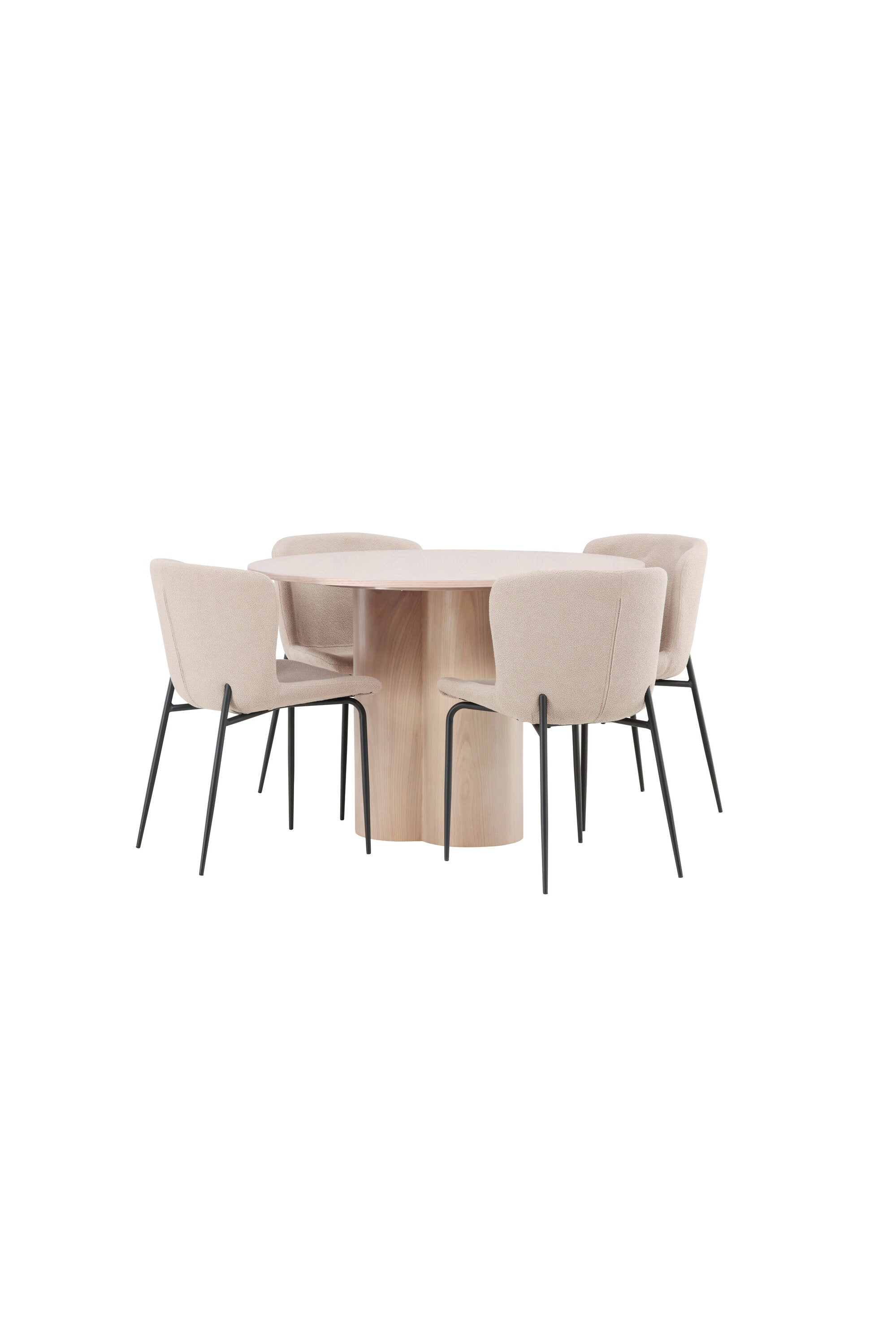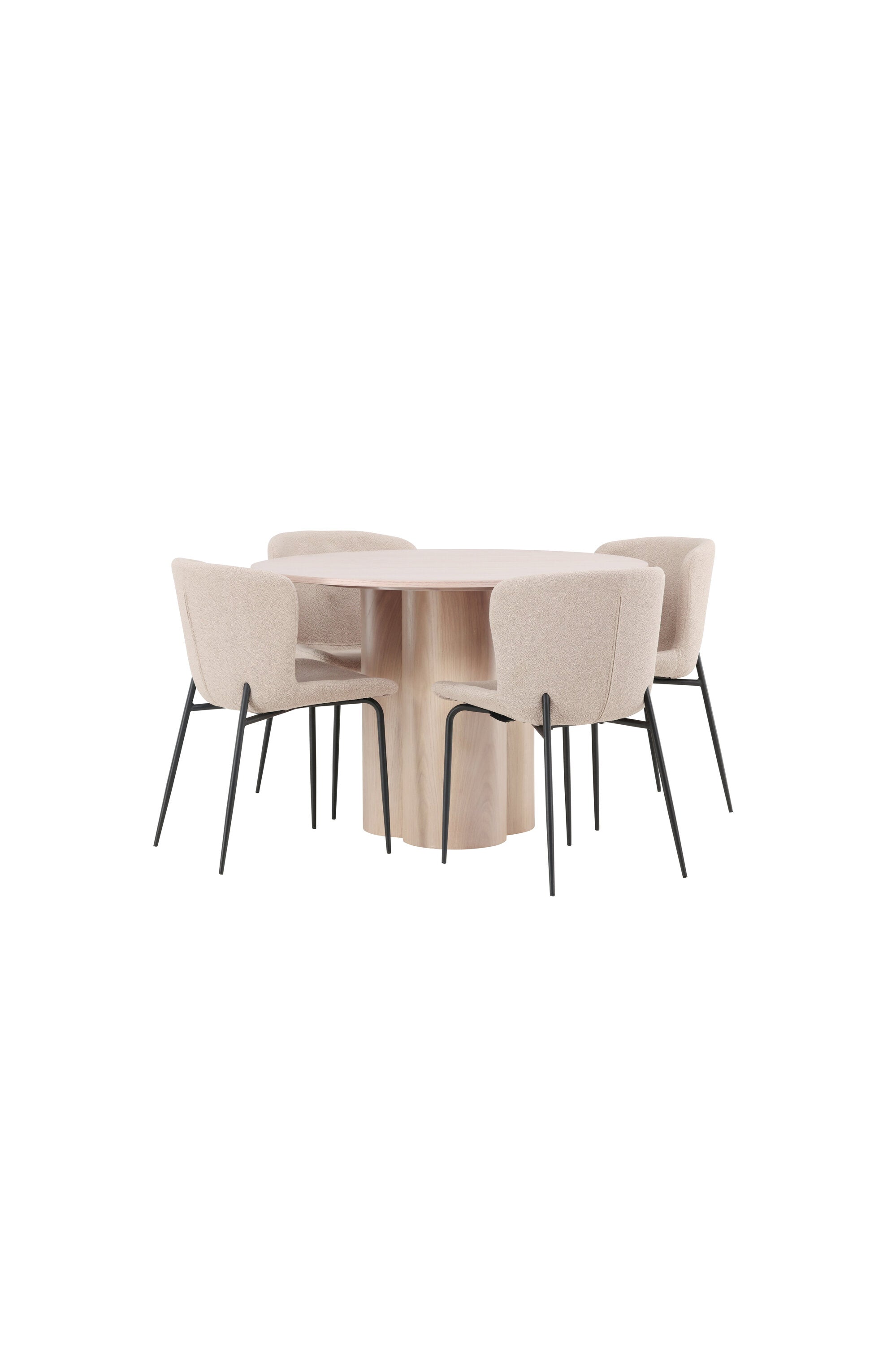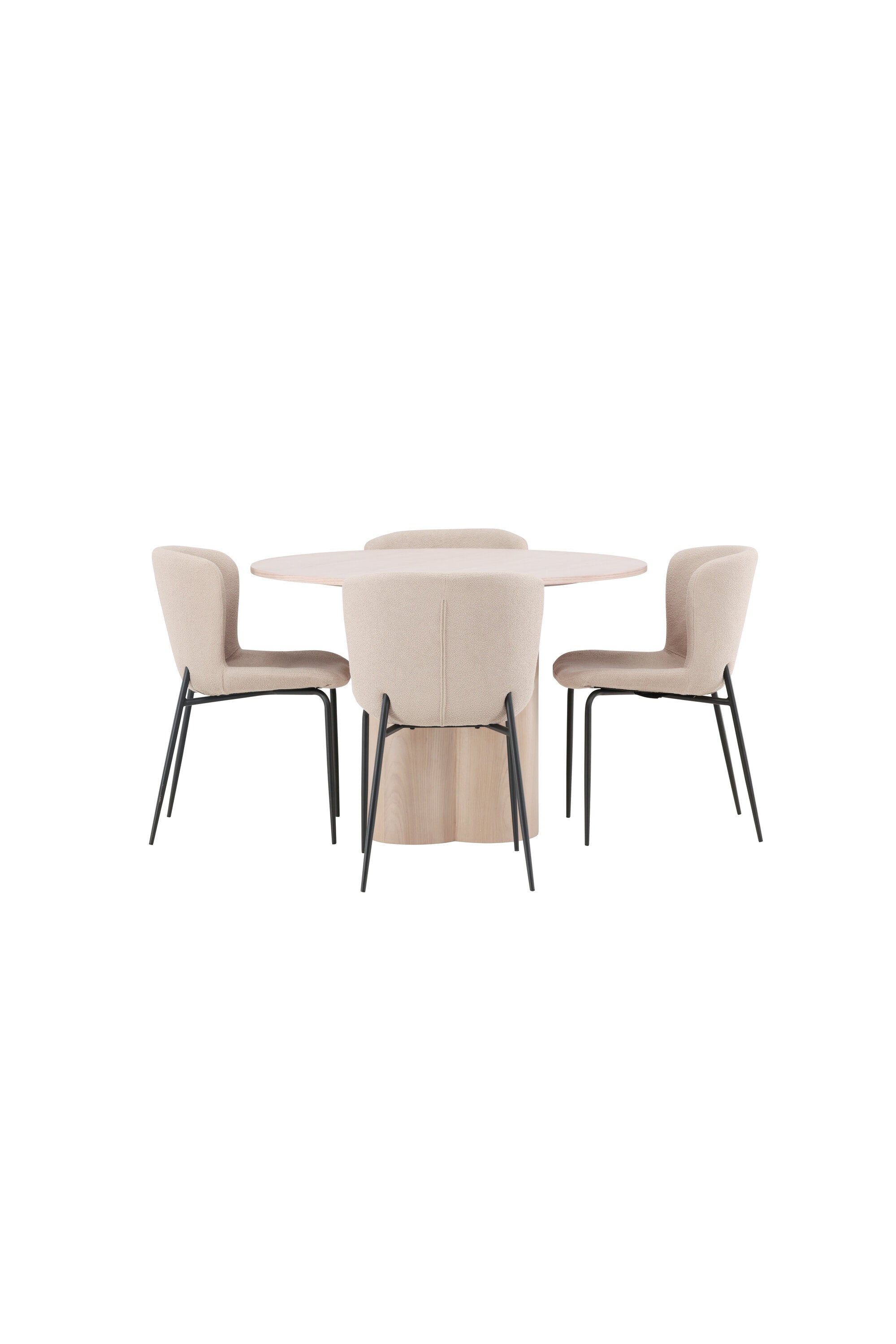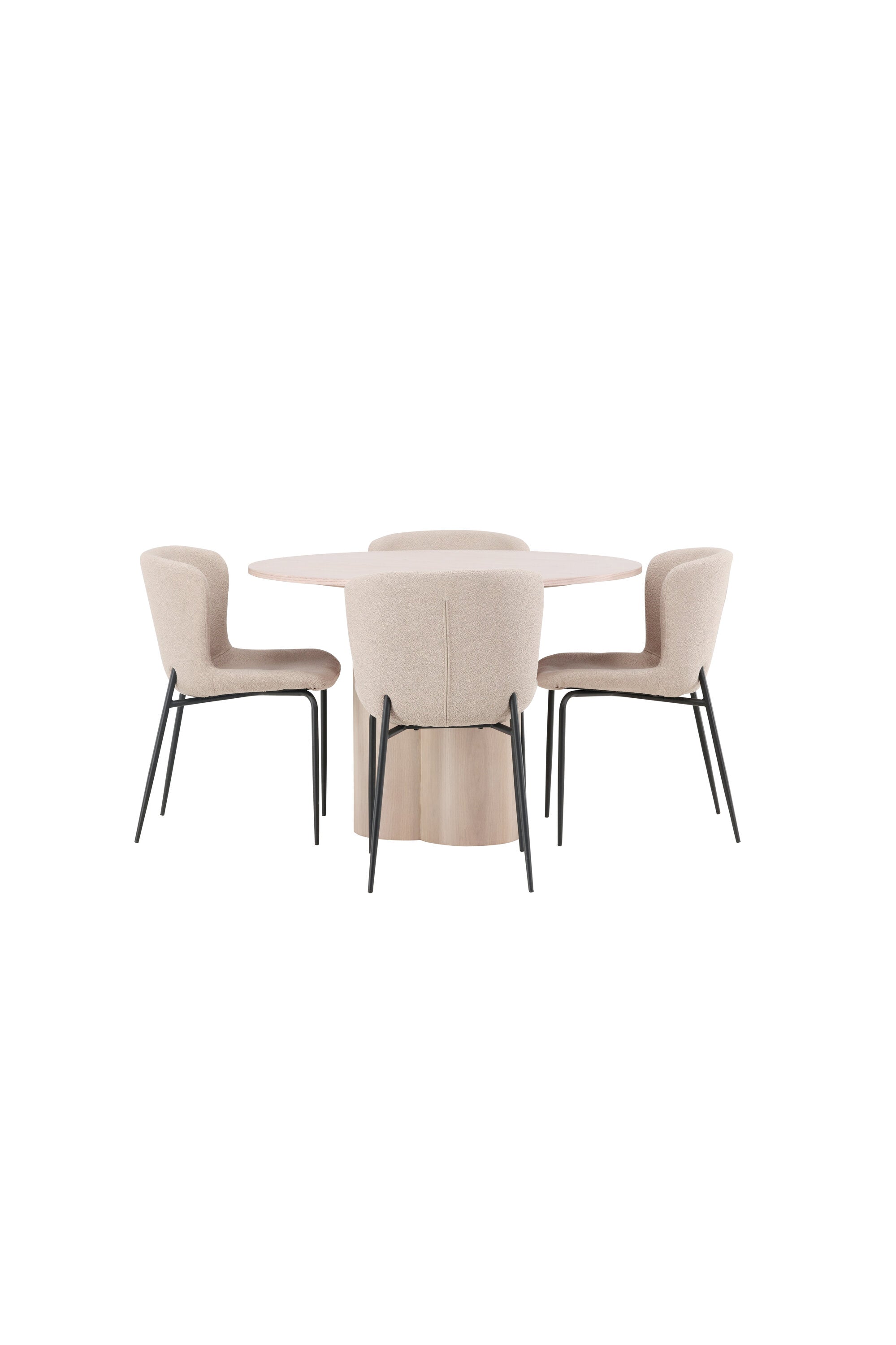 OliviaJídelní Stůl-WhiteWashDýha+ModestoJídelní židle-Béžová/BéžováBoucle_4