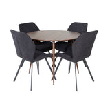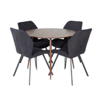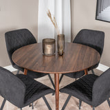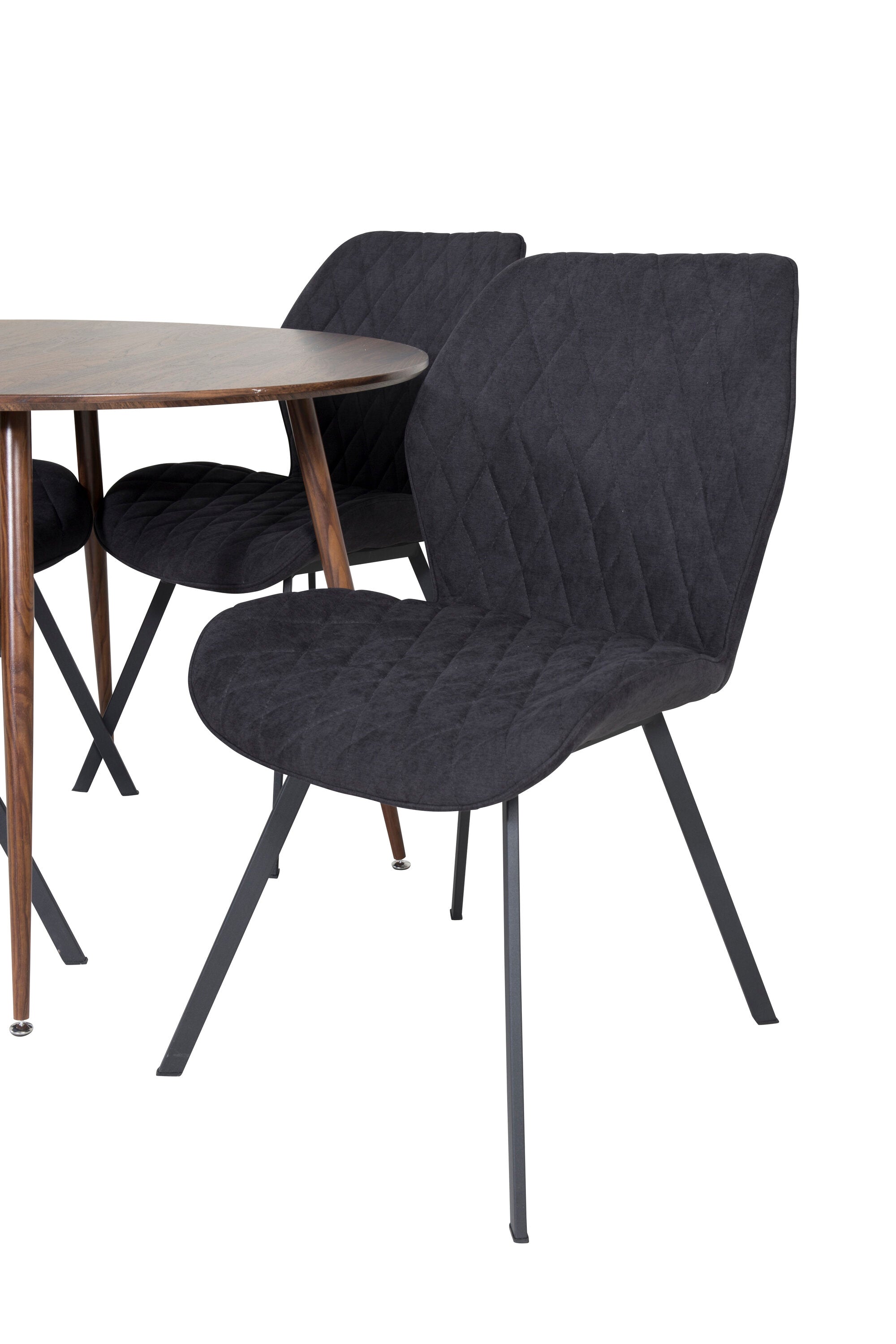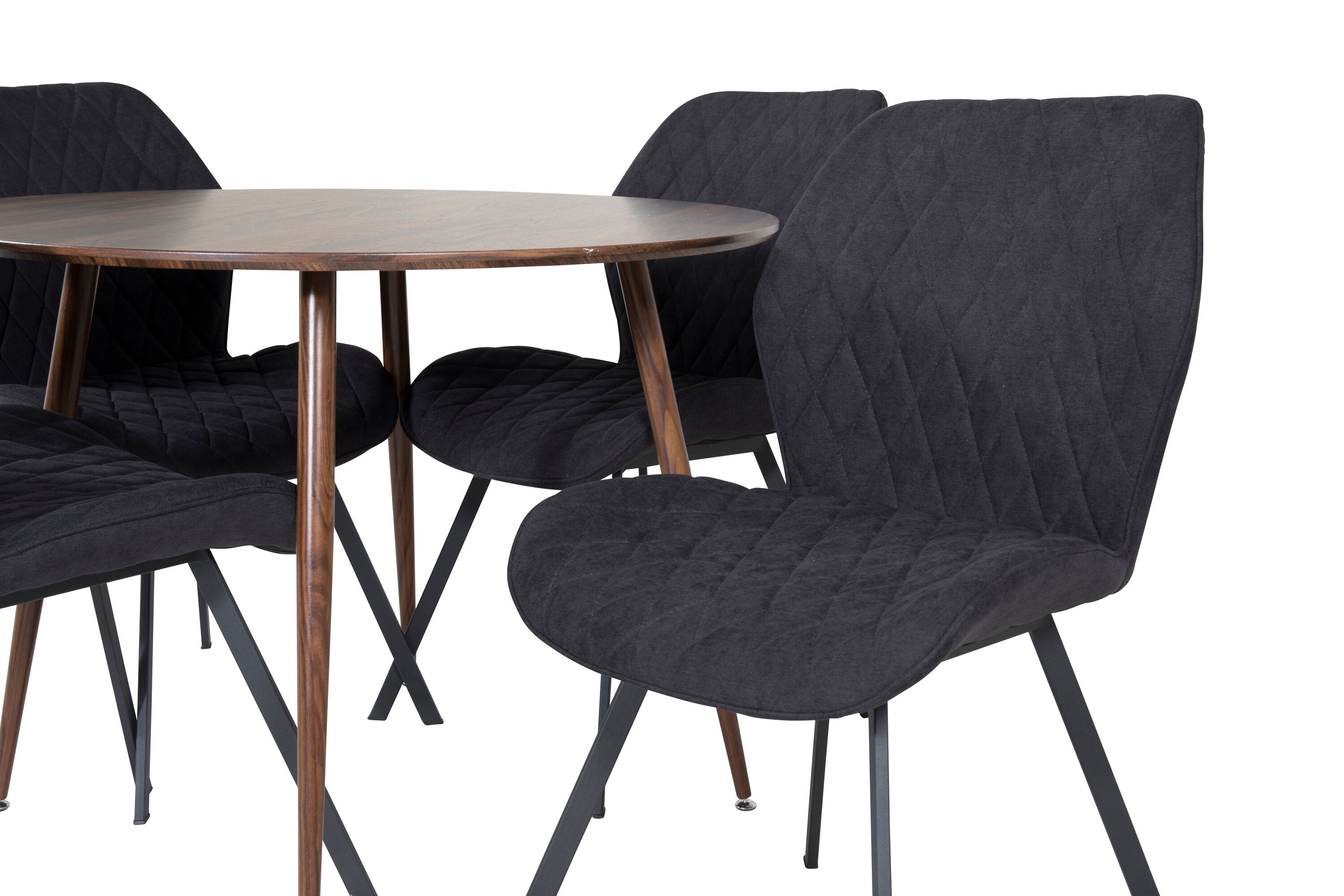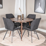 Plaza Kulatý stůl 100 cm - Ořechová deska - Ořechové nohy+Jídelní židle Gemma - Černé nohy - Černá Fabric_4