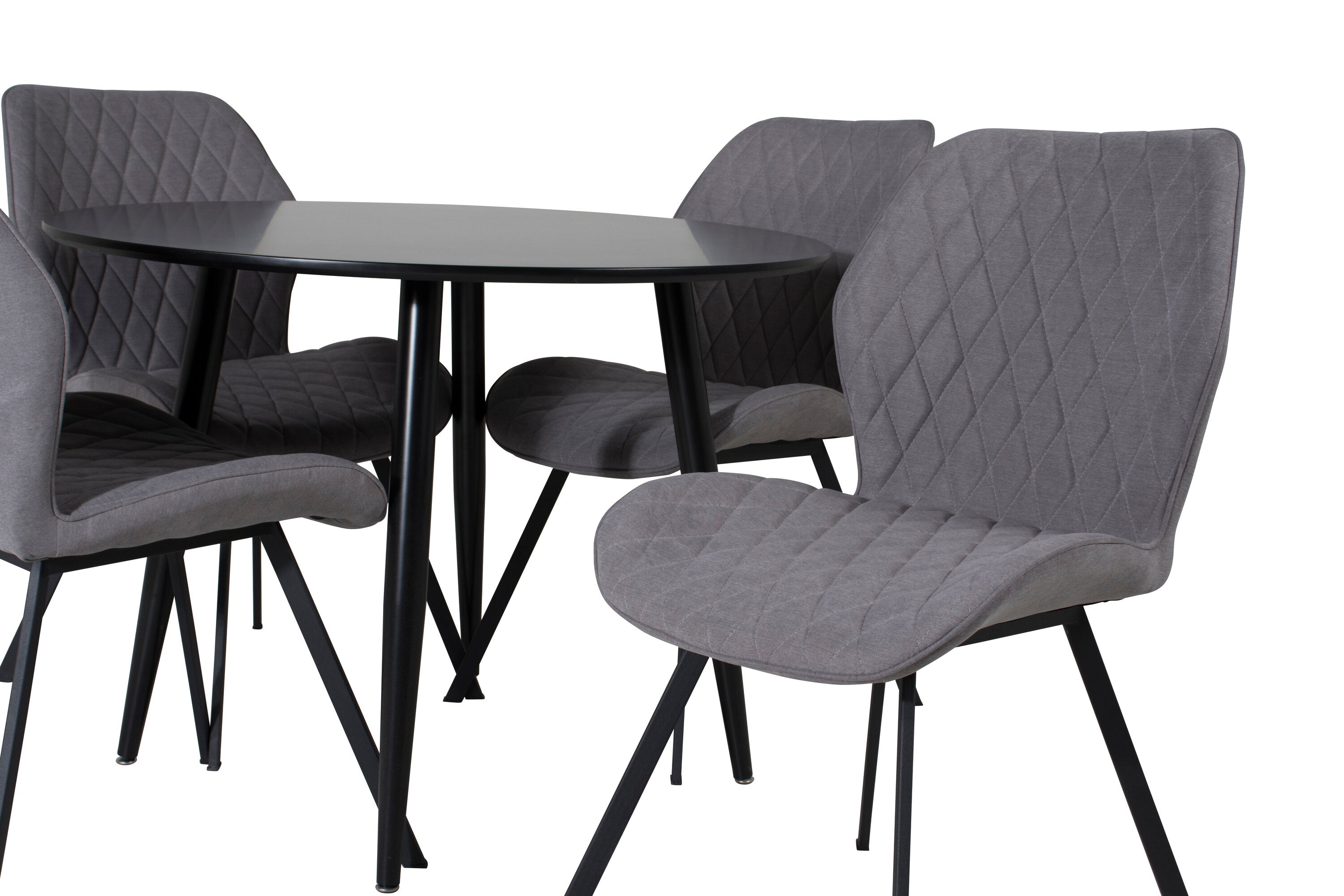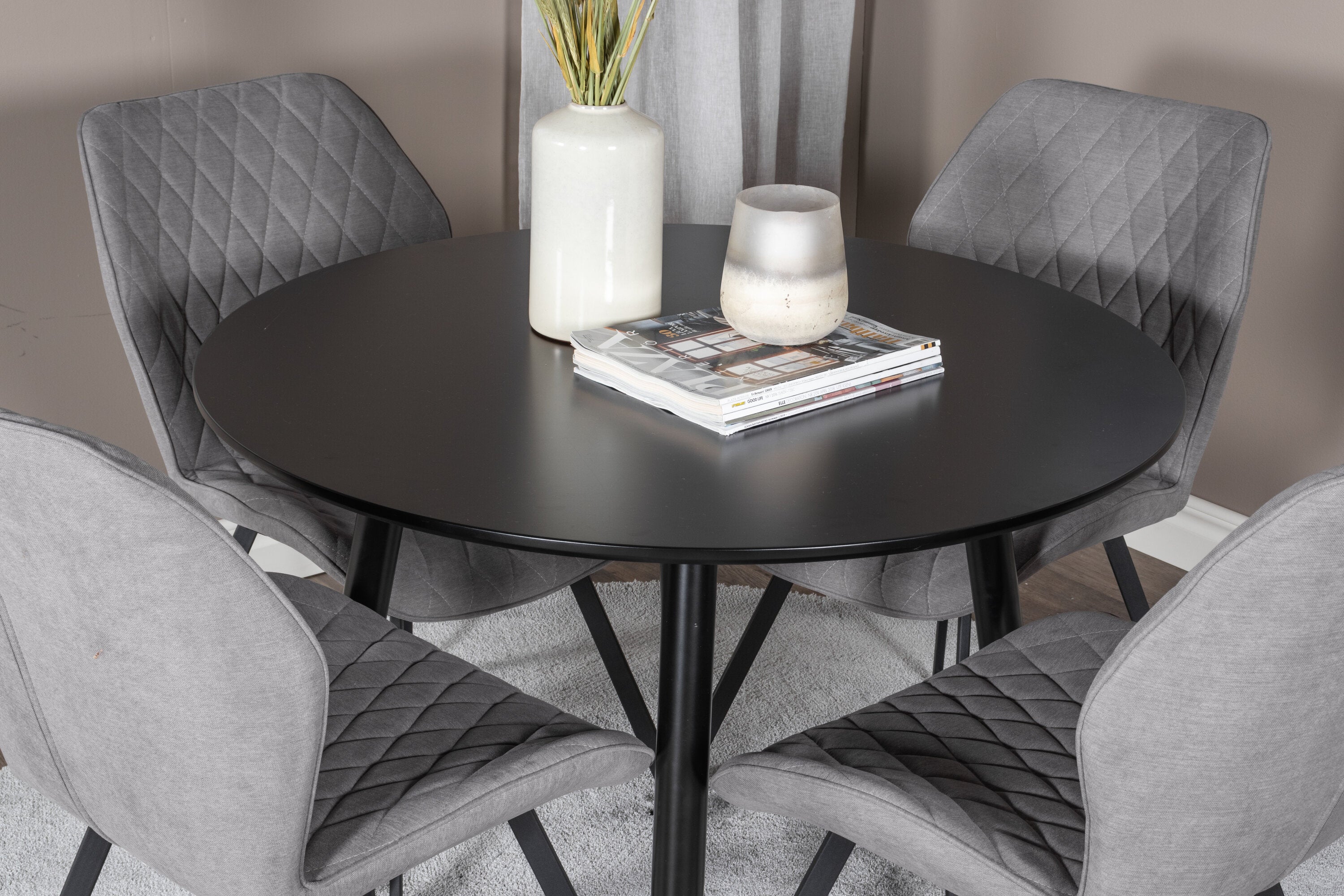 Plaza Runt Matbord - Svart / Svart - ø100*H75 +Jídelní židle Gemma - Černé nohy - Šedá látka _4