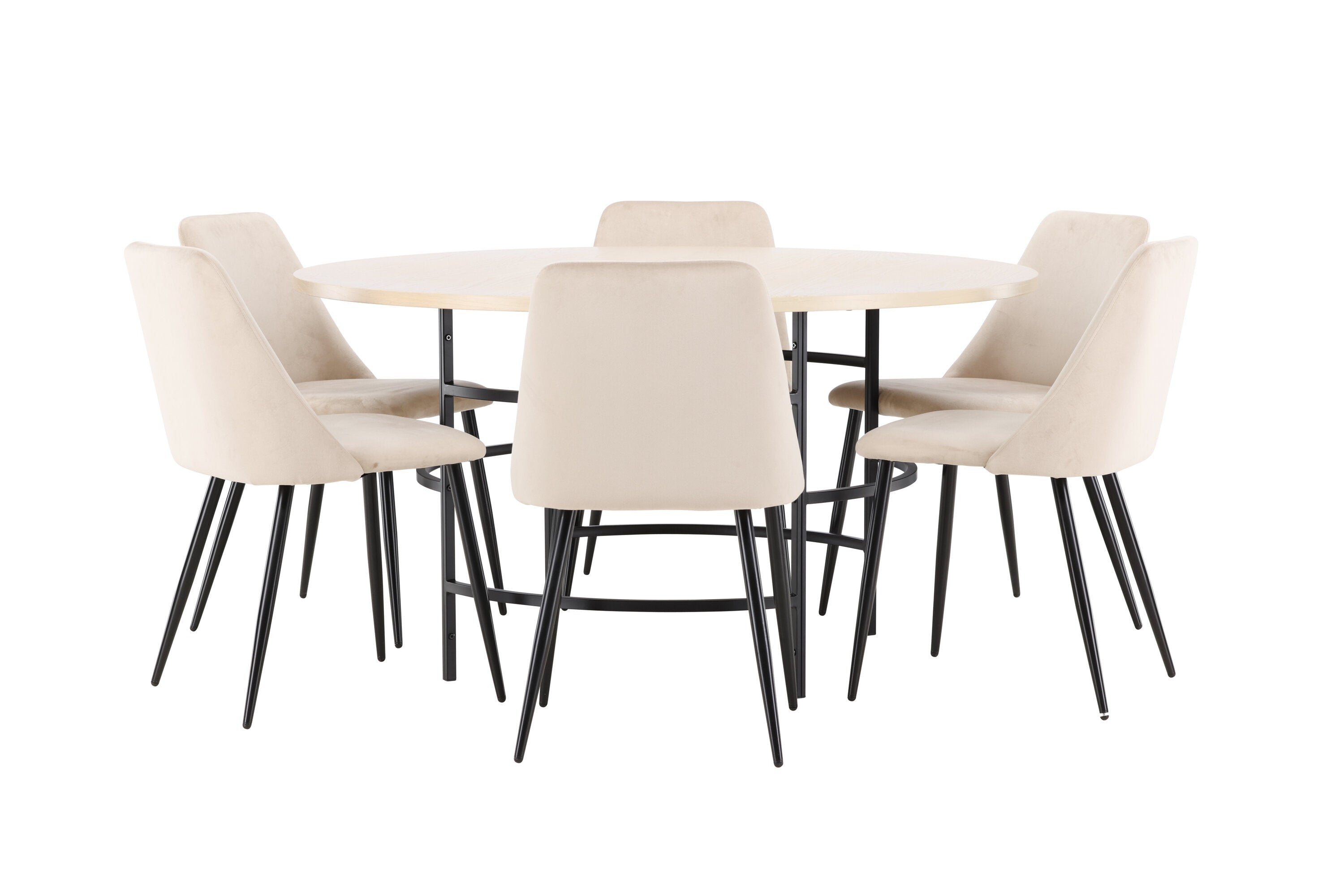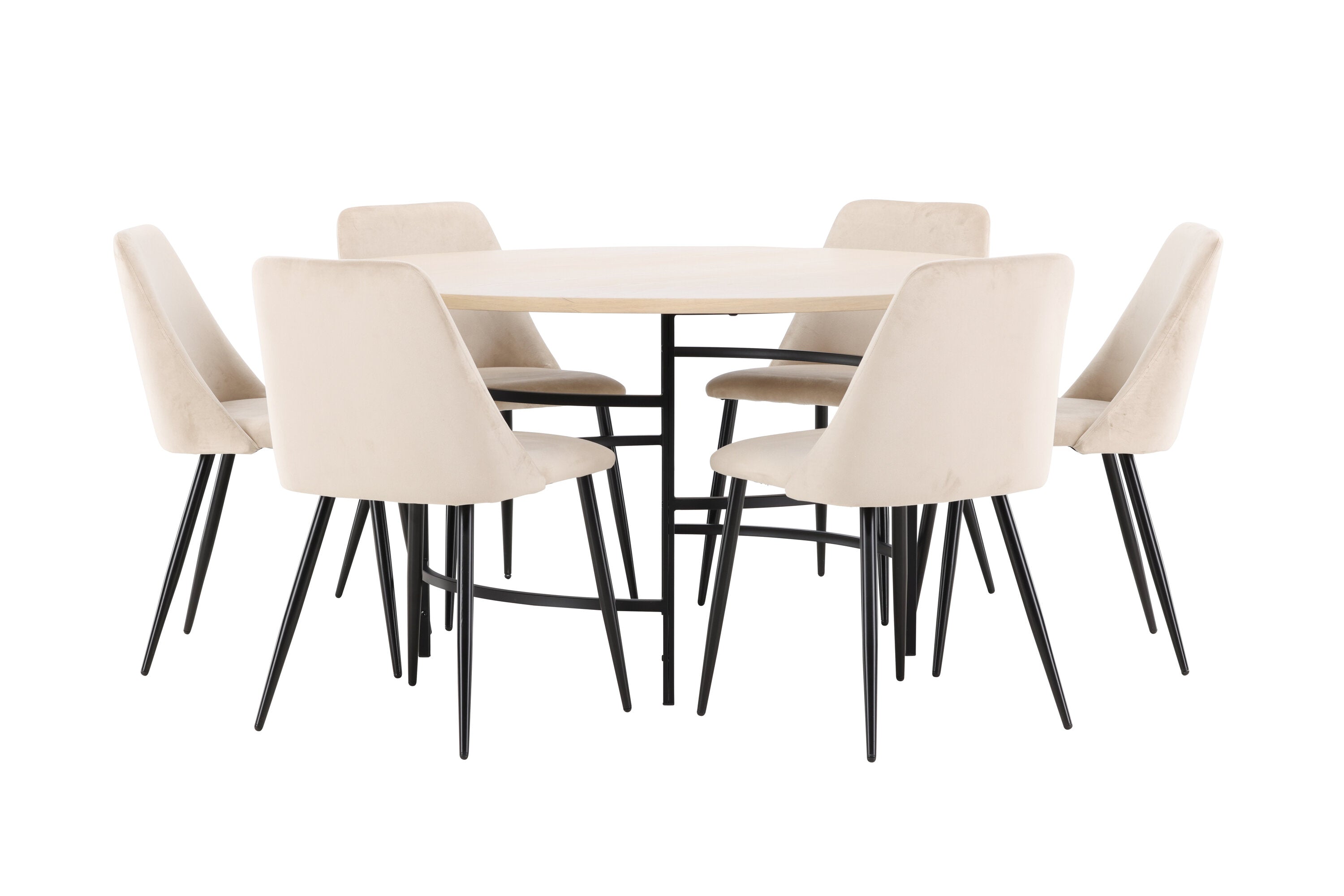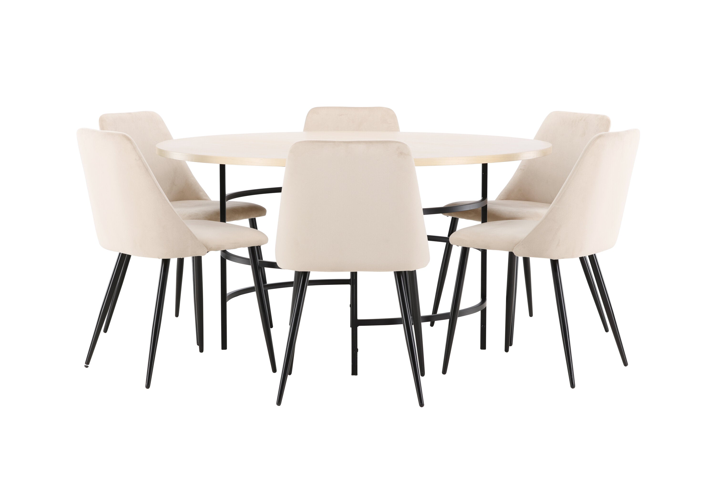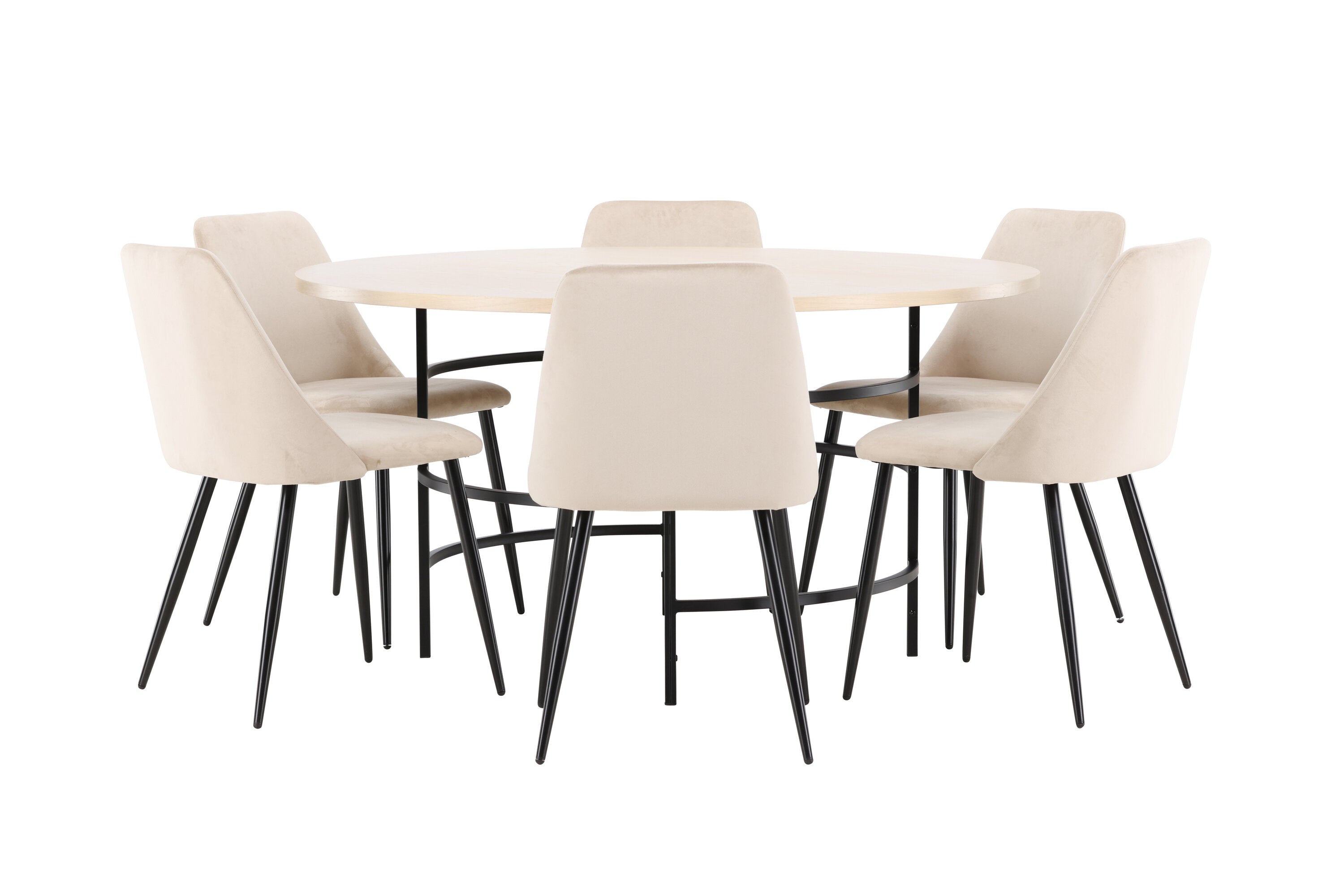 Stůl Copenhagen - Whitewash/Black s 6 noční židlí - Black / Béžová