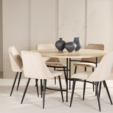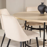 Ke stolu je doplněna jídelní židle Night, elegantní kousek čalouněný jemným béžovým sametem. Neutrální béžový tón dodává nádech sofistikované elegance a hladce zapadne do jakéhokoli stylu interiéru, od moderního minimalismu po klasický šarm. Černé nohy poskytují výrazný kontrast se světlým sametem a vytvářejí stylový a rafinovaný profil. Židle je nejen vizuálně přitažlivá, ale je také ergonomicky navržena tak, aby poskytovala vynikající podporu a pohodlí během dlouhých večeří.