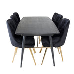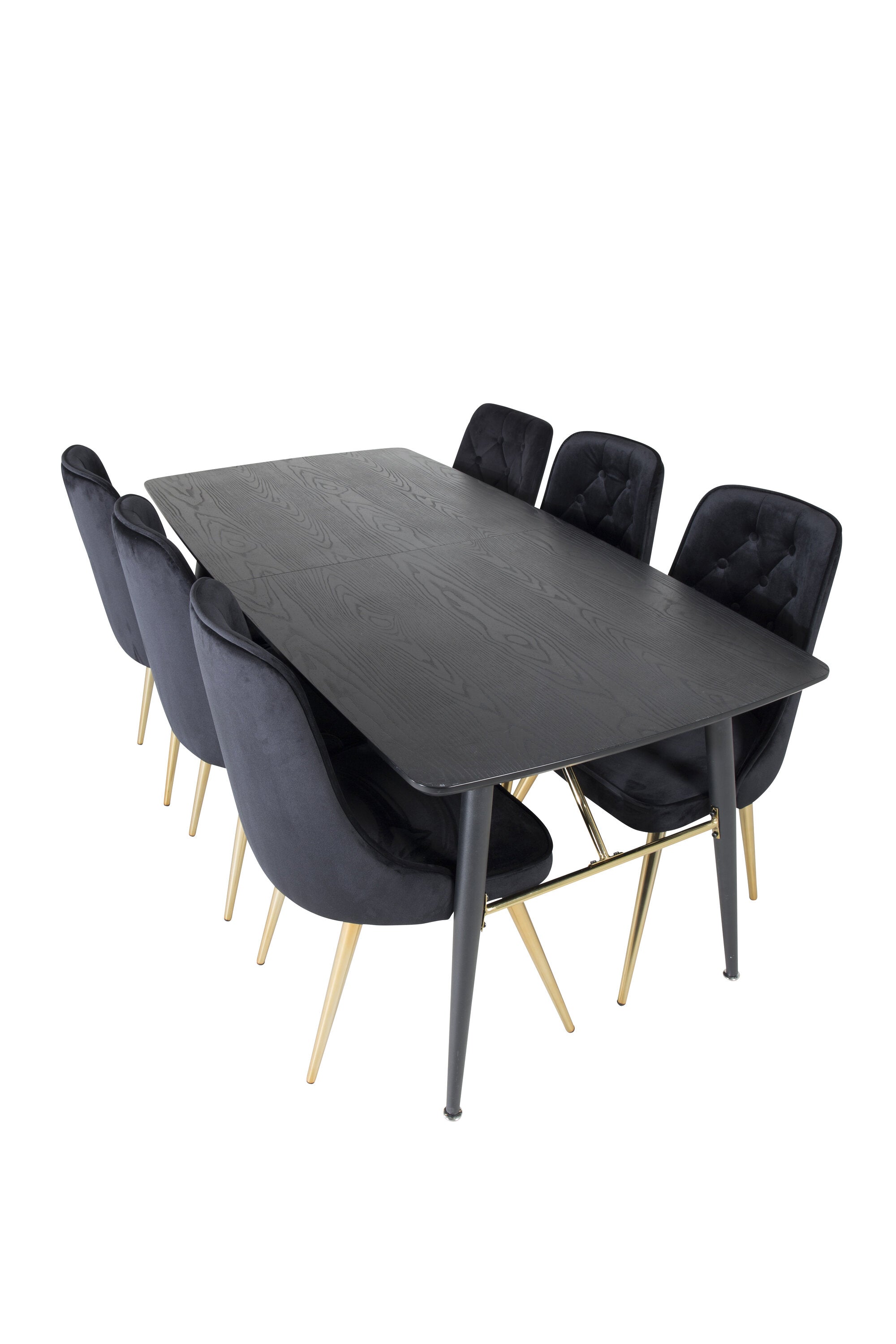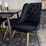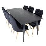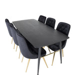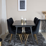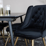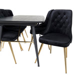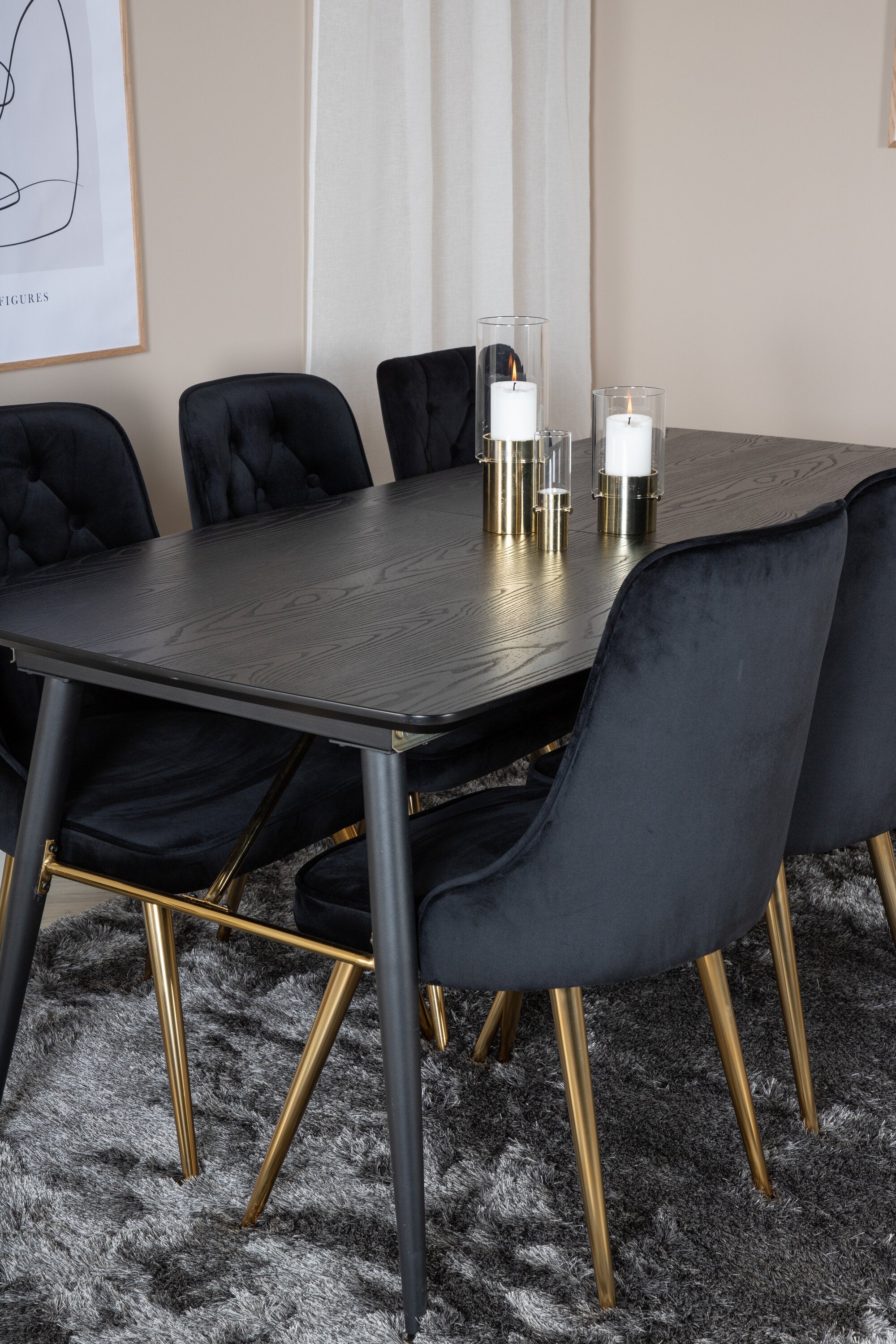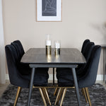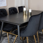 Zlatý rozkládací stůl - 180/220*85*H76 Černá dýha - Černé nohy - Mosazné detaily+Velvet Deluxe Jídelní židle - Černá / Brass_6