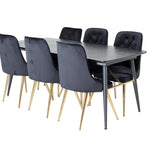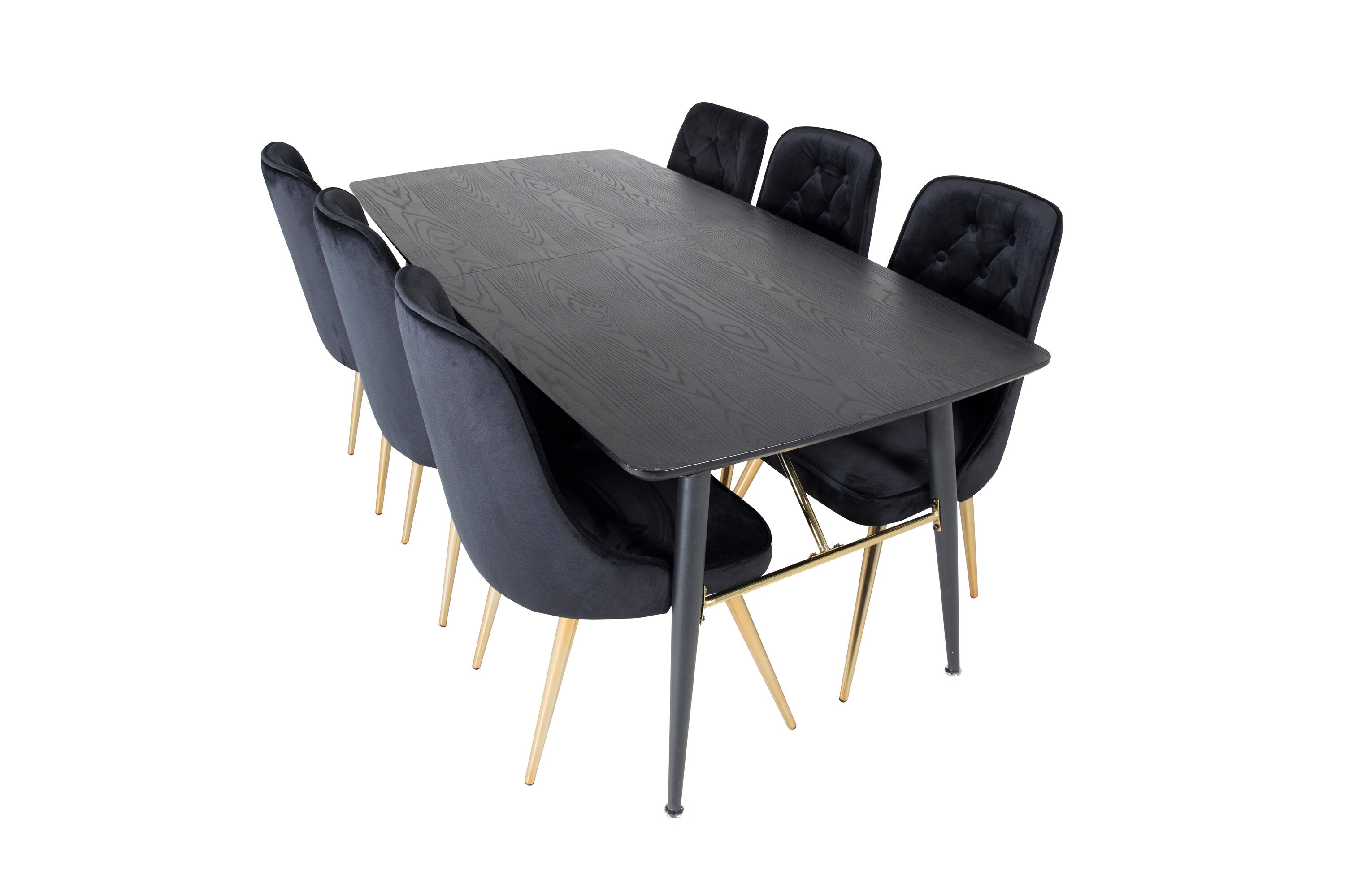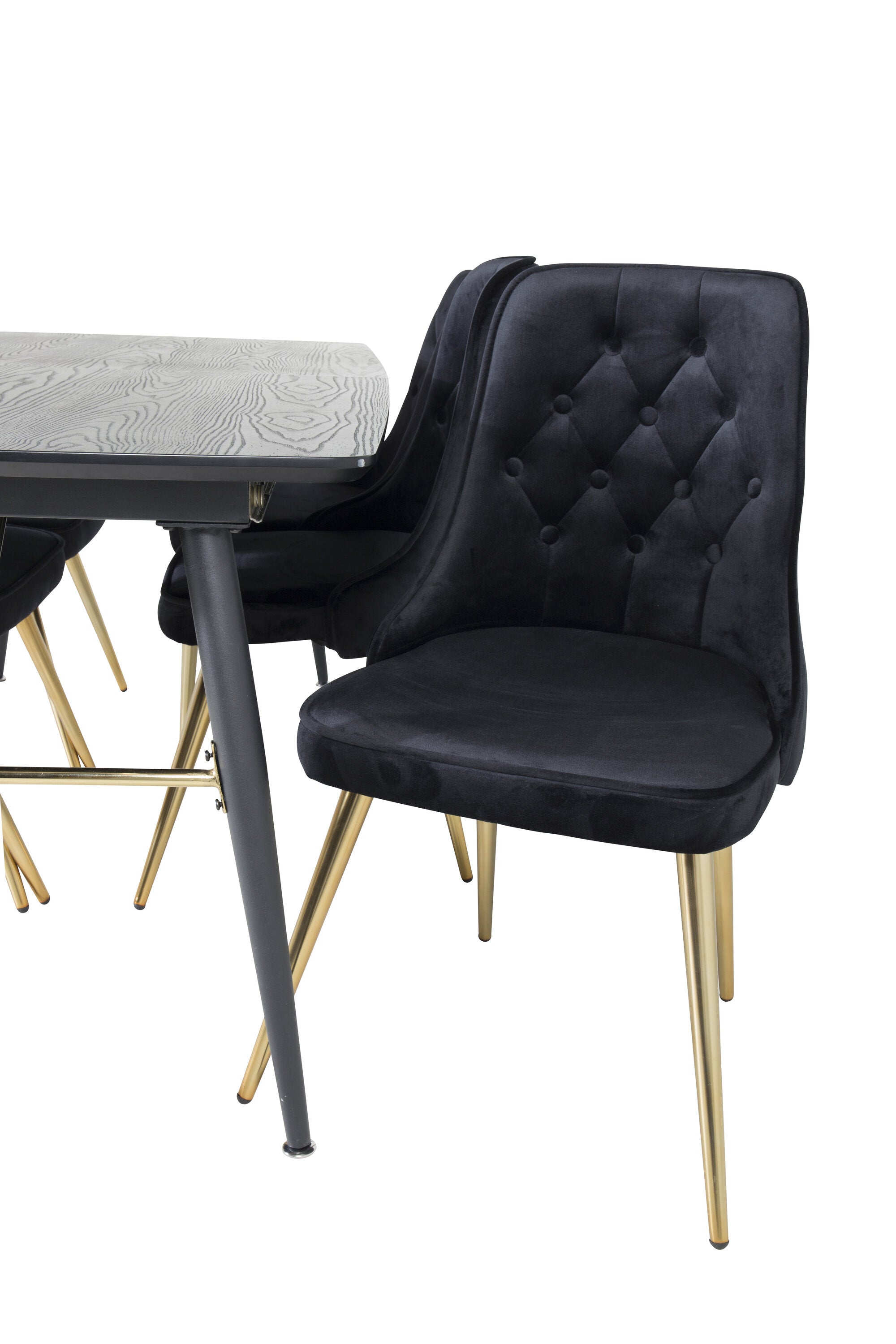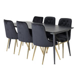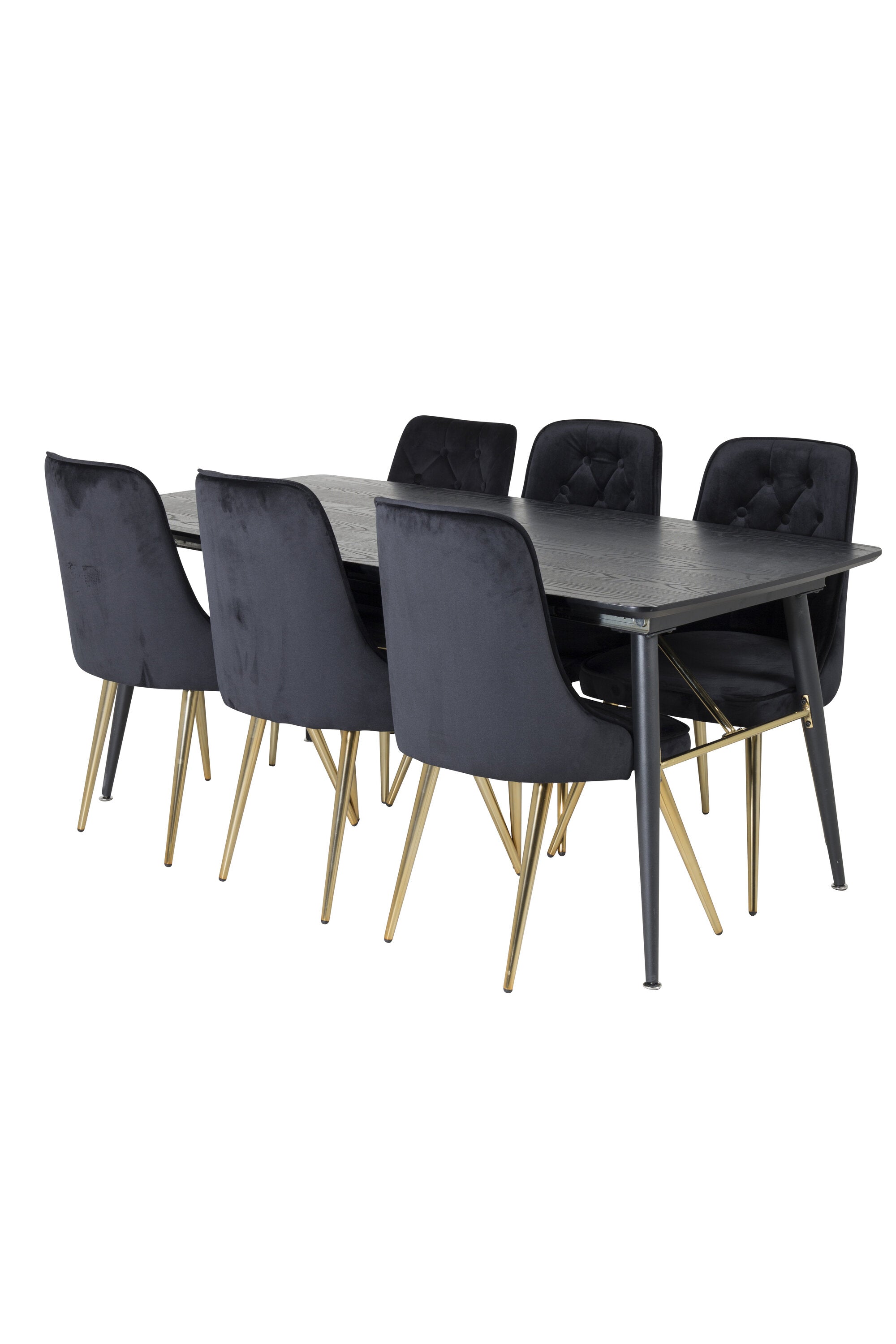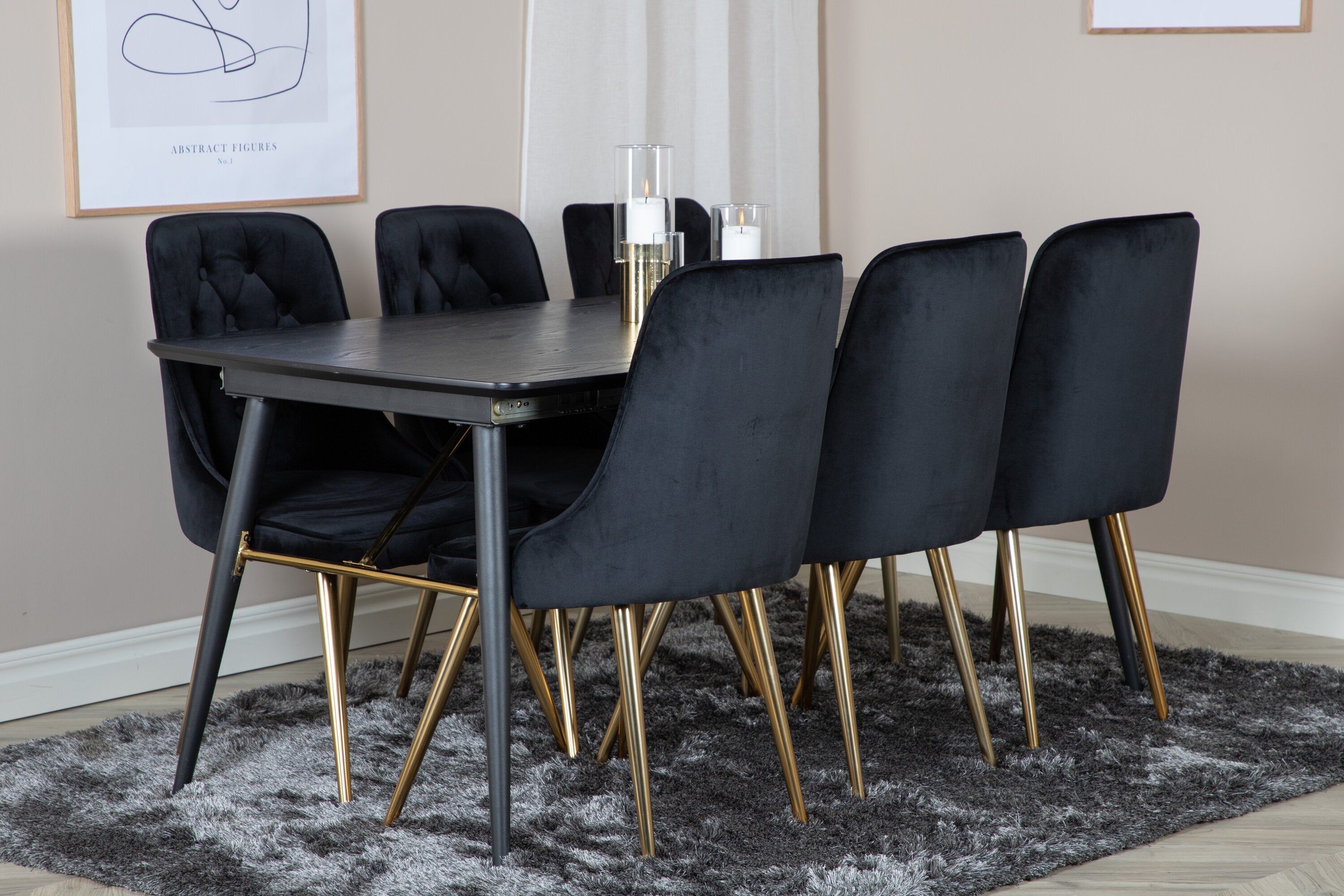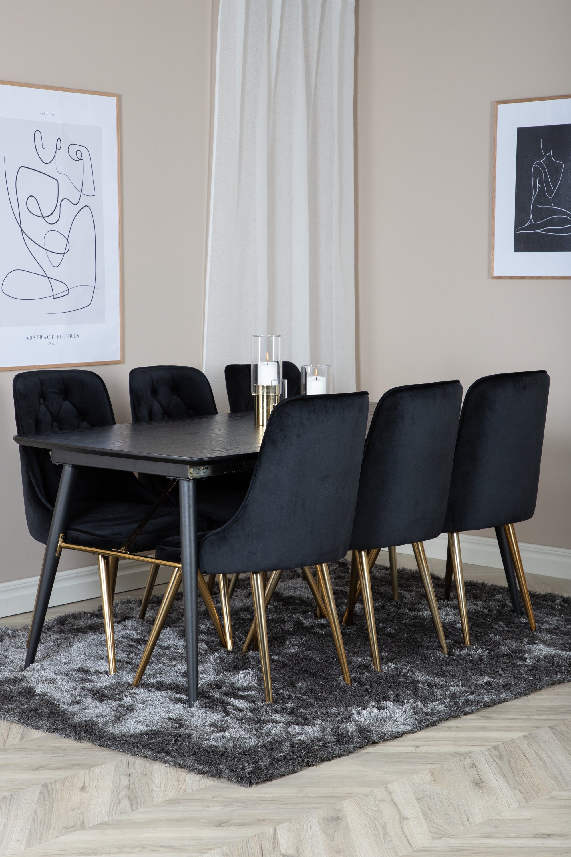 Nákup předem sestavené skupiny potravin je jak trendově bezpečný, tak praktický! Zde kombinujeme náš rozkládací jídelní stůl Gold s našimi černými jídelními židlemi Velvet, které jsou vhodné k sezení. Nechte srdce domova charakterizovat vaši novou, poutavou skupinu potravin.